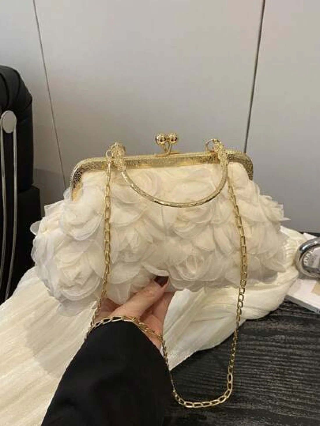 قطعة واحدة من حقائب فتاة راقية جديدة جذابة ذات تطريز بتلات ، مصنوعة من نايلون بسلسلة ذهبية، تصميم أنيق جديد، أ