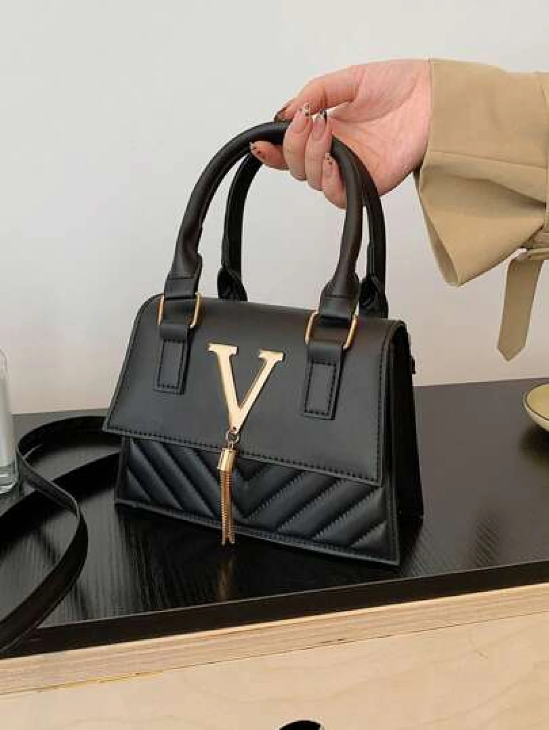 حقيبة رسول أنيقة وعصرية قطعة واحدة ، حقيبة رسول عصرية ، شرابة بحرف ، حقيبة كتف مربعة صغيرة عصرية ، مصنوعة من ما