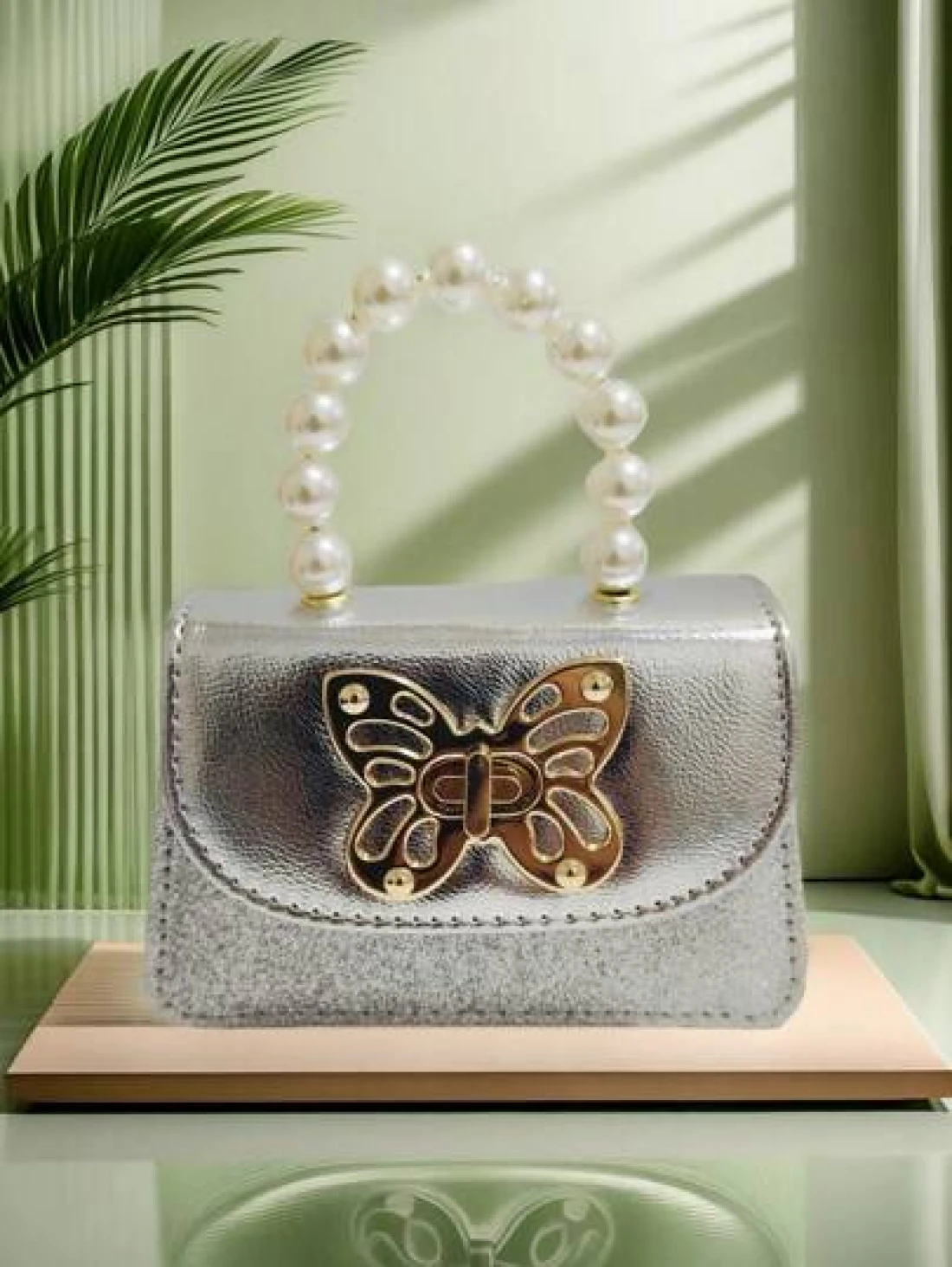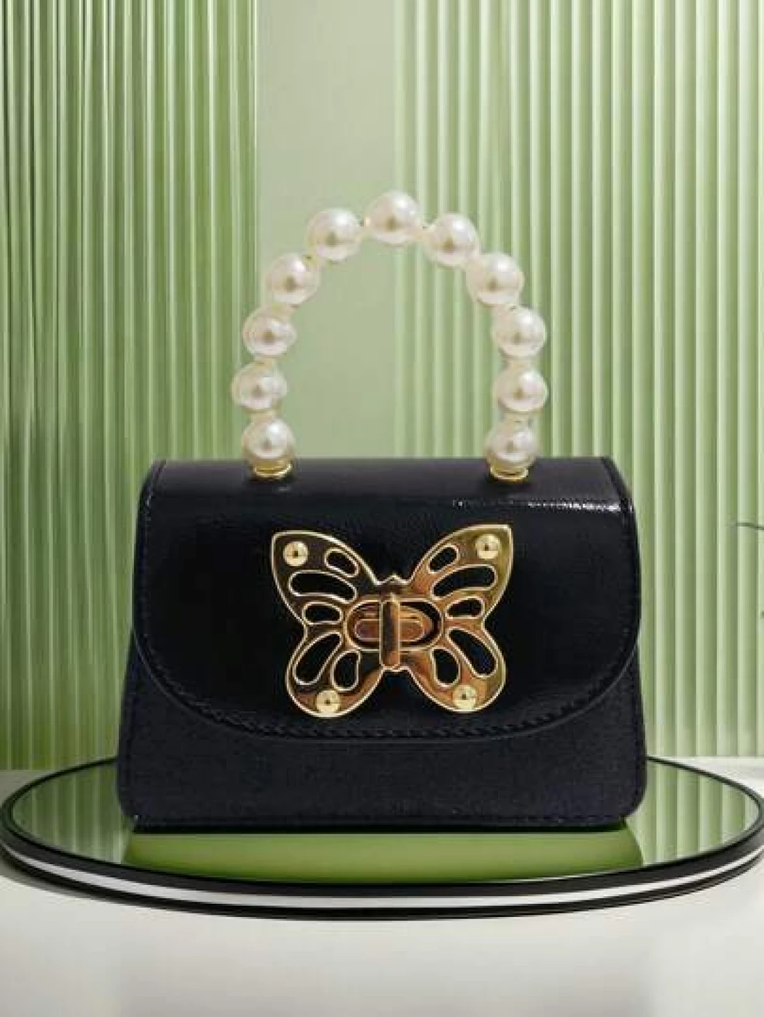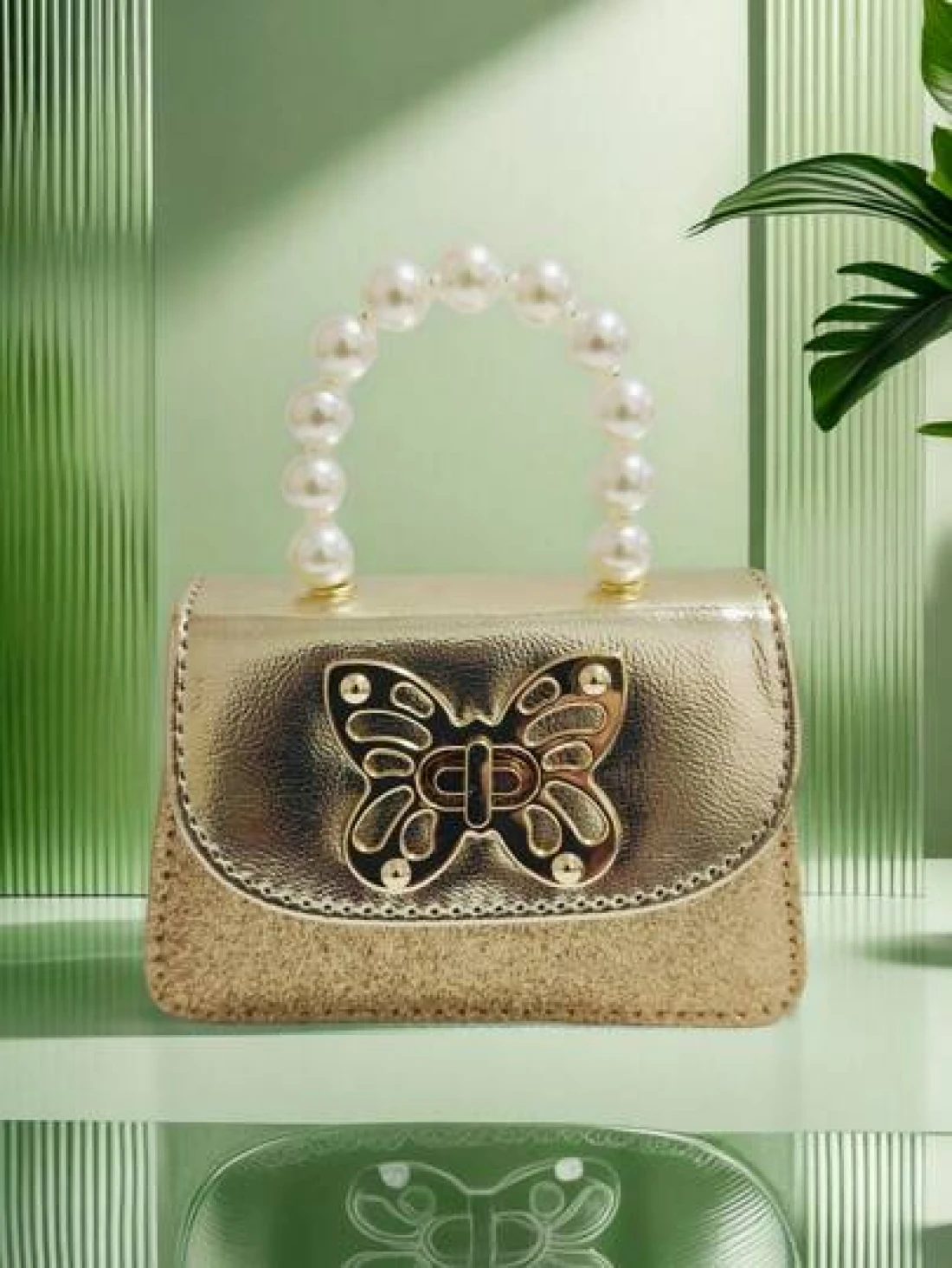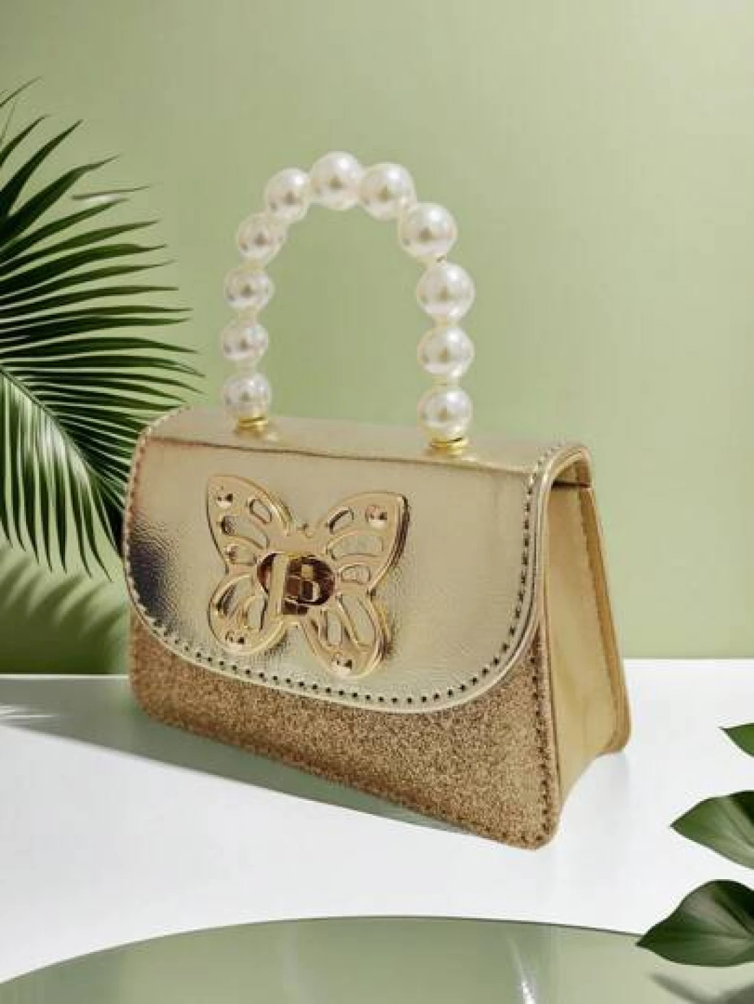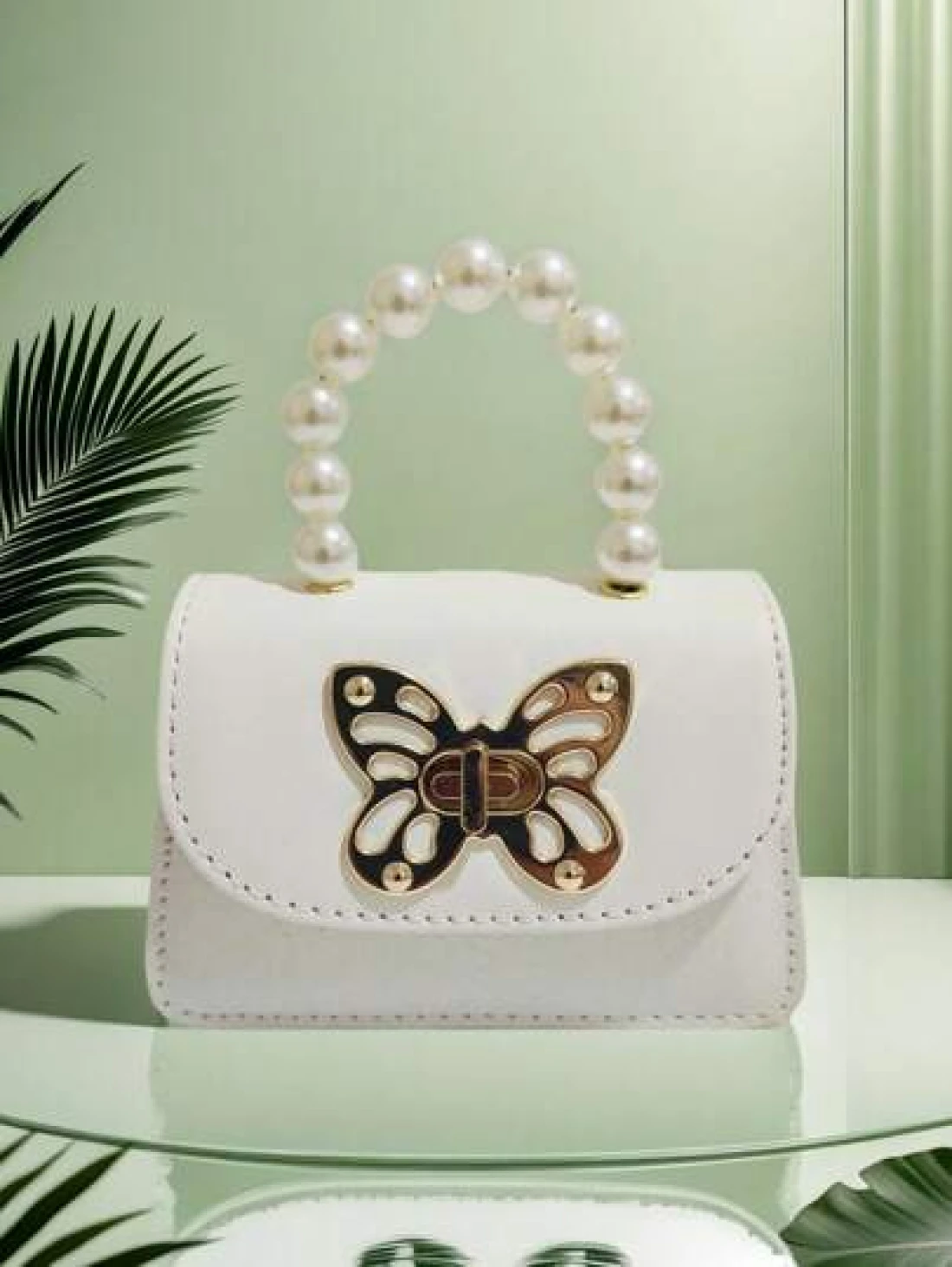 حقيبة يد جديدة على شكل فراشة مرصعة باللؤلؤ للأطفال، هدية عطلة نهاية الأسبوع، محفظة أنيقة على شكل قفل فراشة من