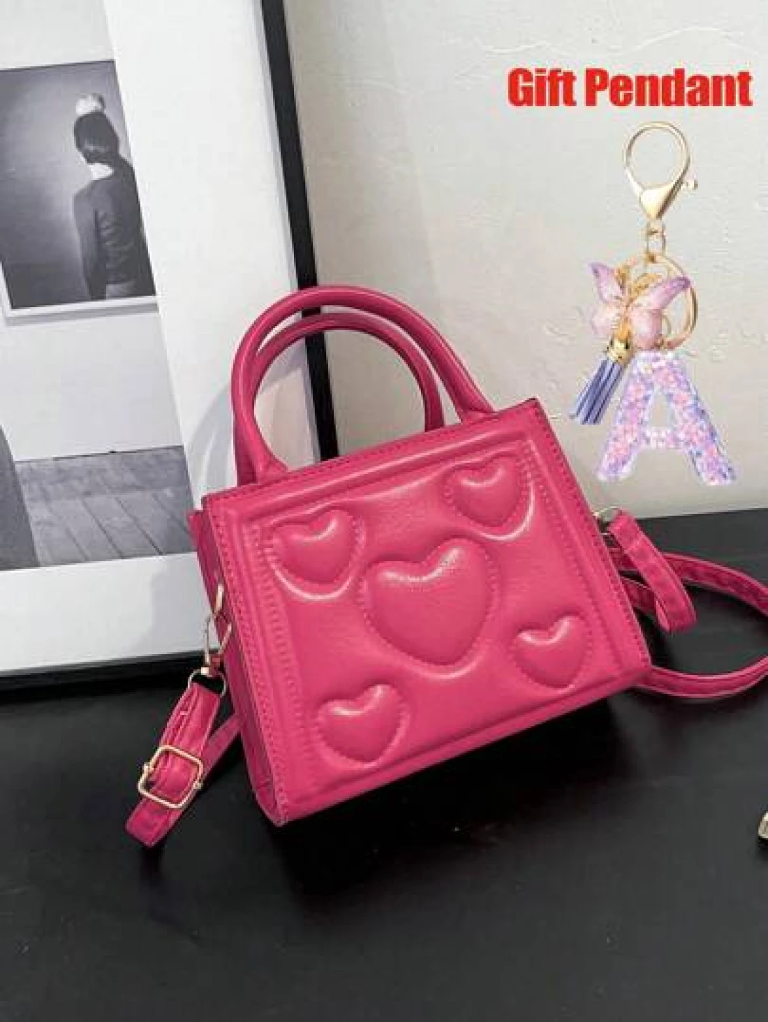 1pc Vintage Heart Quilted Handbag Casual Shoulder Crossbody Bag For Daily Use 1pc Purple Gift Pendant