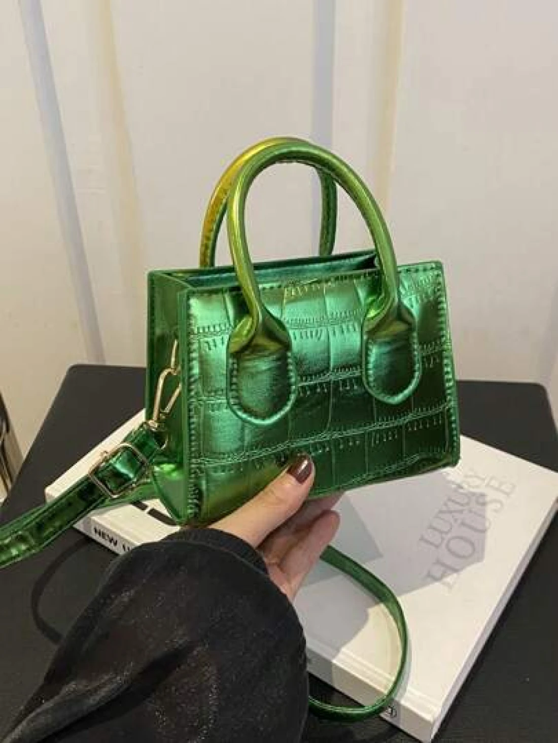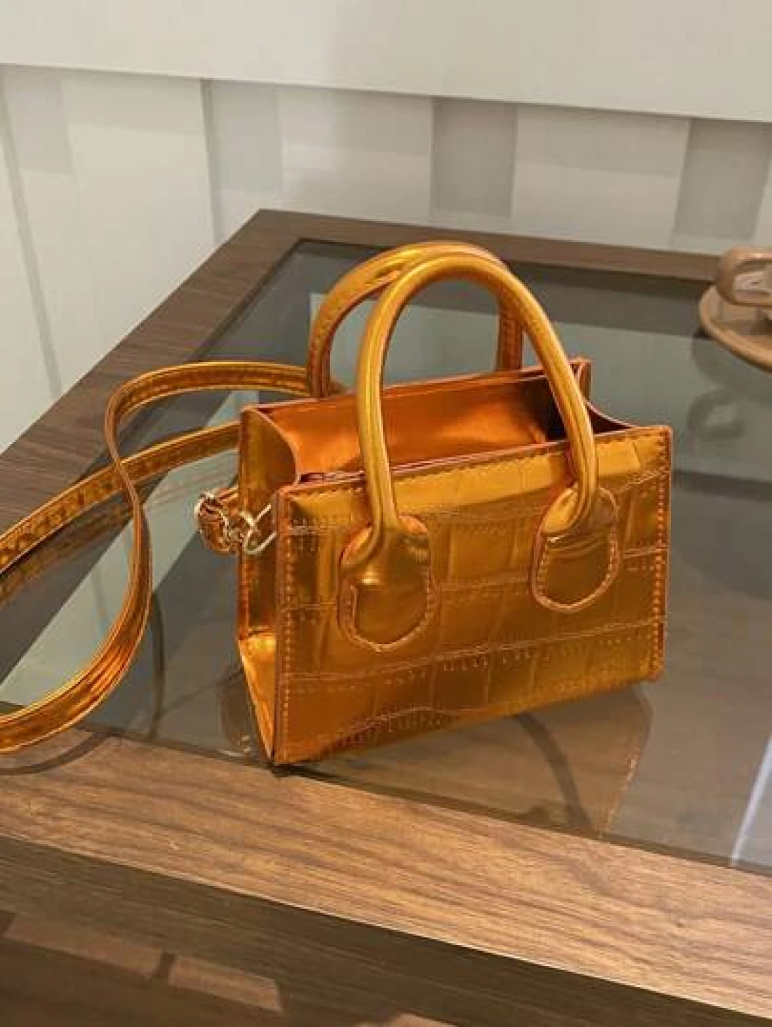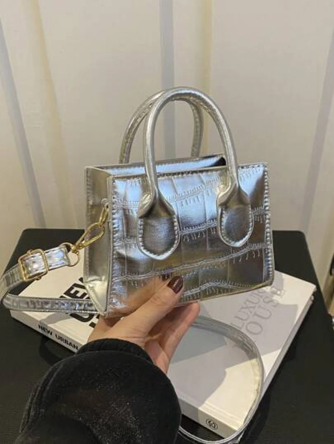 حقيبة كتف/حقيبة عبر الجسم أنيقة وعصرية بتصميم أنيق، ذات موحد اللون، لامع، قوام قماش الإبط مع سلسلة ، بطبعة تمساح، إصدار كوري للفتيات، حقيبة مربعة صغيرة باللون الصلب، يمكن حملها باليد أو عبر الجسم، حقيبة متعددة الاستخدامات، مناسبة للفتيات للخروج للتسوق، الاستخدام اليومي، التنقل، حافظة الهاتف المحمول، شكل حقيبة مربع متعدد الاستخدامات