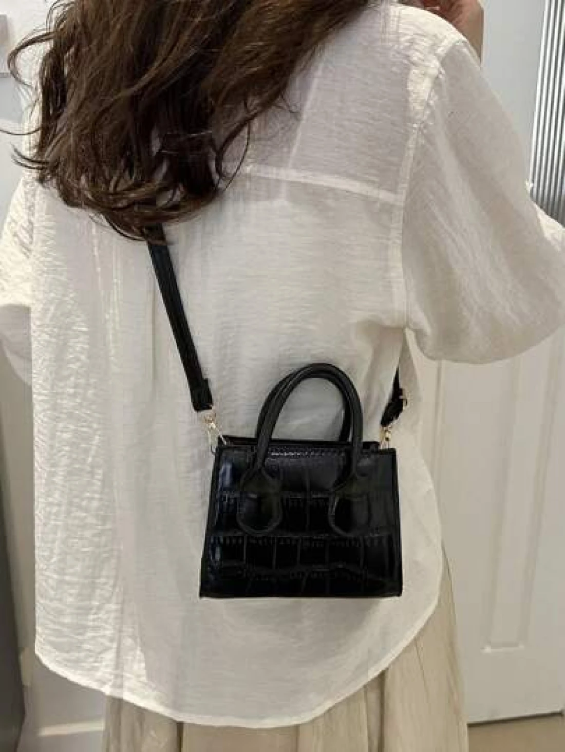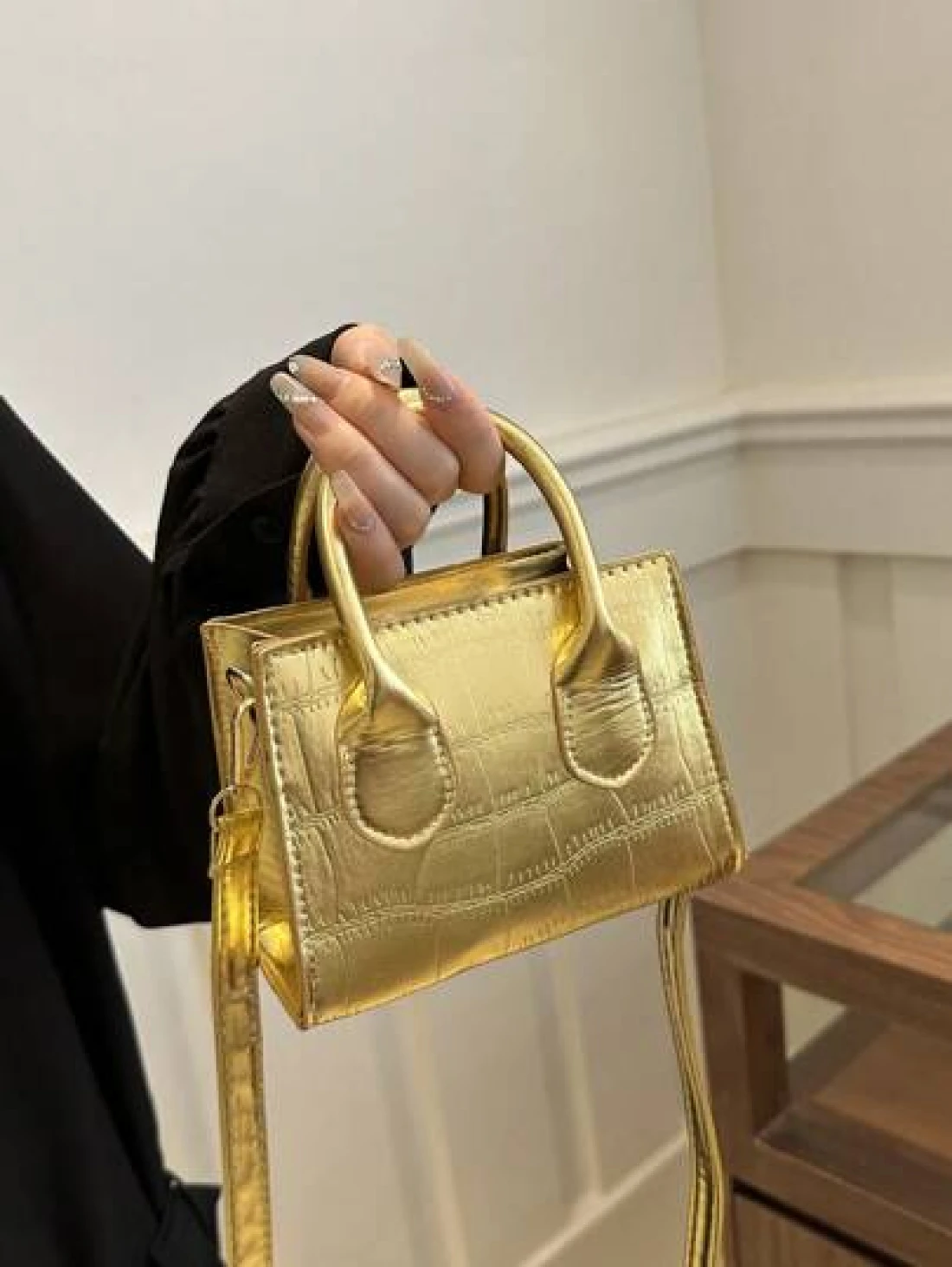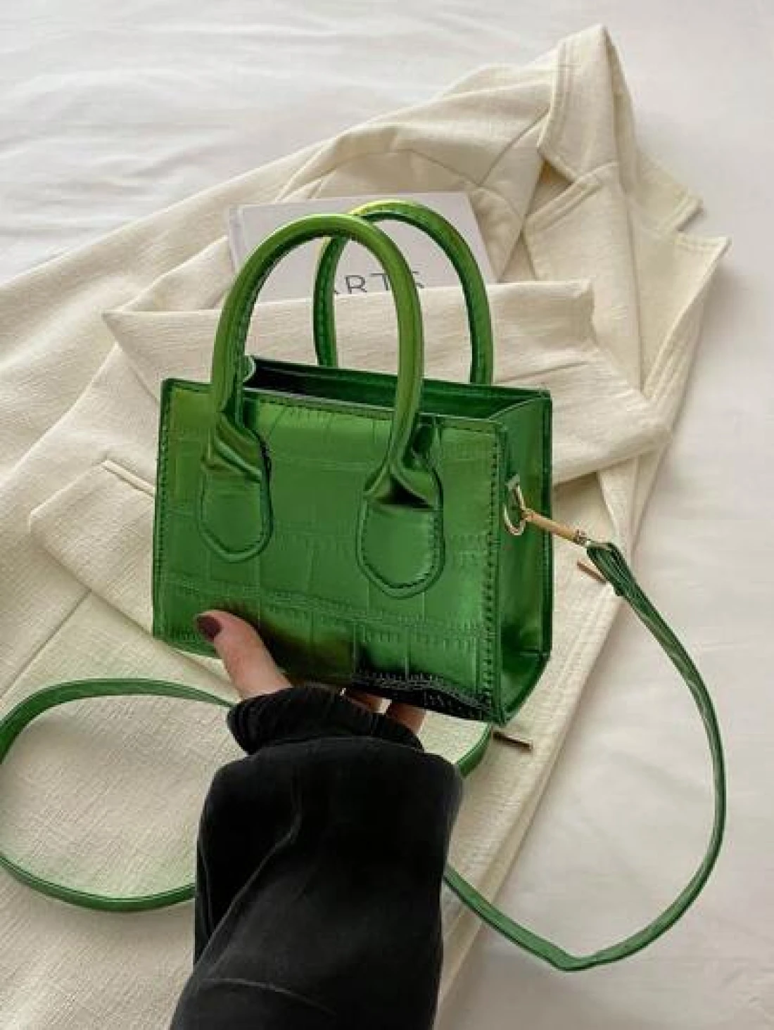 حقيبة كتف/حقيبة عبر الجسم أنيقة وعصرية بتصميم أنيق، ذات موحد اللون، لامع، قوام قماش الإبط مع سلسلة ، بطبعة تمساح، إصدار كوري للفتيات، حقيبة مربعة صغيرة باللون الصلب، يمكن حملها باليد أو عبر الجسم، حقيبة متعددة الاستخدامات، مناسبة للفتيات للخروج للتسوق، الاستخدام اليومي، التنقل، حافظة الهاتف المحمول، شكل حقيبة مربع متعدد الاستخدامات