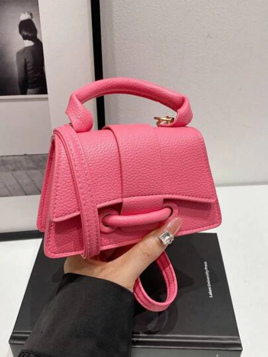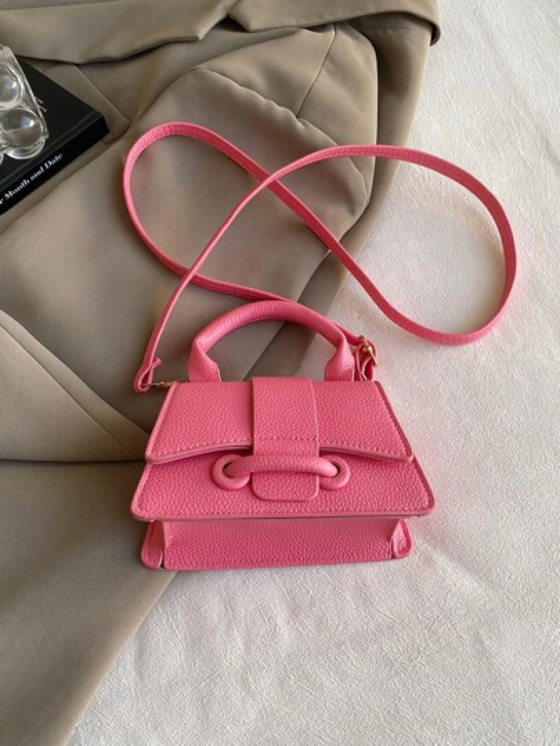 1 قطعة حقيبة يد ذات إغلاق مغناطيسي من البولي يوريثان بتصميم جلد التفاح ذات موحد اللون موضي، تصميم فريد من نوعه