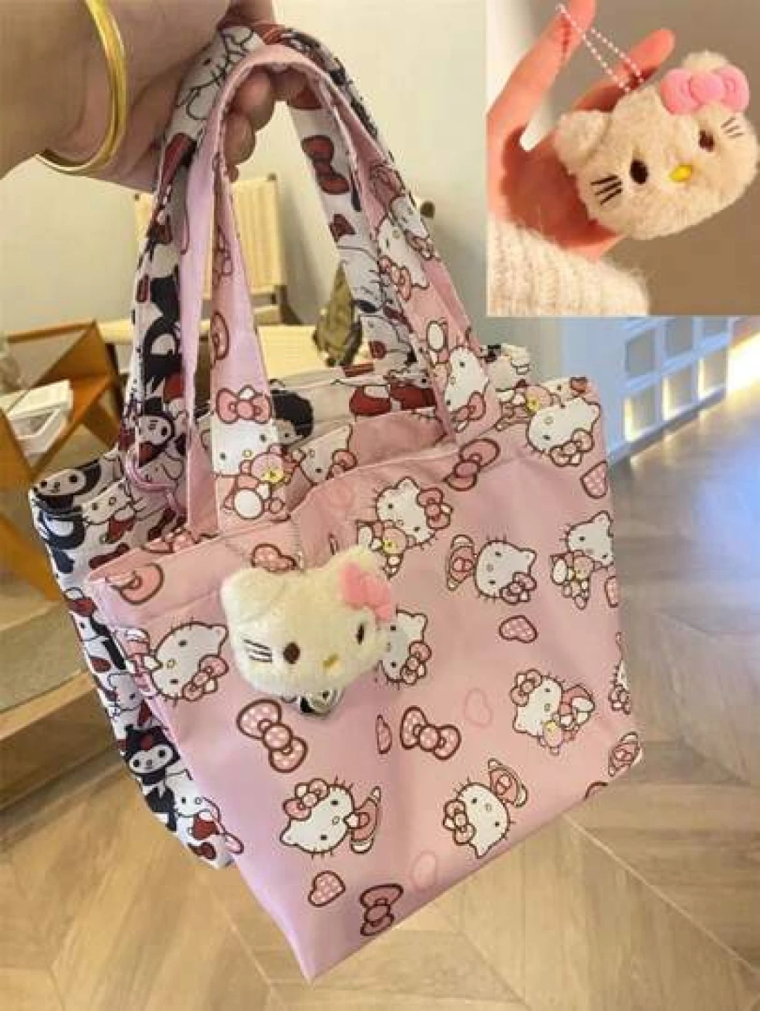 Sanrio حقيبة كتف كانفاس للنساء بتصميم كارتوني لطيف لهيلو كيتي، بسوستة، حقيبة تخزين متعددة الوظائف عالية الجودة، حقيبة ظهر مدرسية، حقيبة خارجية، حقيبة زخرفية، حقيبة تسوق، هدية للنساء، هدية تخرج وعيد الأم