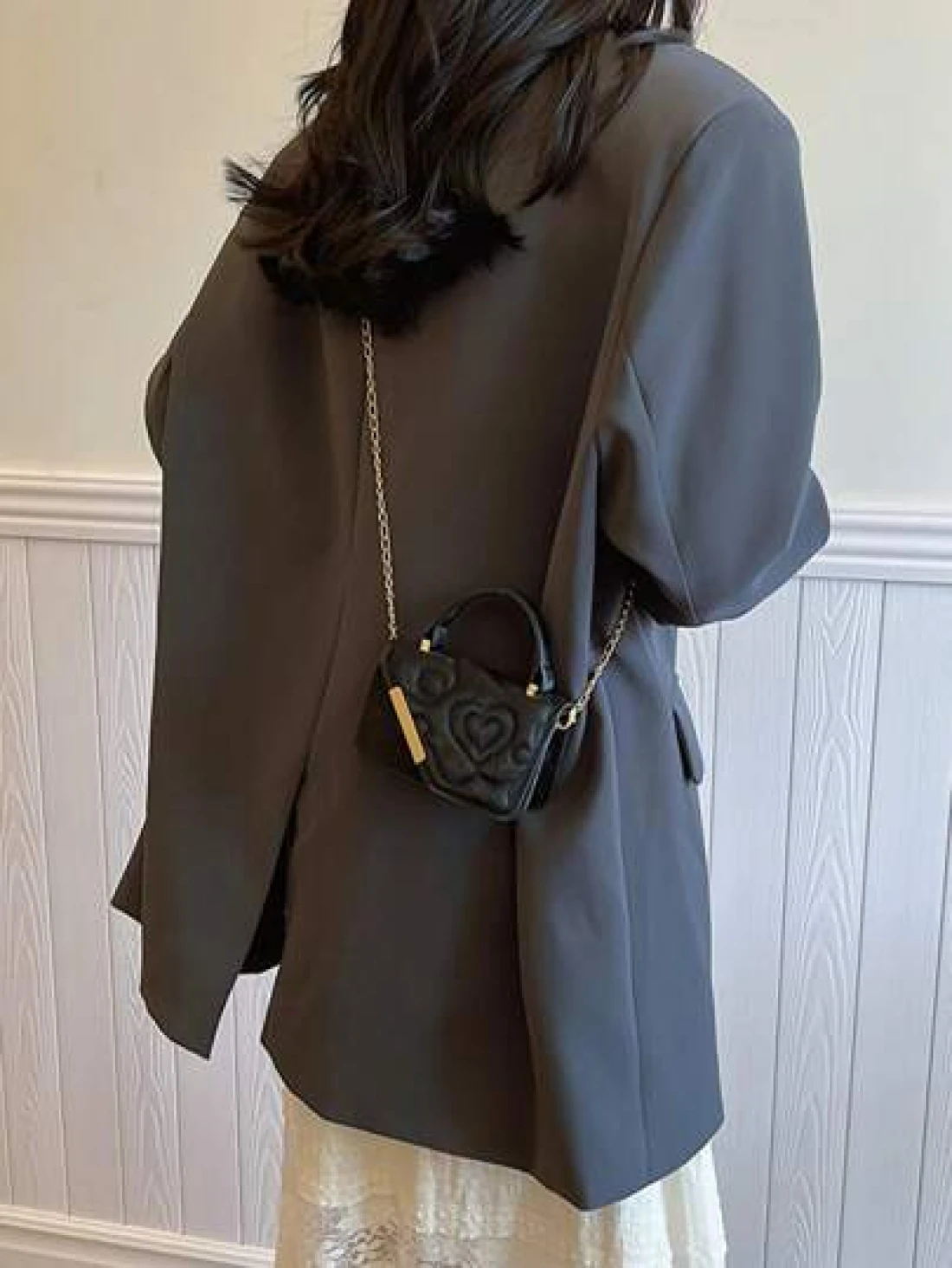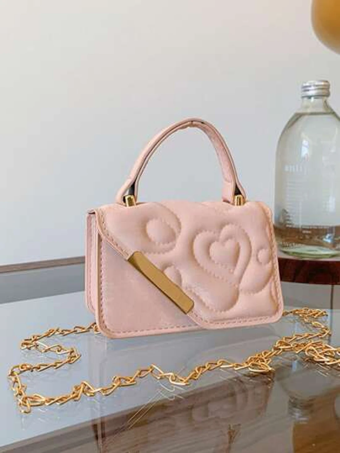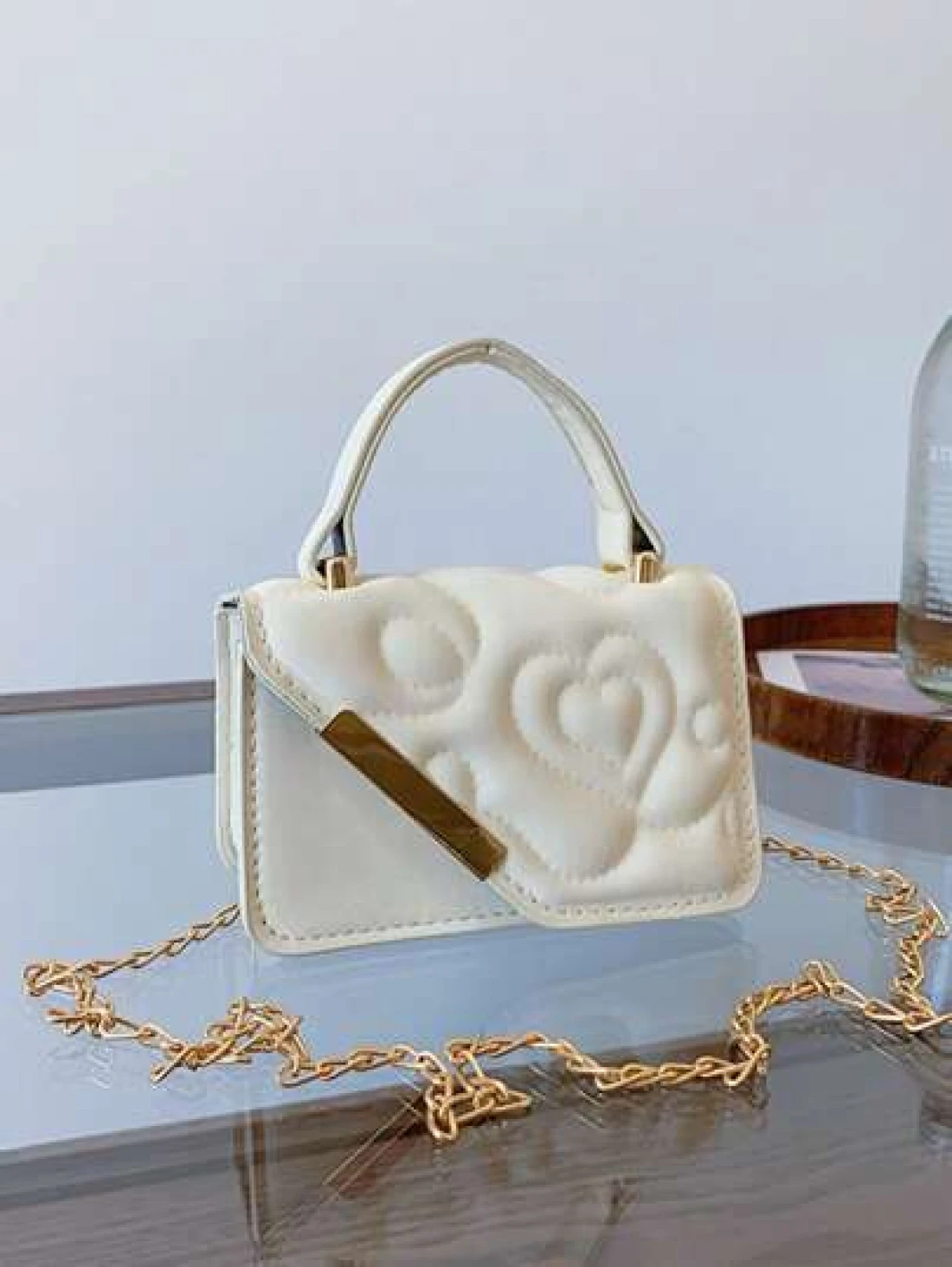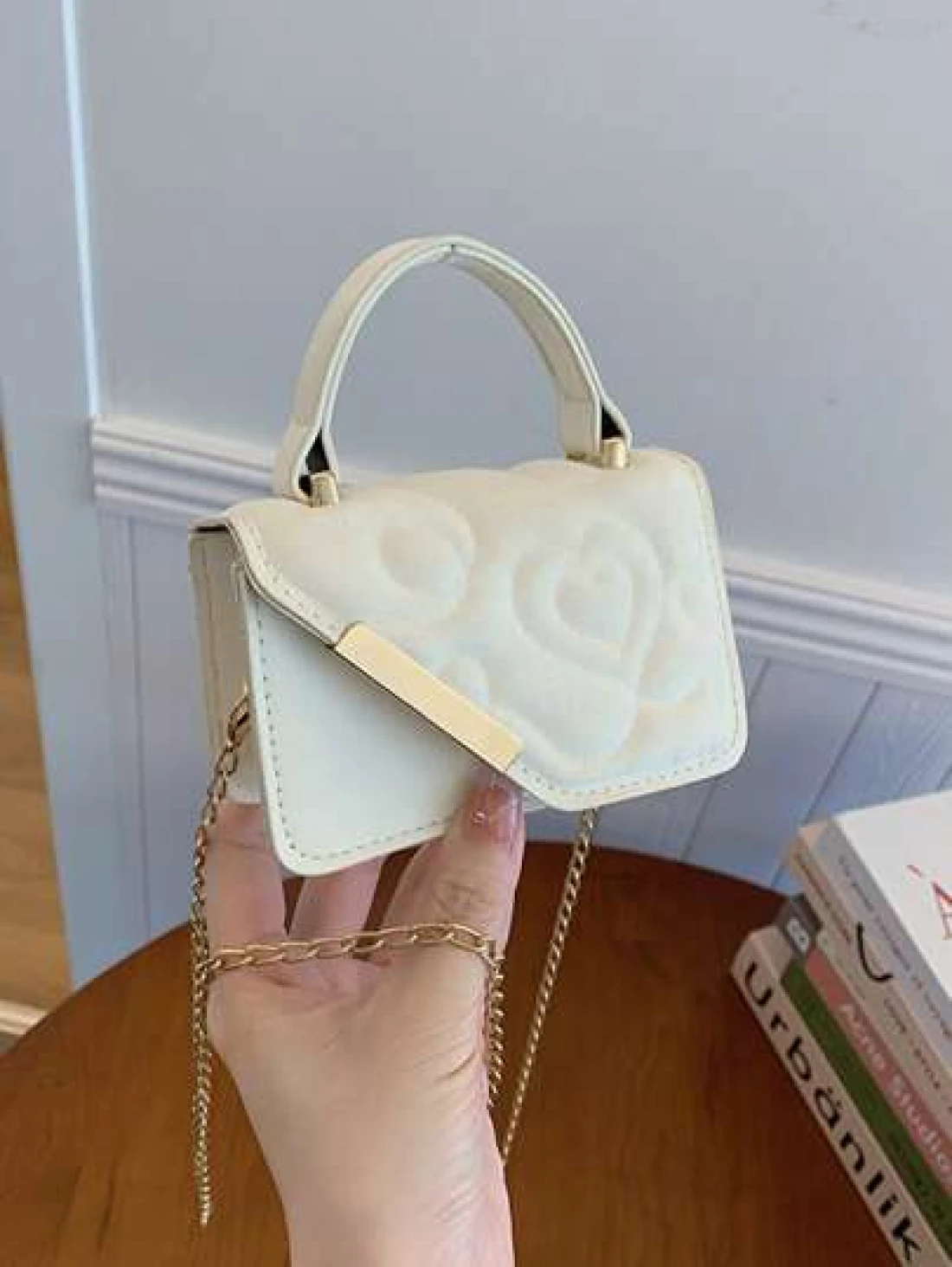 قطعة واحدة، حقيبة جلدية صغيرة مربعة ذات طبعة أزهار الحب، مع سلسلة معدنية متعددة الوظائف، حقيبة يد كاجوال عصرية، مناسبة للمراهقين للسفر والتنسيق اليومي، مناسبة للتسوق والاستخدام اليومي