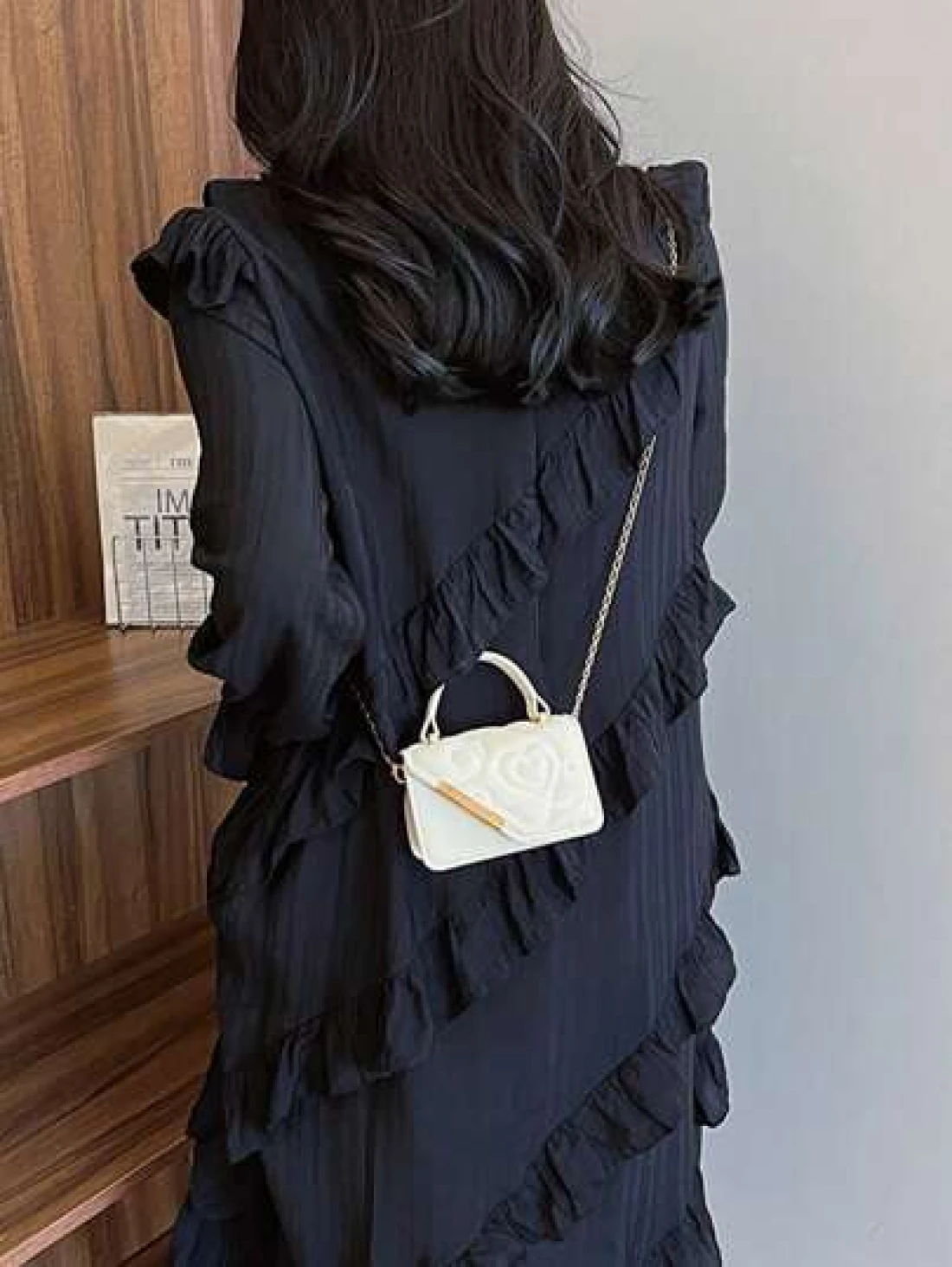 قطعة واحدة، حقيبة جلدية صغيرة مربعة ذات طبعة أزهار الحب، مع سلسلة معدنية متعددة الوظائف، حقيبة يد كاجوال عصري