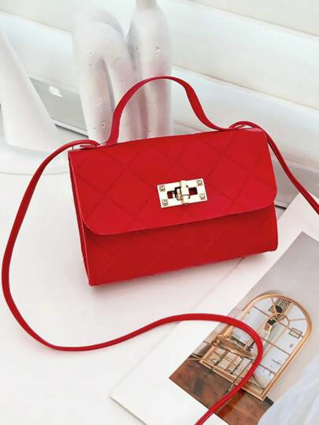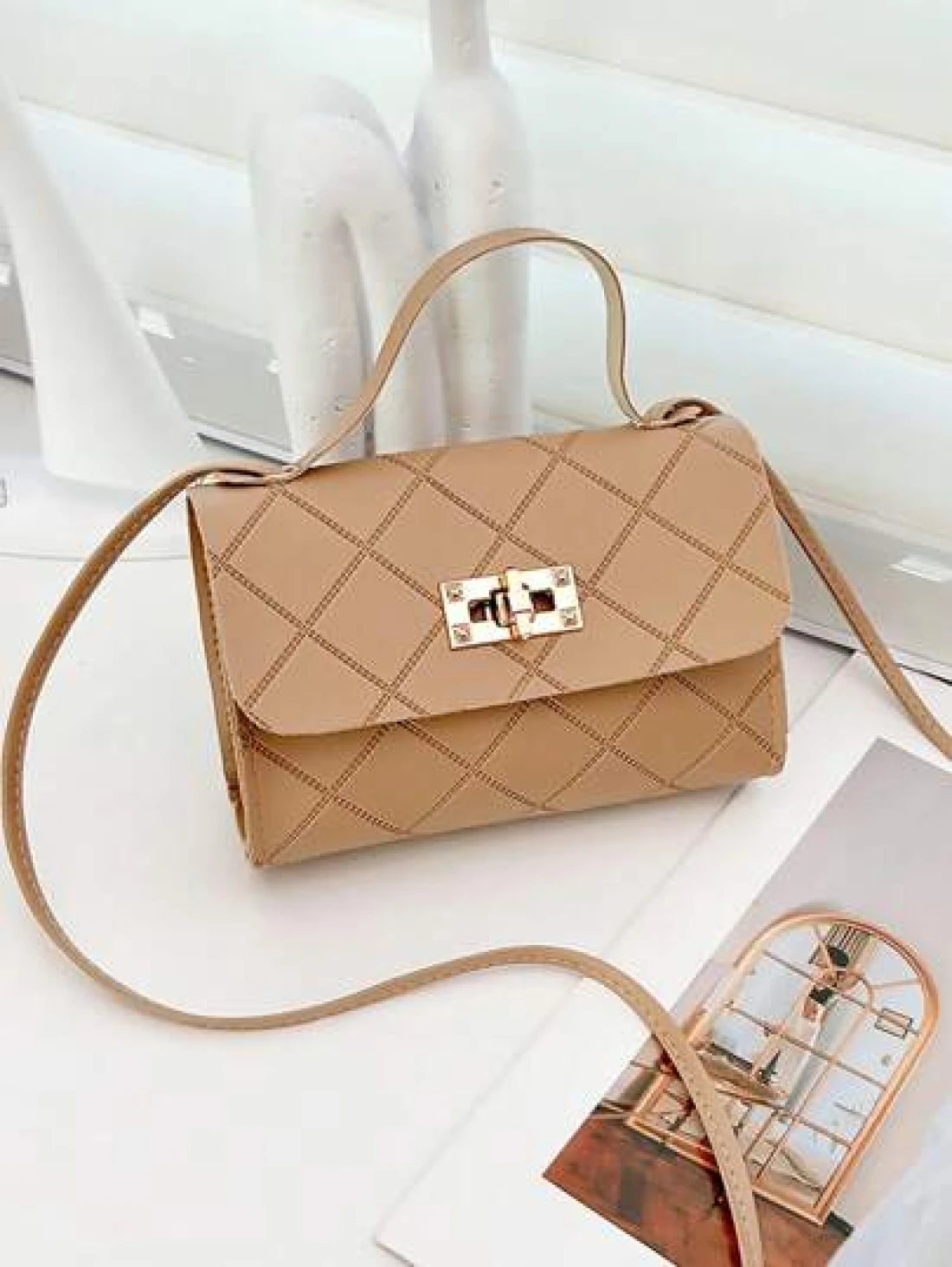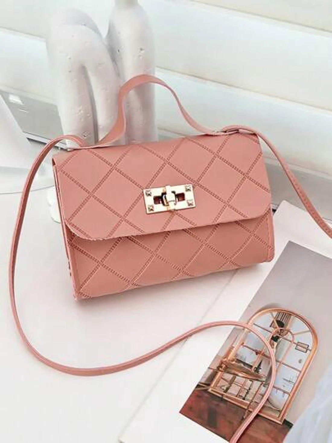 1pc Girls Metal Lock Decor Handbag Shoulder Bag Wallet Coin Purse Adjustable Strap Suitable For Daily Outdoor Travel Trekking Portable Ideal Gift
