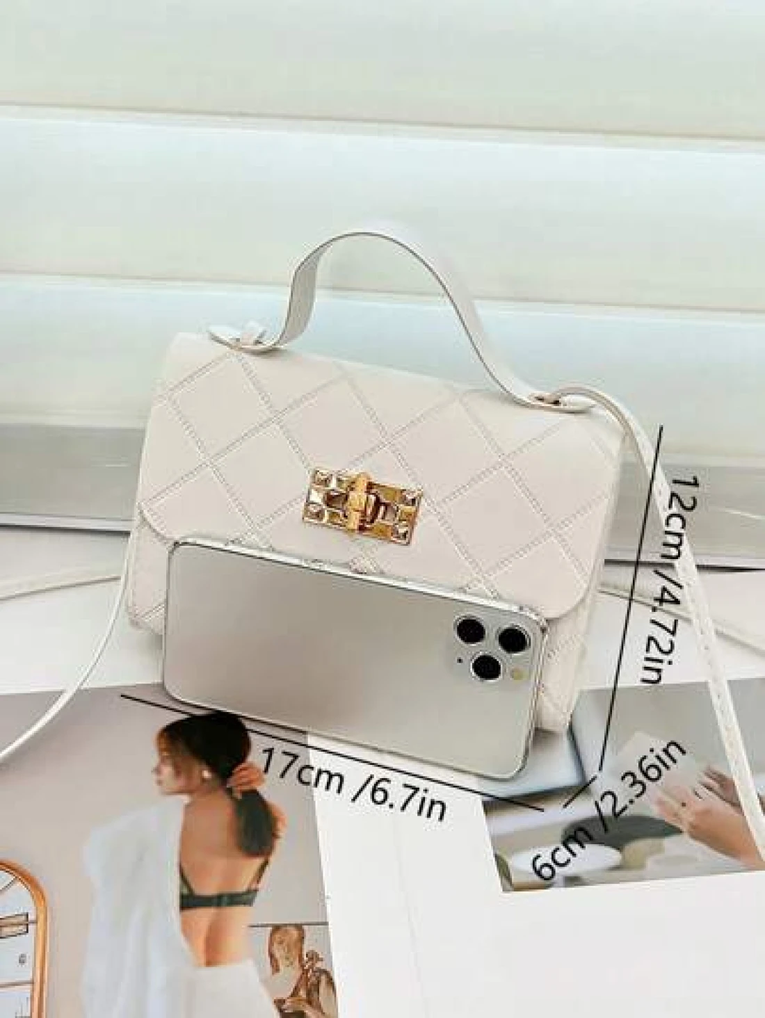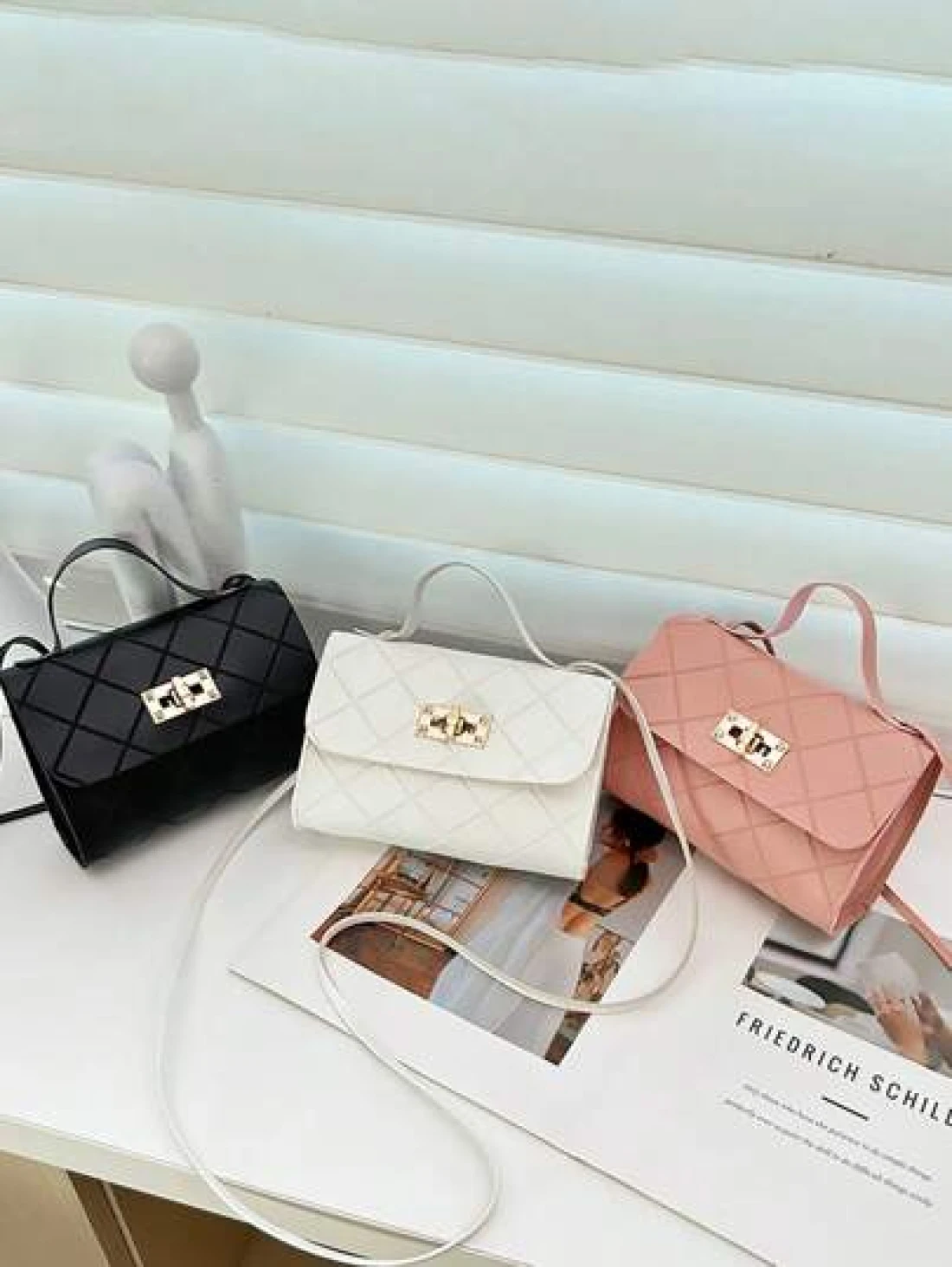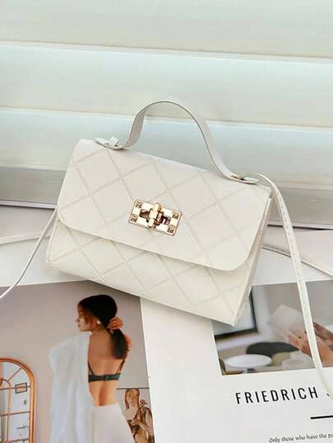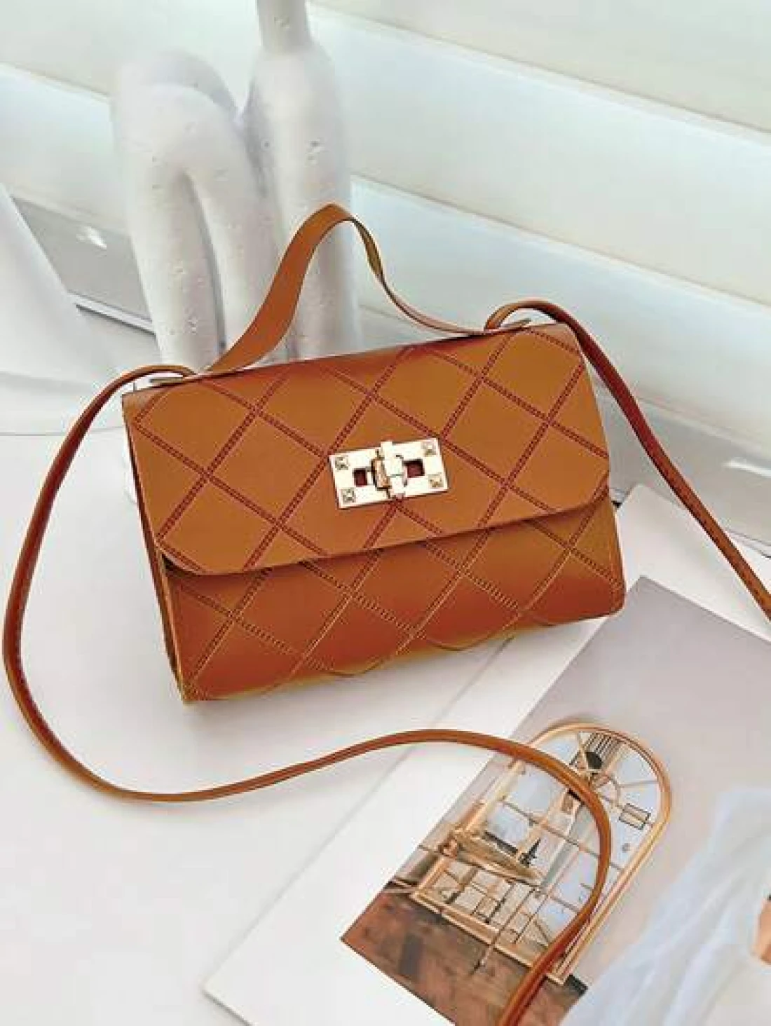 1pc Girls Metal Lock Decor Handbag Shoulder Bag Wallet Coin Purse Adjustable Strap Suitable For Daily Outdoor Travel Trekking Portable Ideal Gift