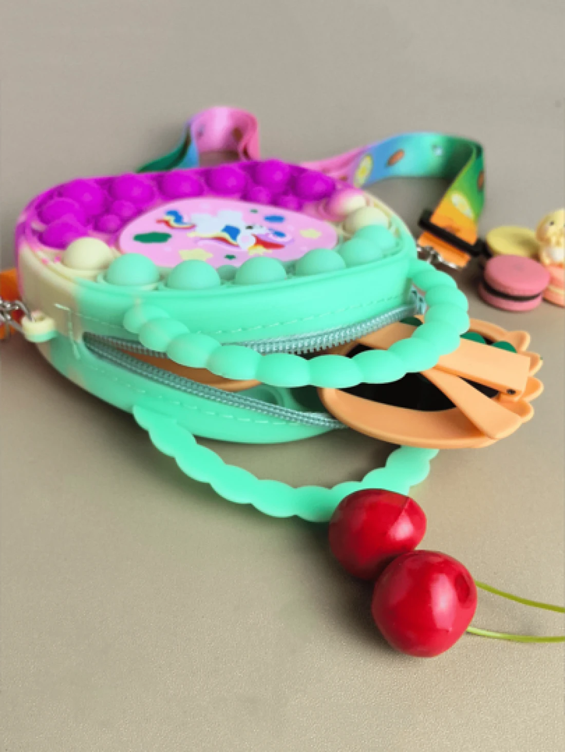 حقيبة يد بشكل قلب، حقيبة كروسبودي من السيليكون، محفظة وحيد القرن - مخفف للتوتر، مقاوم للماء، جيب تخزين قوي - سلسلة رابطة لامعة، حقيبة كروسبودي أنيقة وملفتة للنظر - مناسبة للاستخدام اليومي