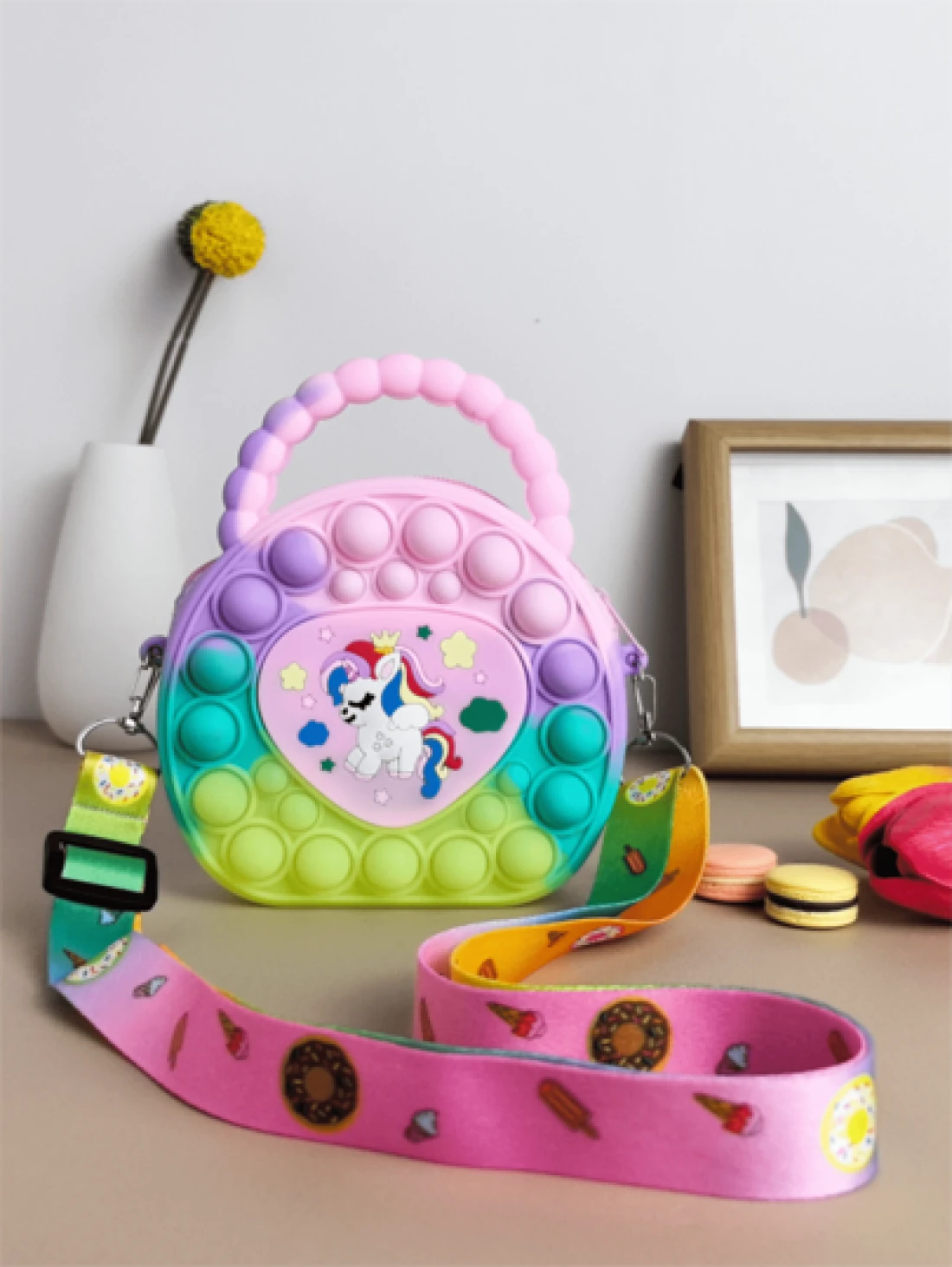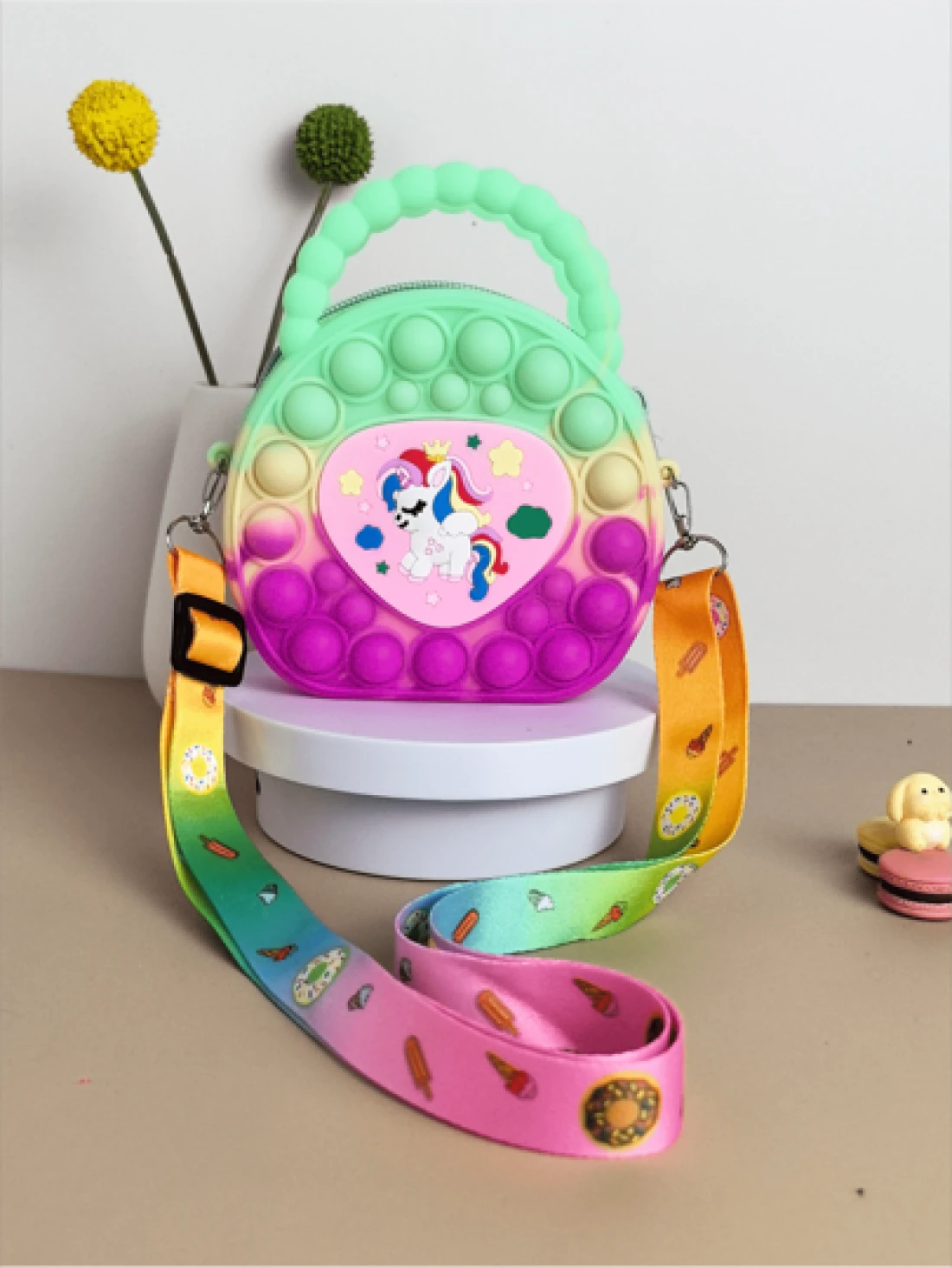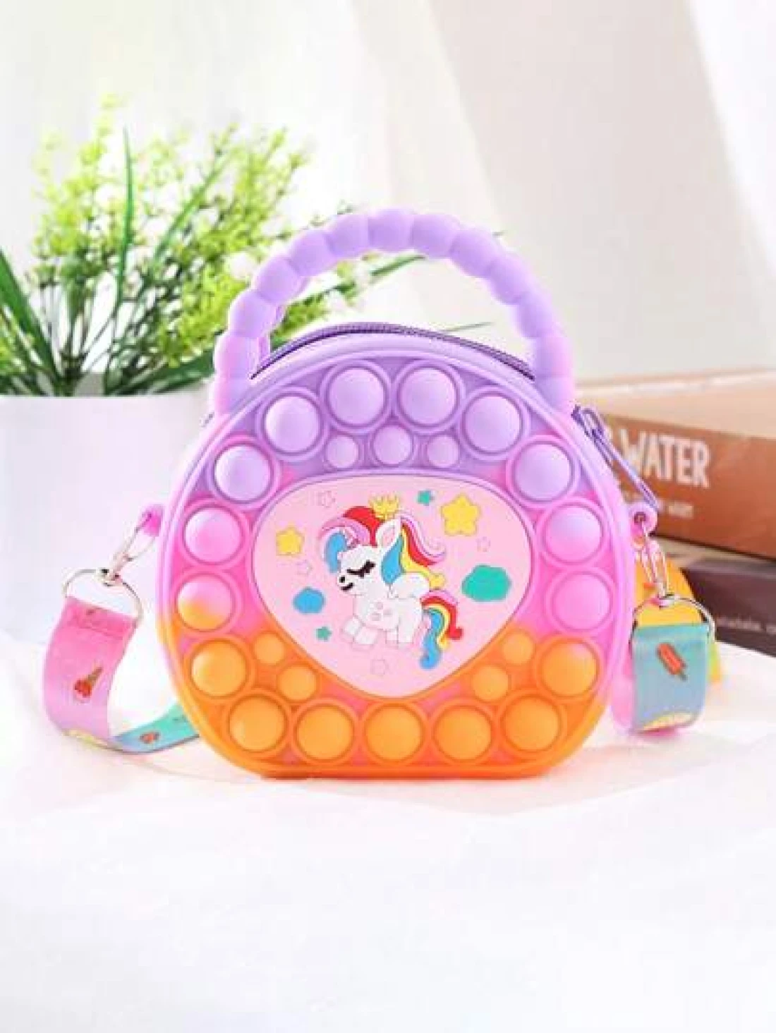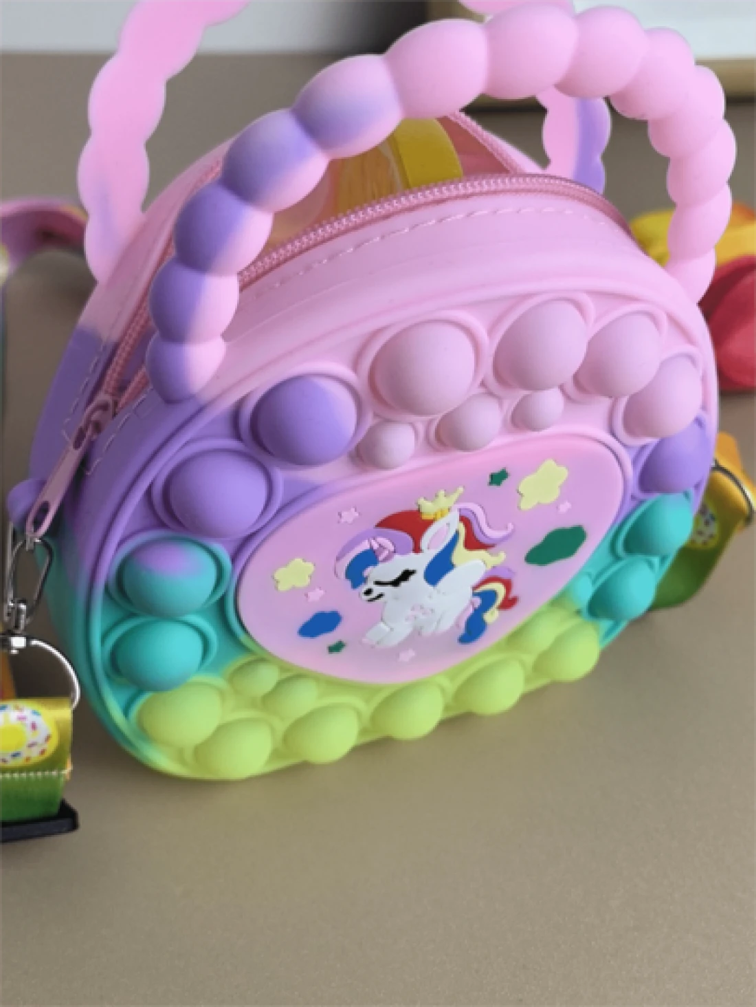 حقيبة يد بشكل قلب، حقيبة كروسبودي من السيليكون، محفظة وحيد القرن - مخفف للتوتر، مقاوم للماء، جيب تخزين قوي - سل