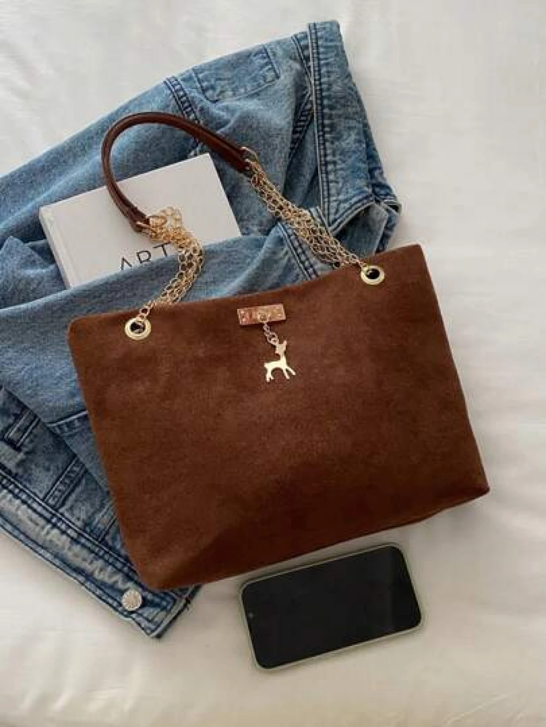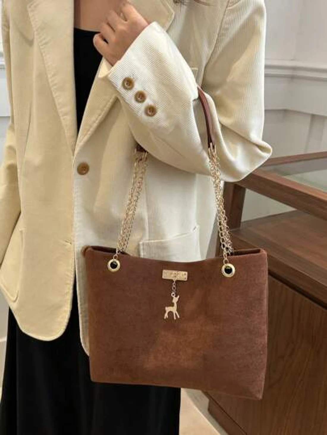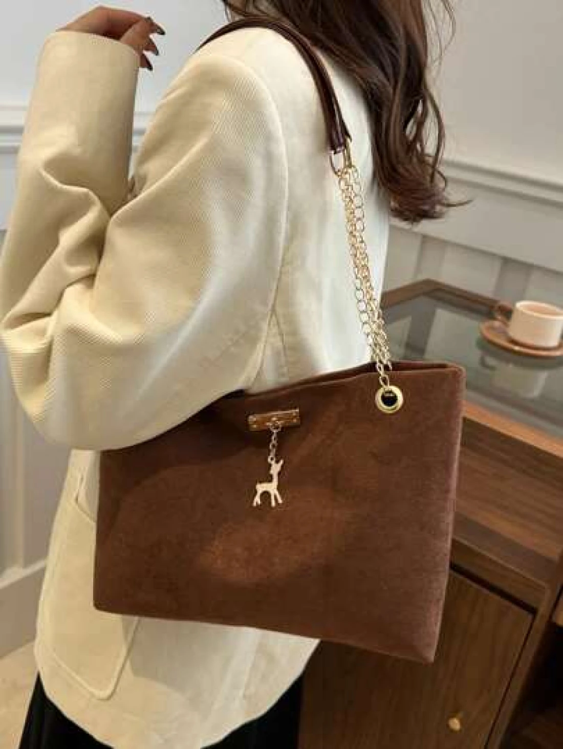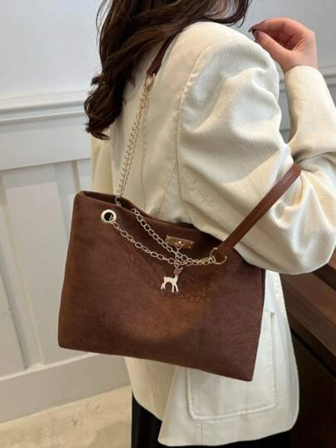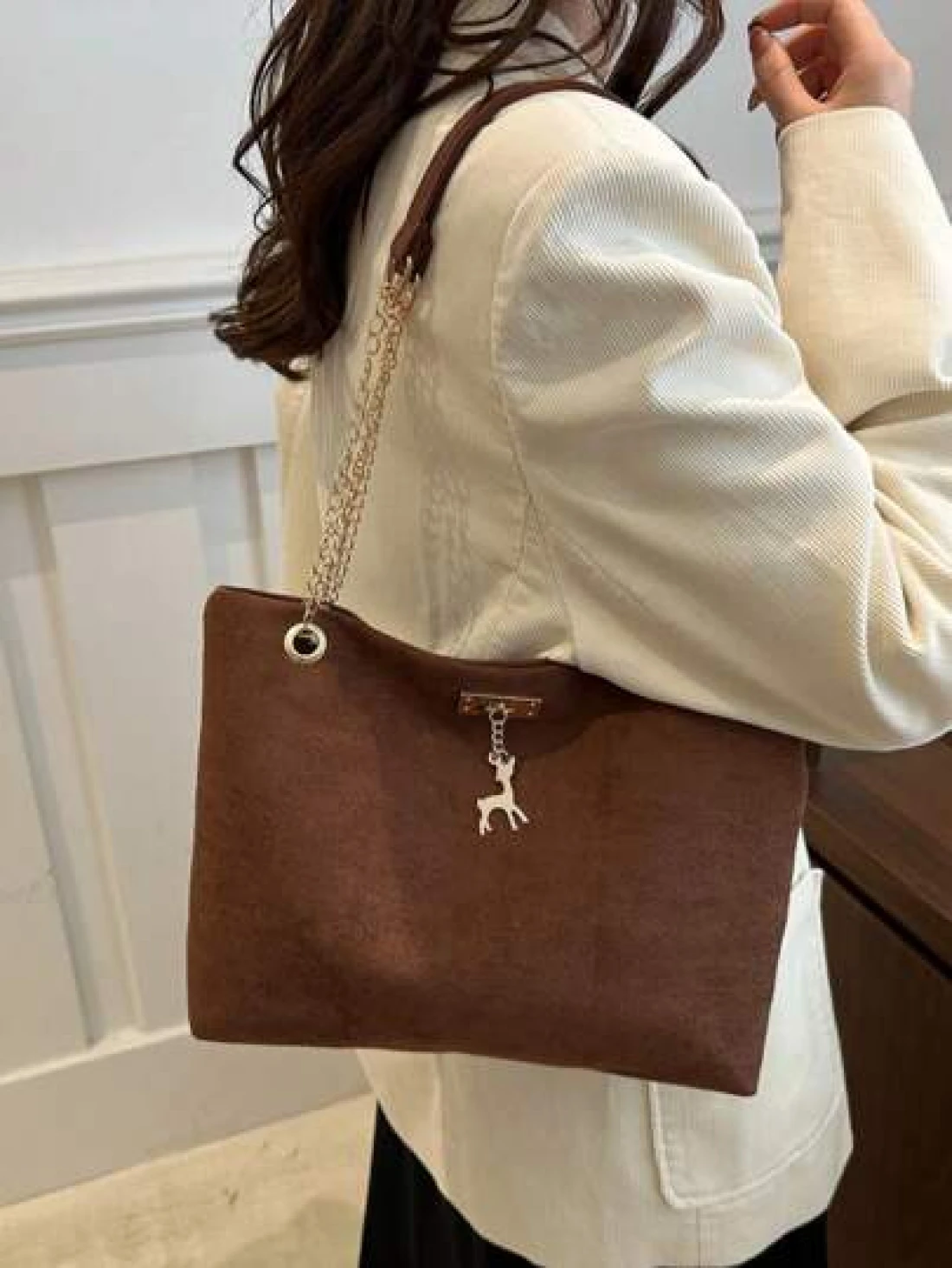 حقيبة كتف مشد كبيرة السعة من البوليستر بزخرفة غزلان، مناسبة للنساء للاستخدام اليومي