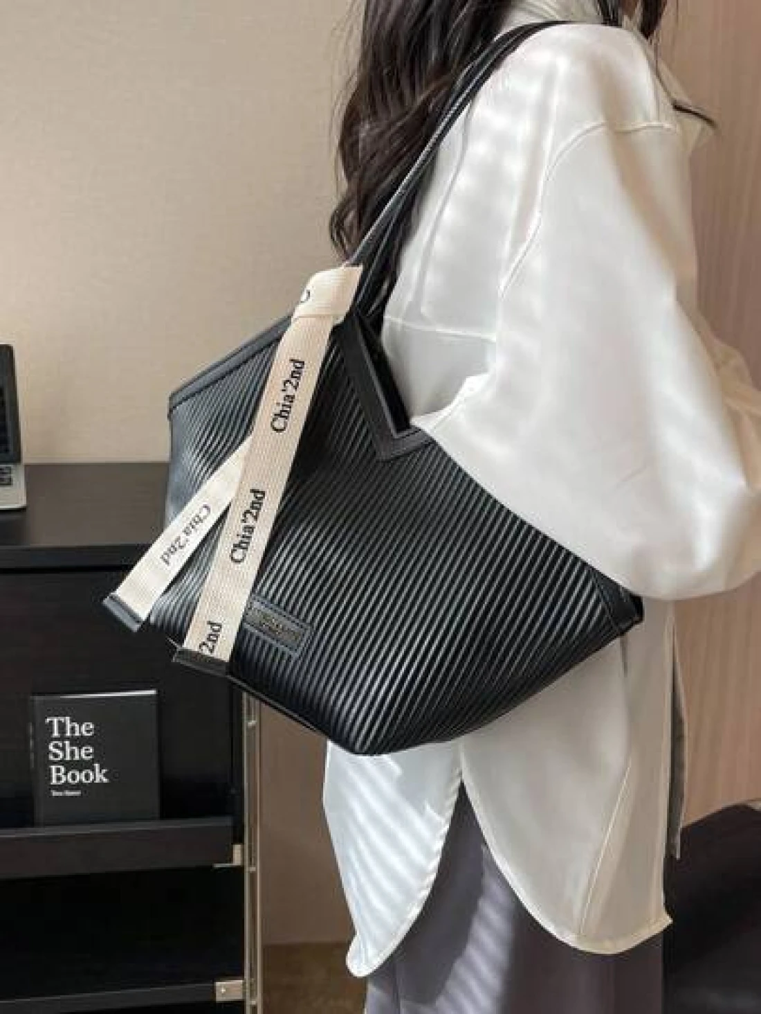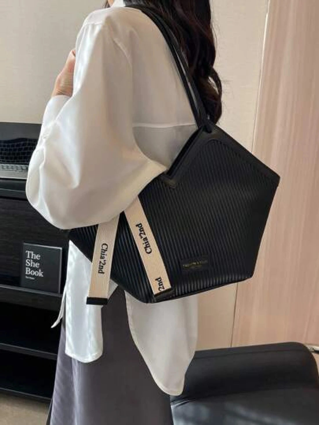 في عام 2024 ، الموضة الجديدة، الجوكر، تصميم التباين الجديد، تصميم الترصيع، حقيبة تسوق كبيرة السعة ذات مقبضين من