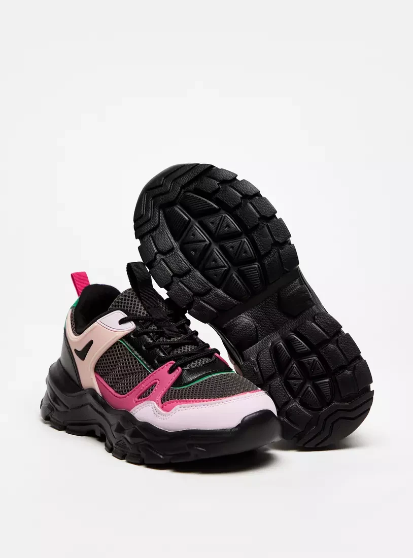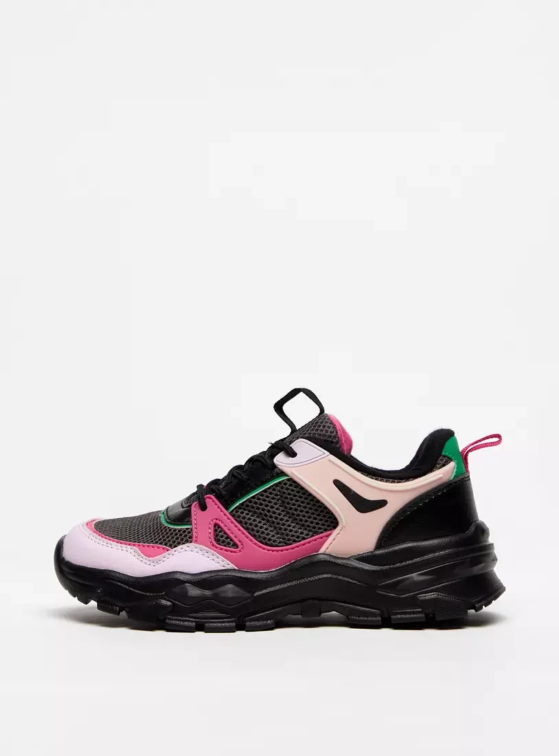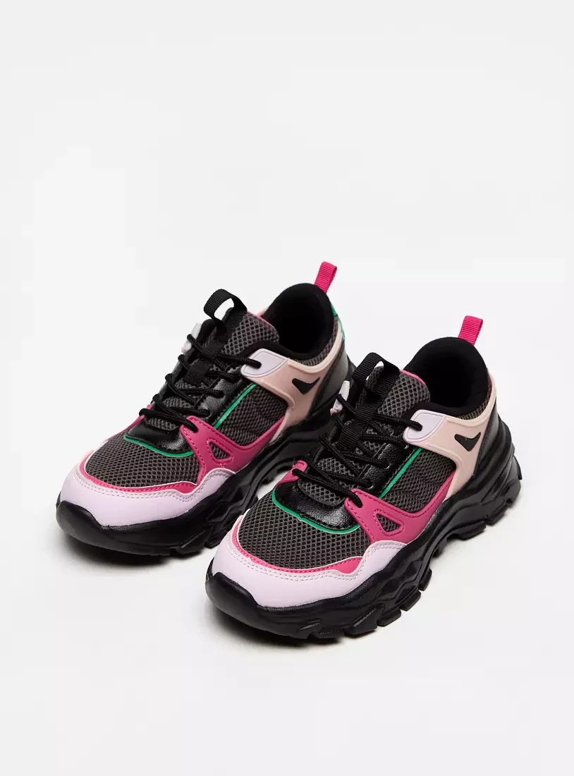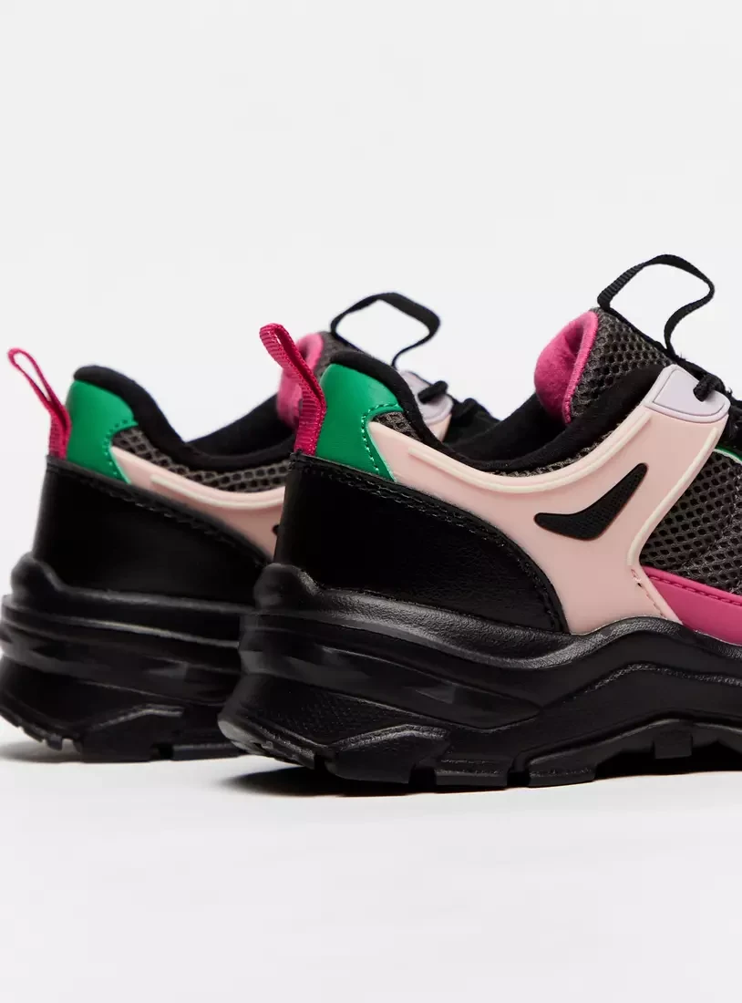 حذاء سنيكرز بلون متداخل بدون رباط مع حلقة سحب