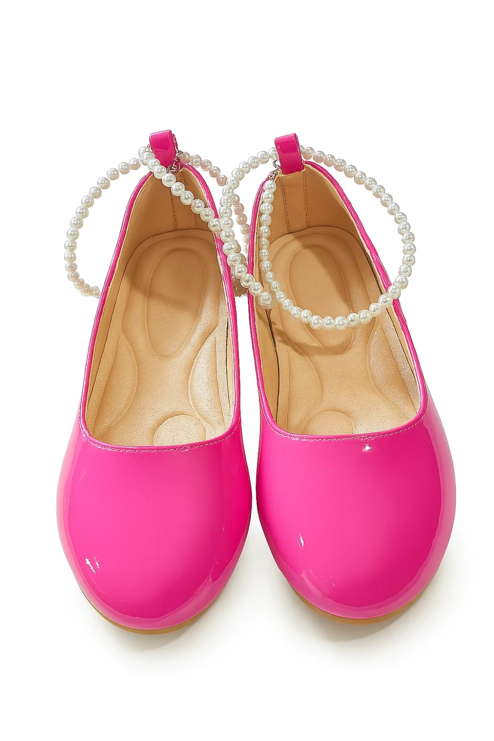حذاء باليرينا وردي لامع للبنات مع سوار لؤلؤ أنيق،