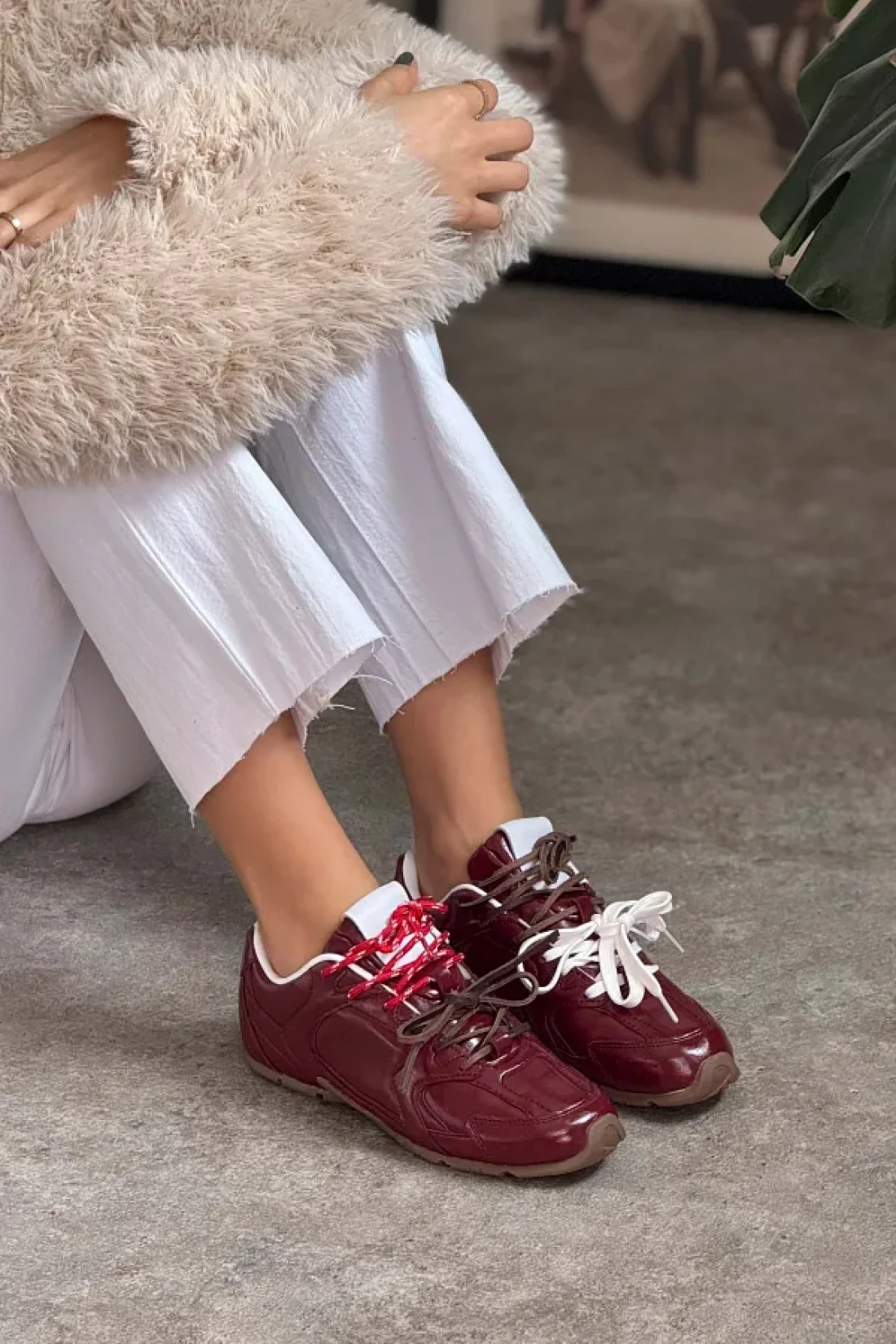 NİŞANTAŞI SHOES حذاء رياضي نسائي برباط ونعل مسطح غير لامع من Fabian Claret