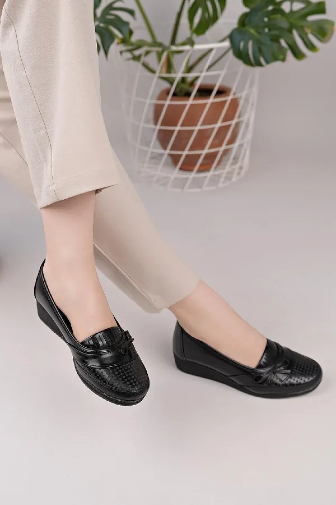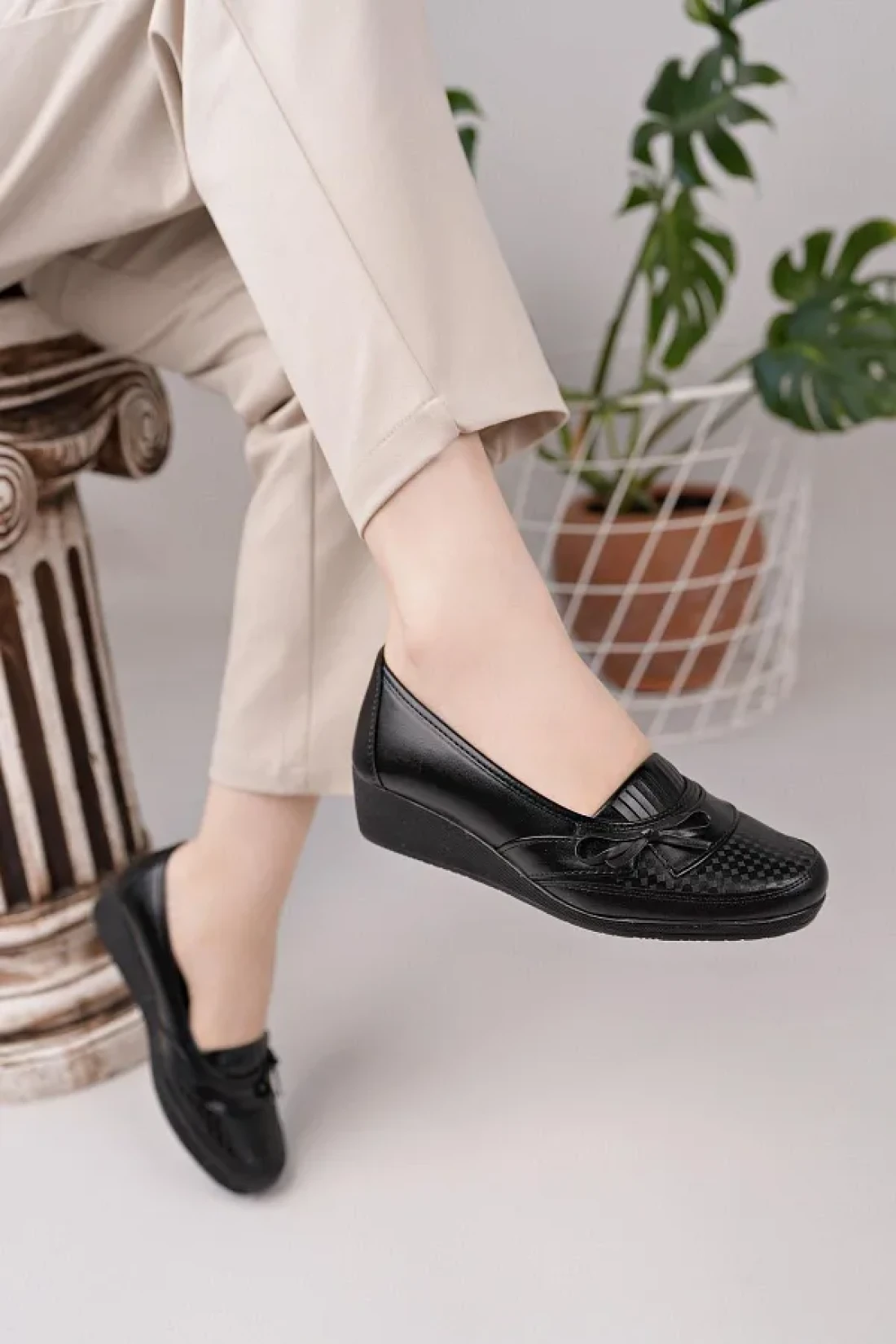 Nesil Shoes حذاء Ayzen 006 أسود بكعب عريض للنساء