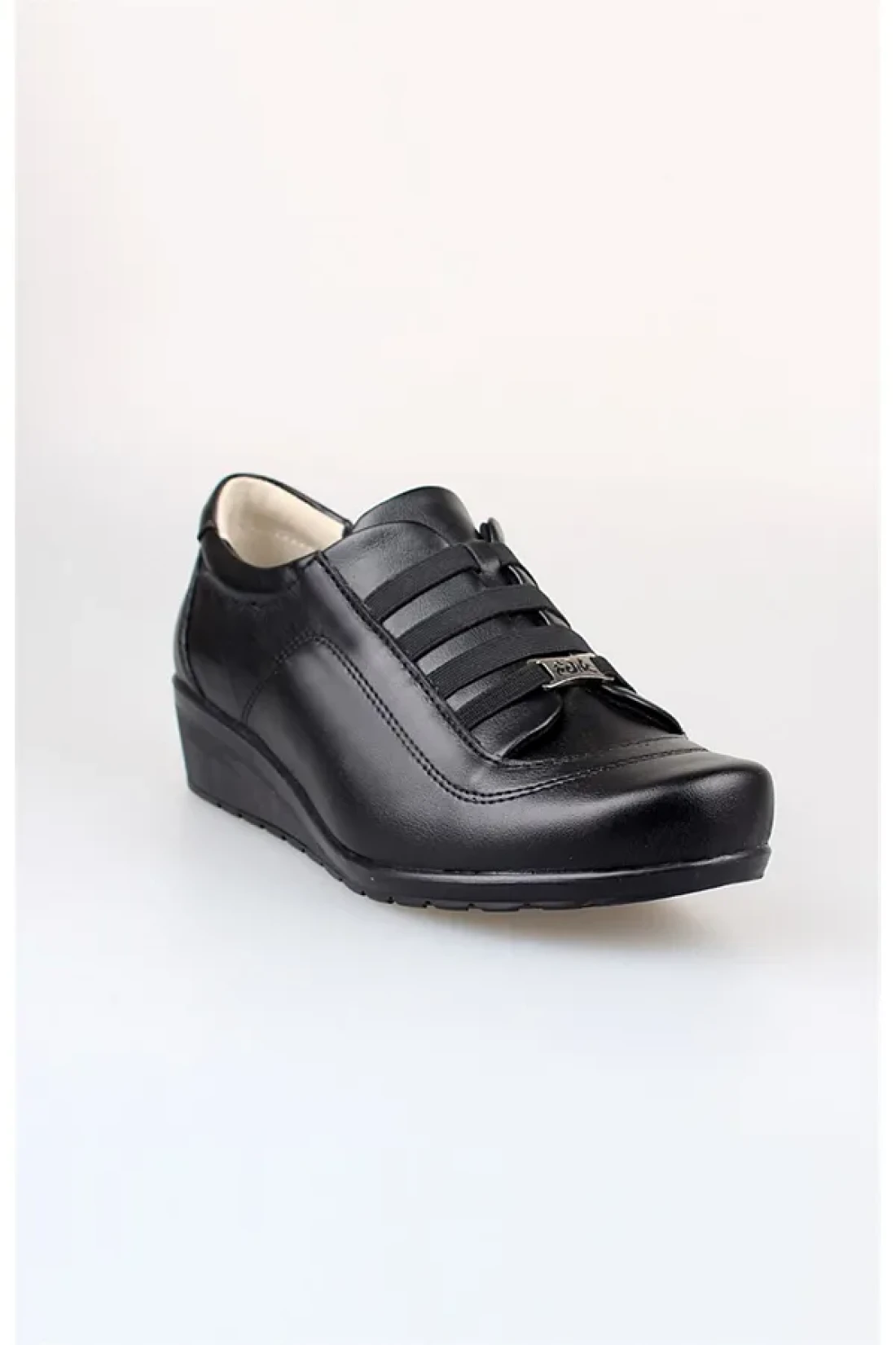 EDİK حذاء نسائي كاجوال من الجلد الطبيعي باللون الأسود من Edik - نظام مبطن للكعب C207