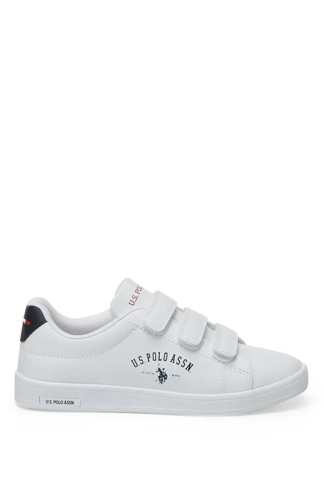 U.S. Polo Assn. حذاء سنيكر أبيض اللون بشريط فيلكرو للجنسين