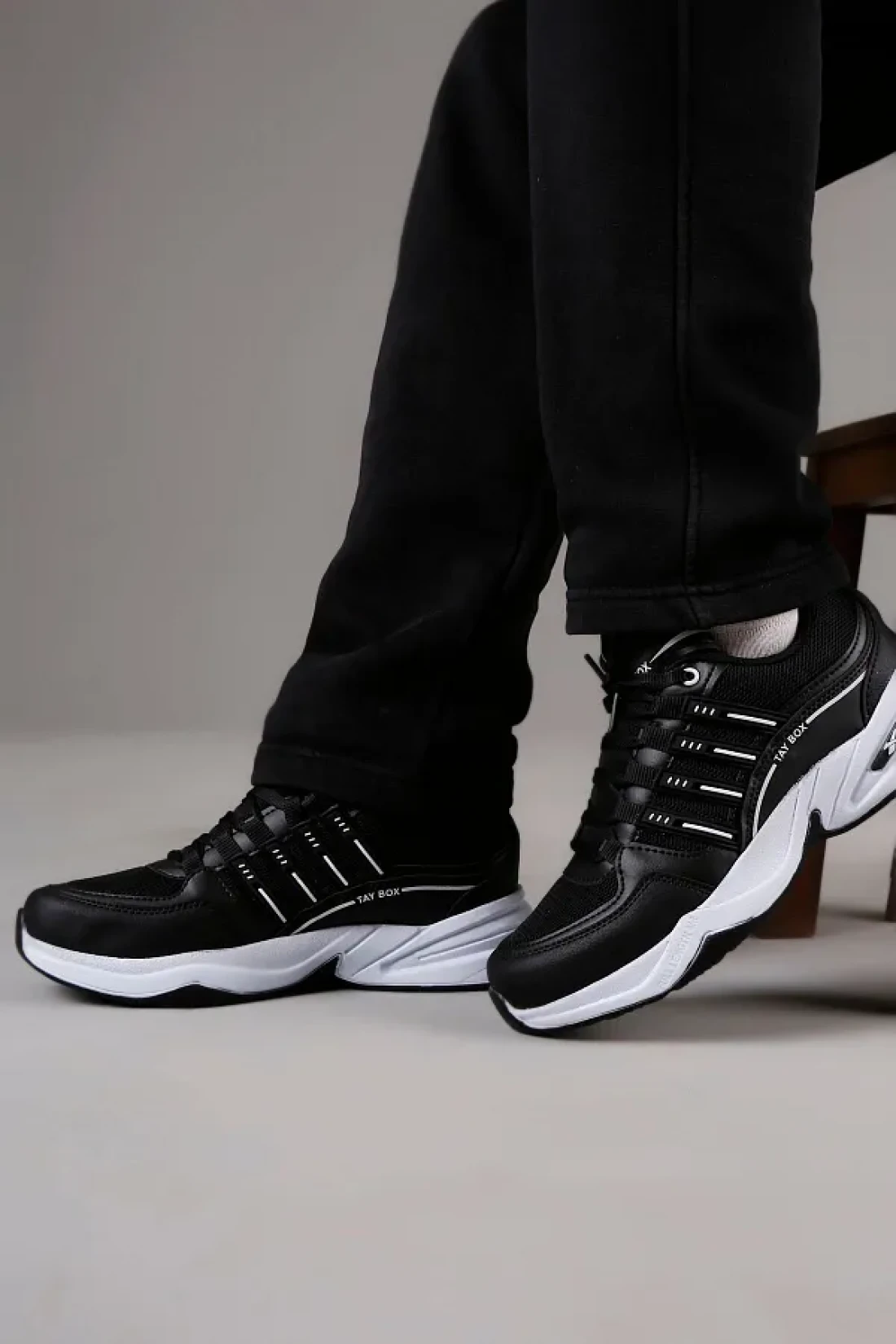 lord's ayakkabı حذاء مشي يومي أسود-أبيض لتقويم العظام ونعل تشريحي