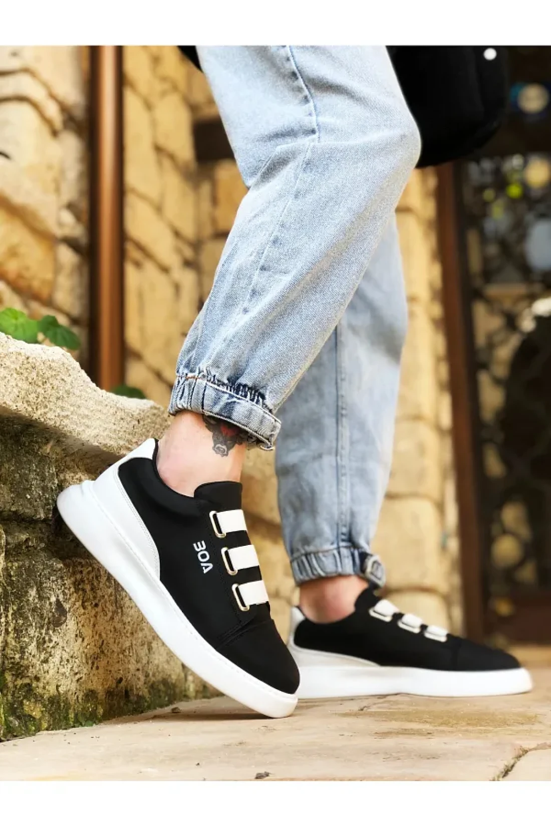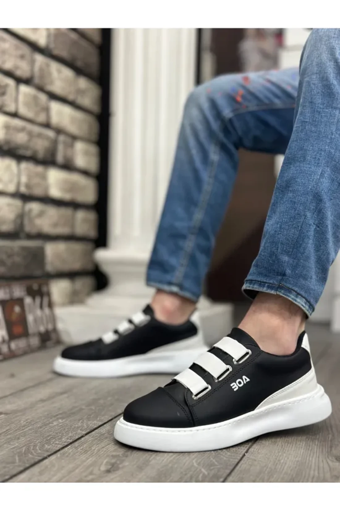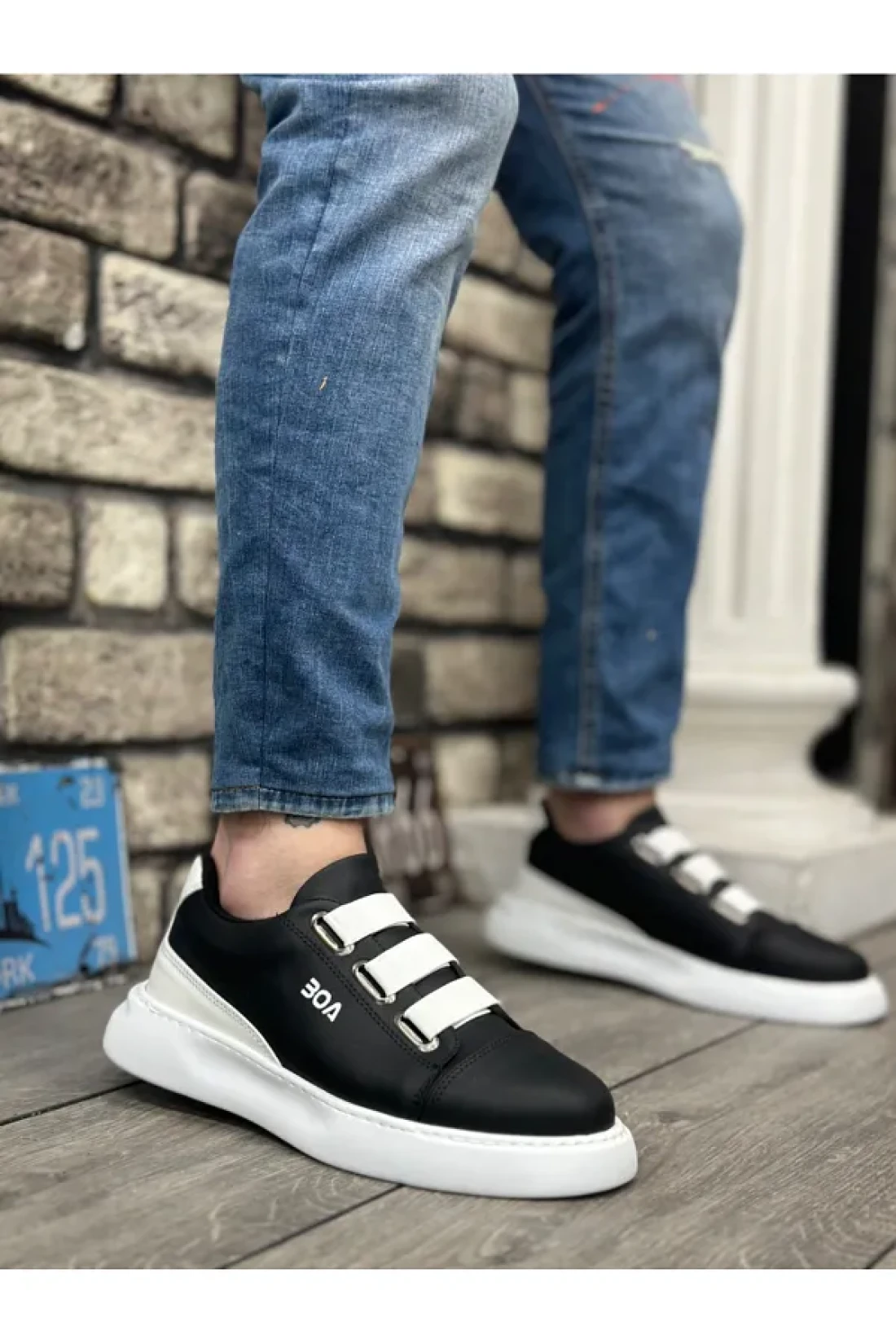 BOA Ba0329 3 خطوط سوداء وبيضاء مفصلة سميكة الوحيدة أحذية رجالية عادية