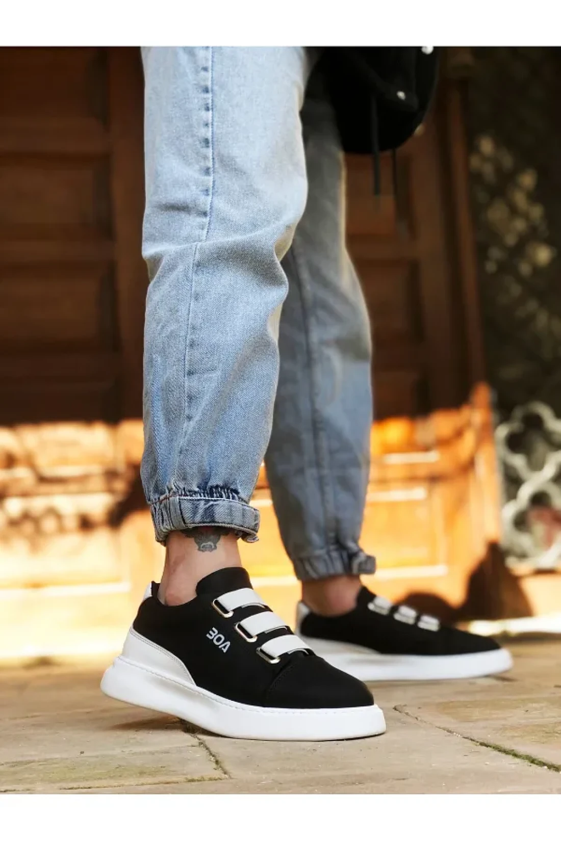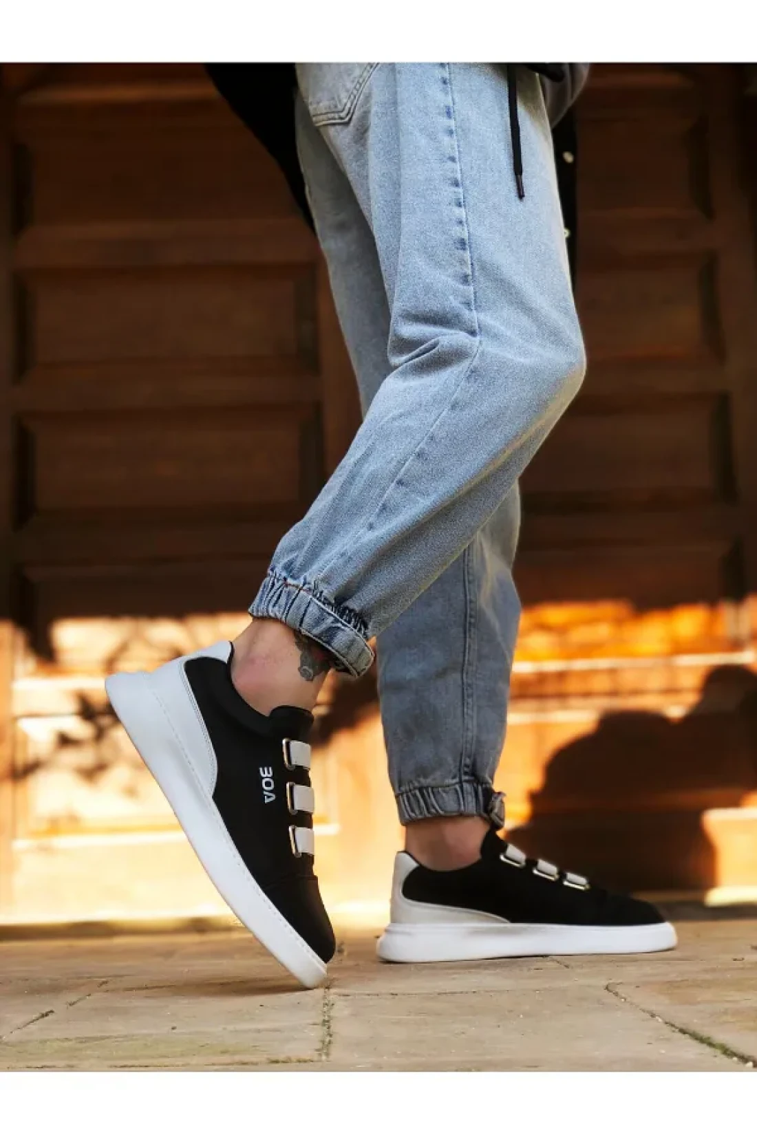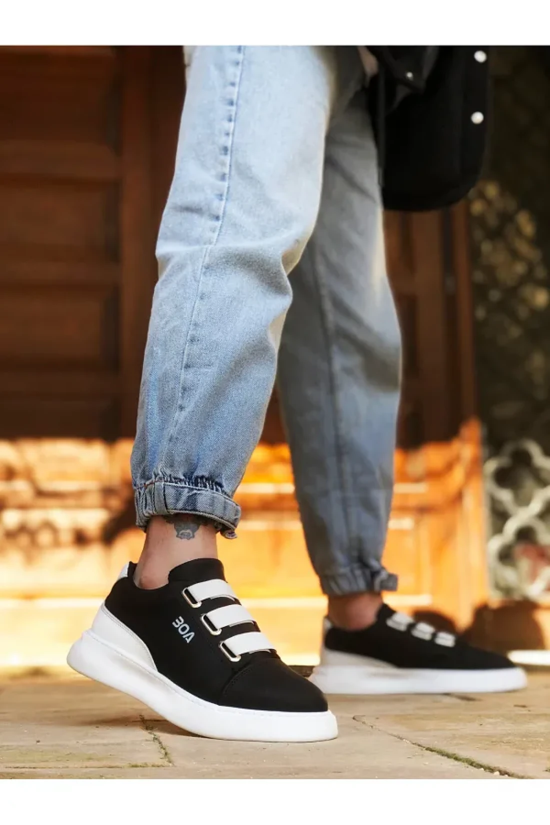 BOA Ba0329 3 خطوط سوداء وبيضاء مفصلة سميكة الوحيدة أحذية رجالية عادية