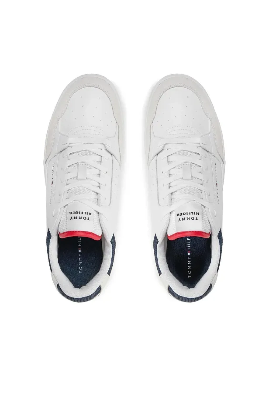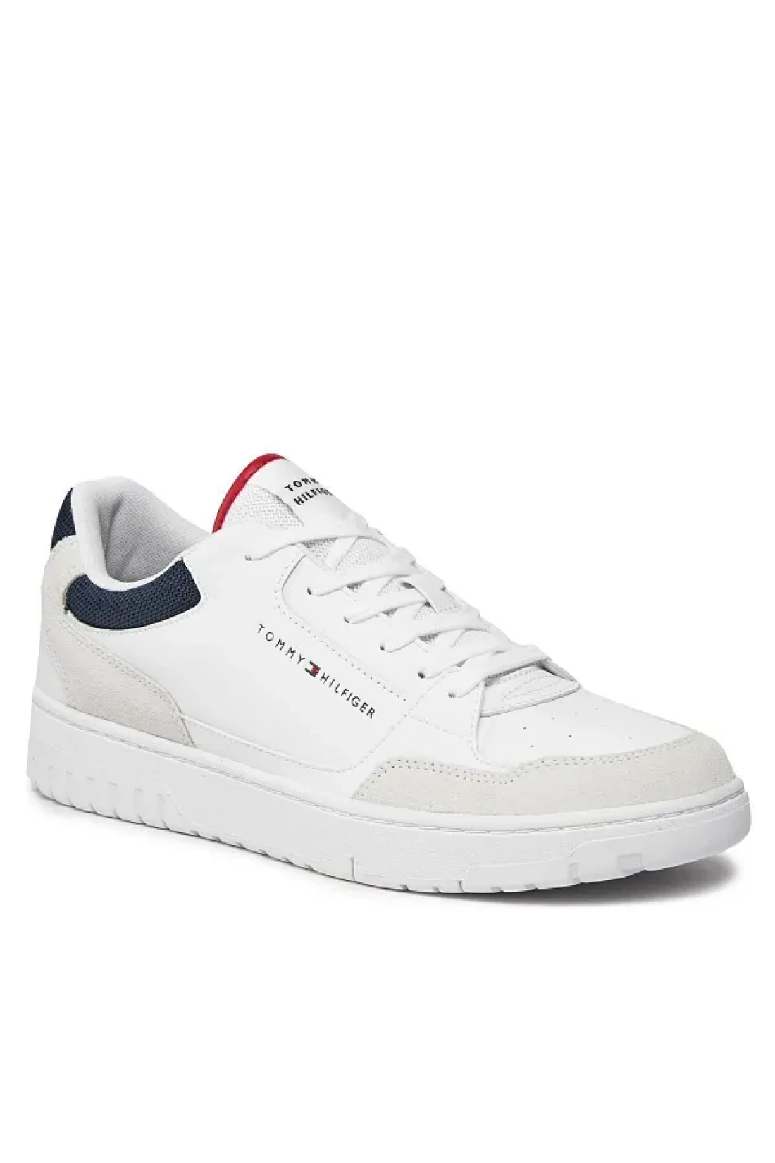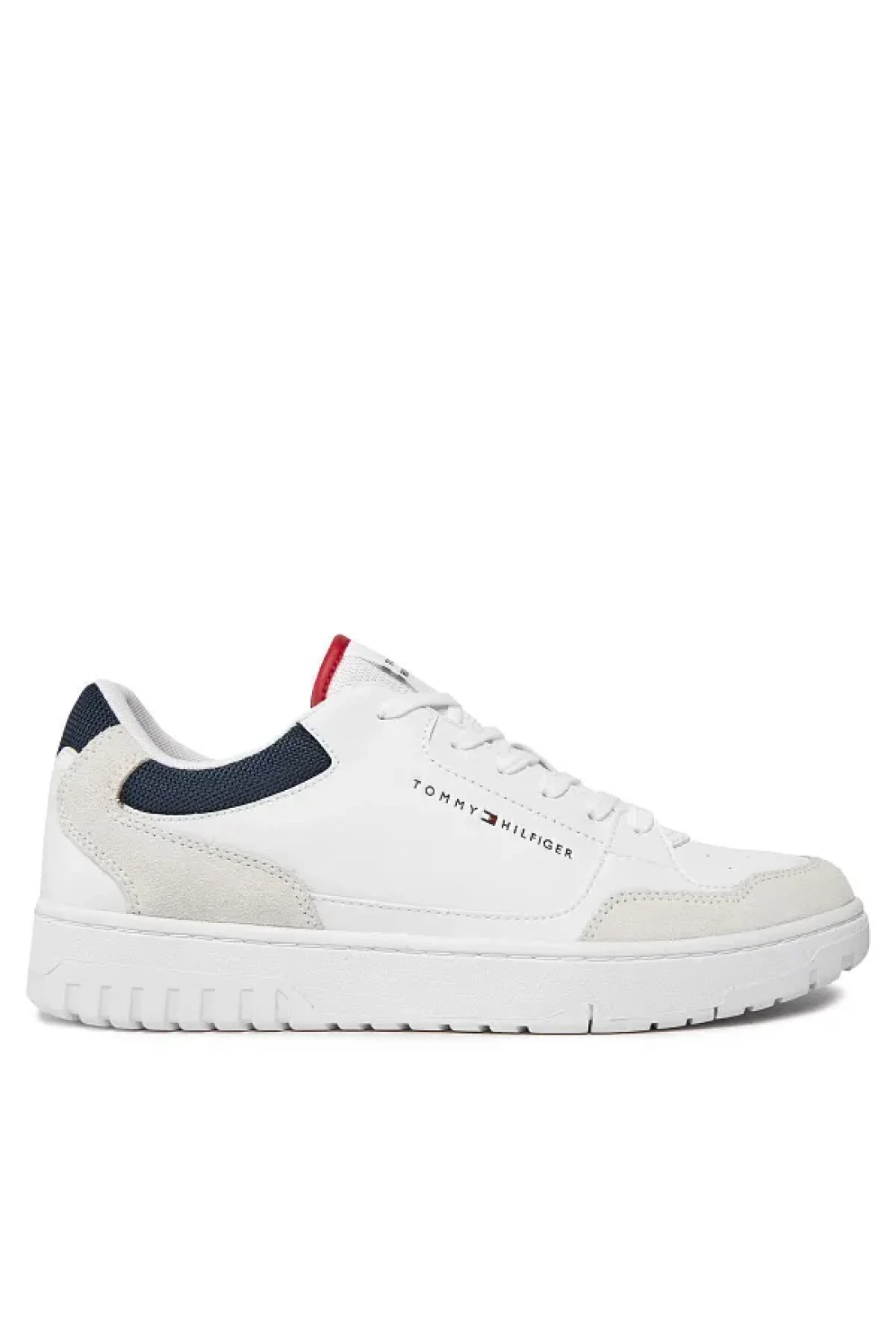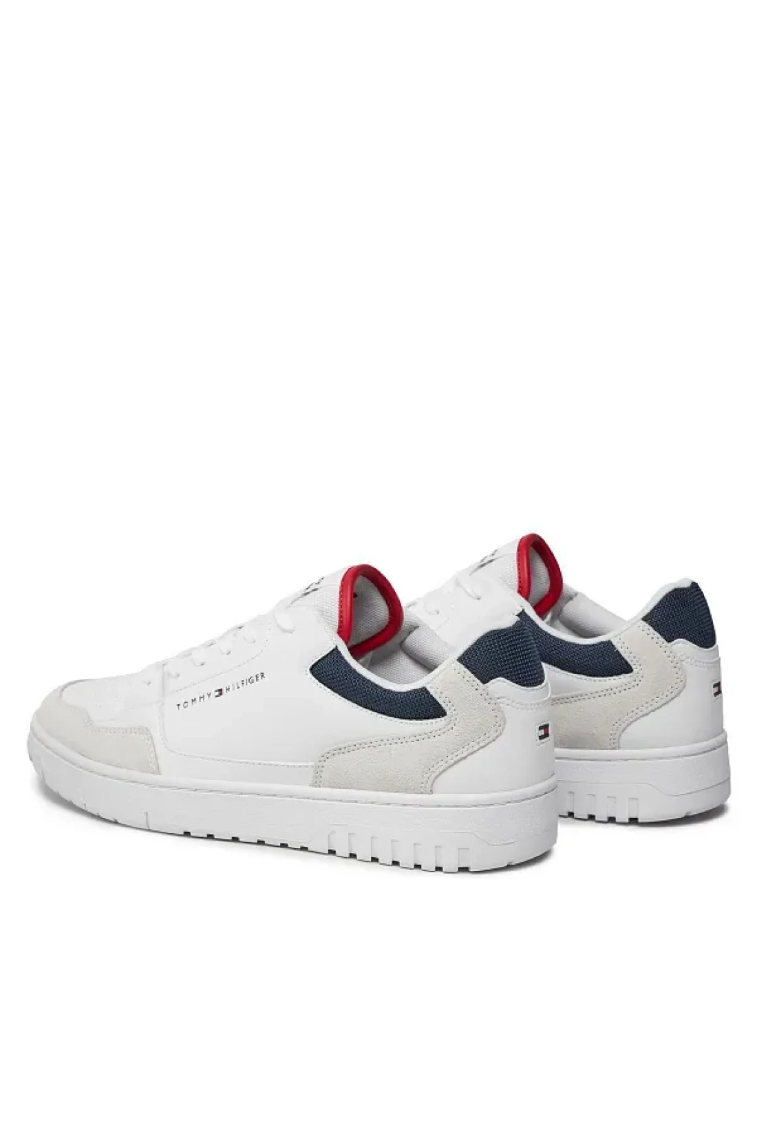 Tommy Hilfiger حذاء رياضي رجالي كاجوال بشعار العلامة التجارية برباط ومضاد للانزلاق باللون الأبيض FM0FM05058-YBS