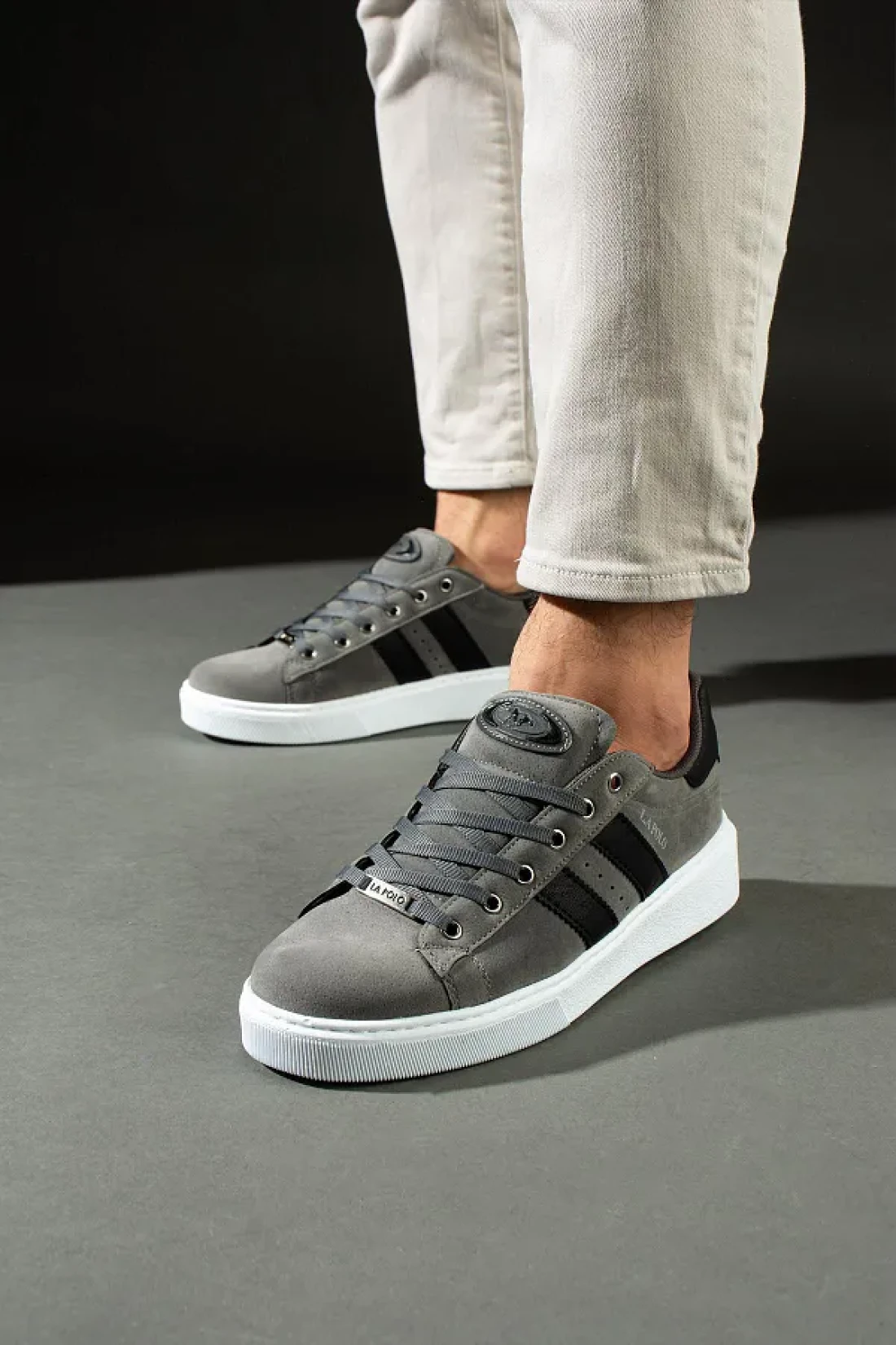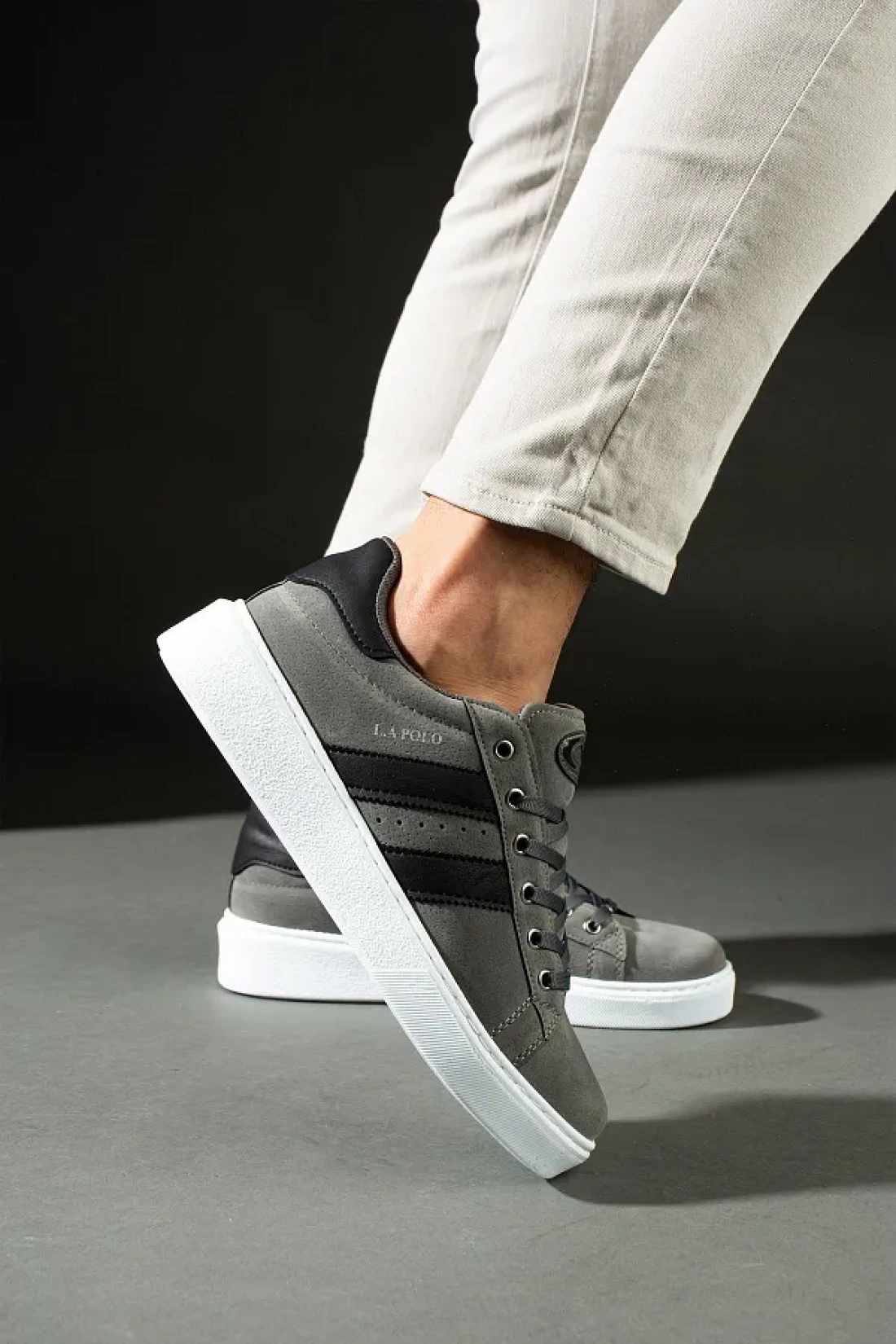 L.A Polo 503 Smoked - Black White Sole Lace-Up Men's Sneakers Suede