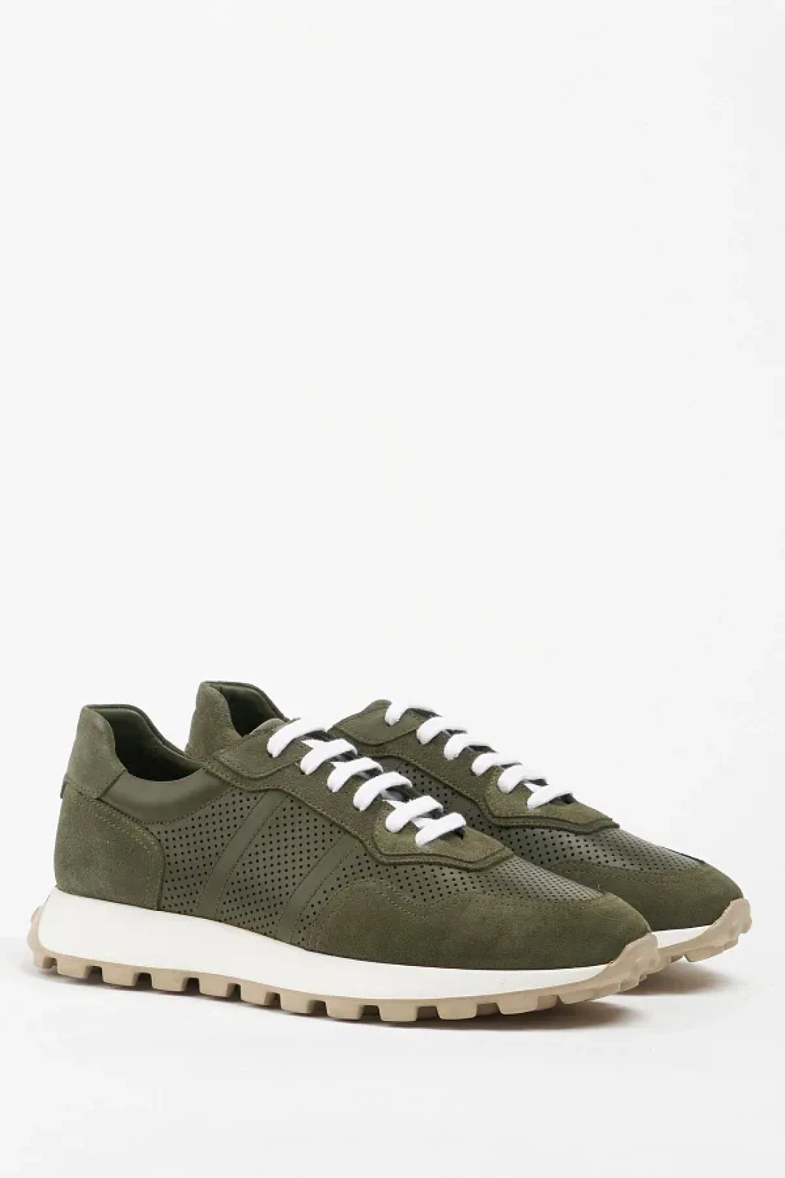 Galliano Shoes Barcelona Genuine Leather - Khaki Suede and Soft Eva Sneaker, Ready Sole