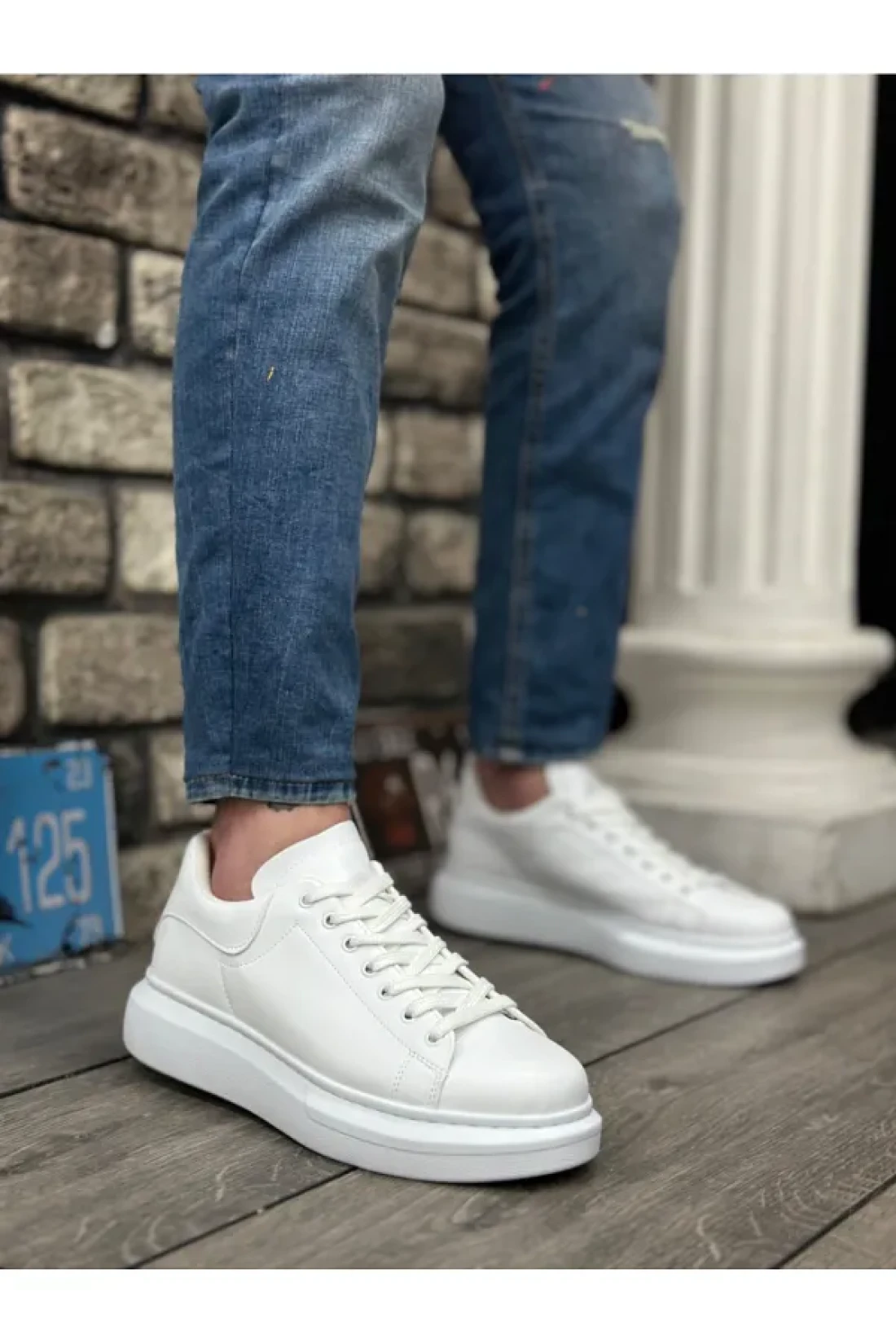 BESKAR BA0547 BOA حذاء رياضي رجالي برباط ونعل سميك أبيض
