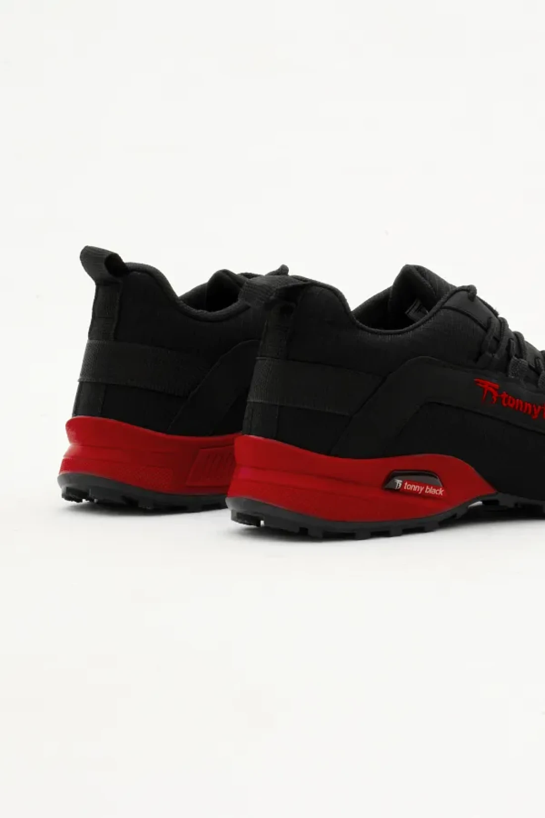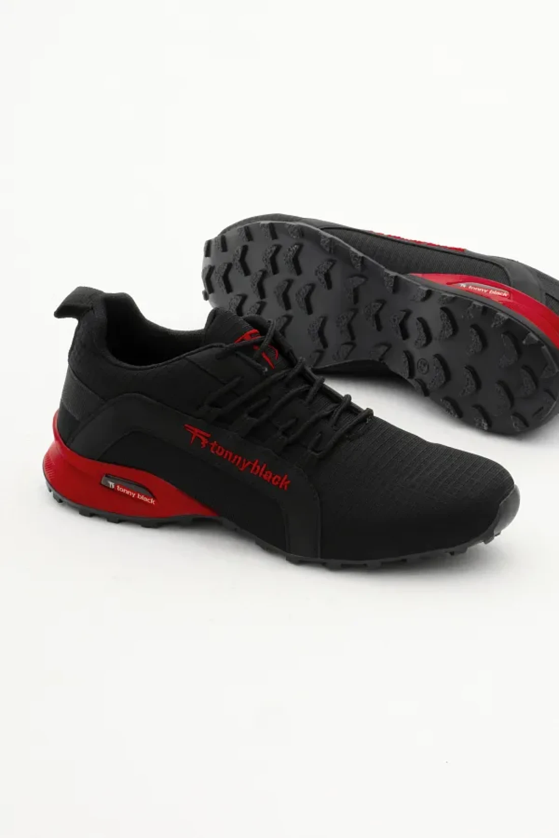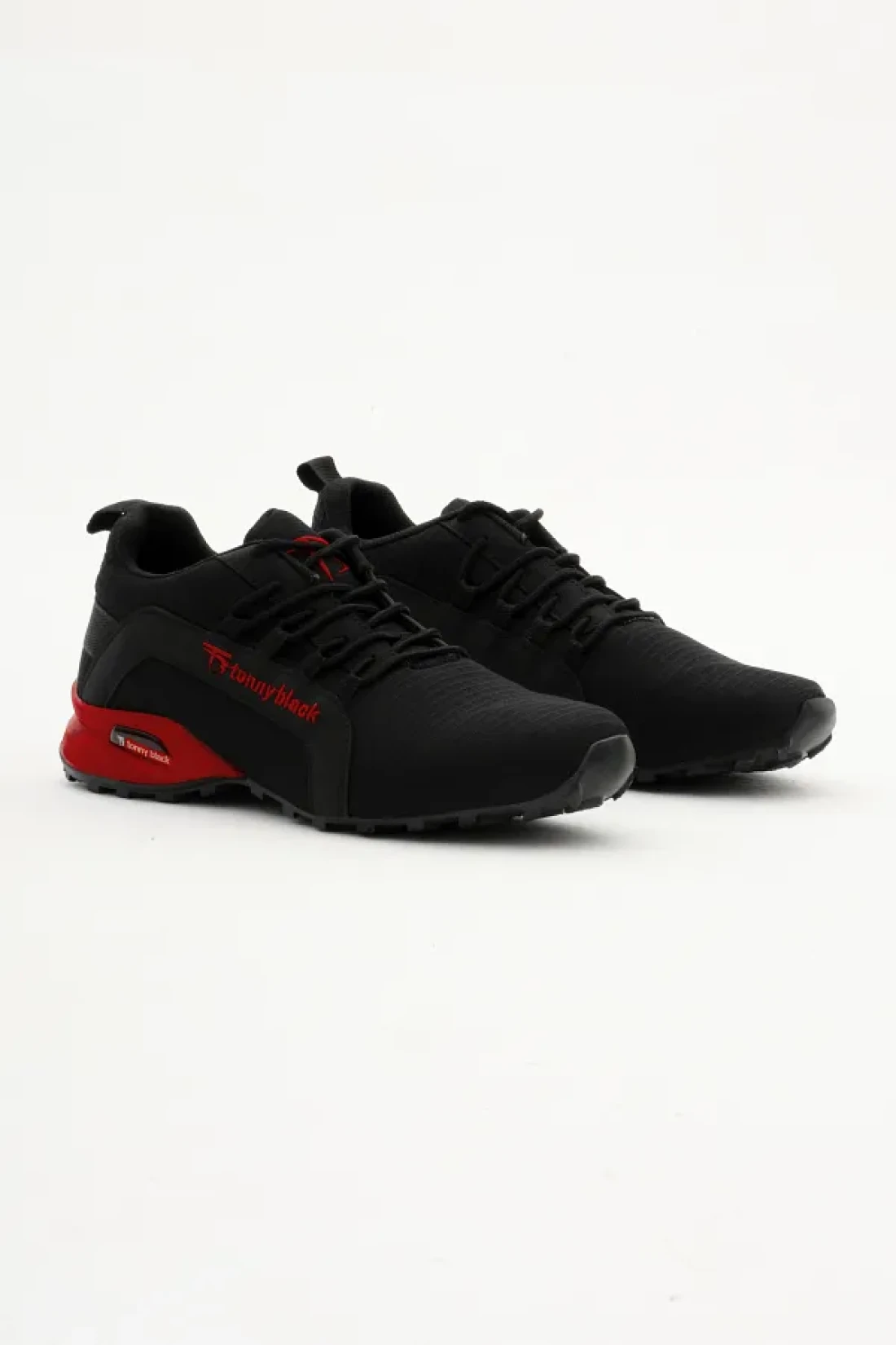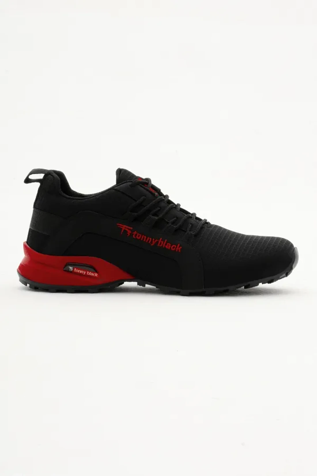 Tonny Black حذاء رياضي رجالي باللون الأسود والأحمر مريح بنعل حراري ورباط