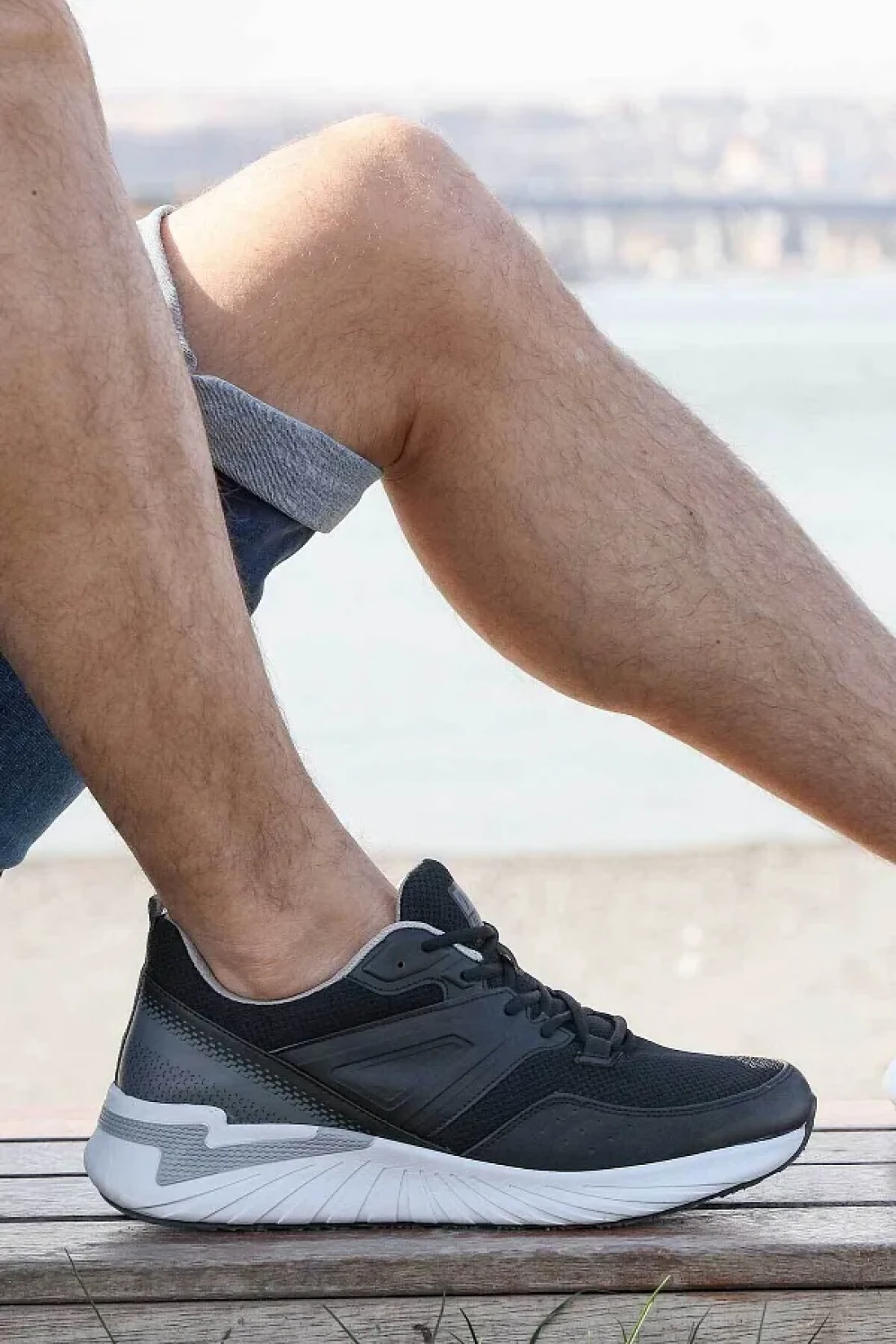 Jump 27440 حذاء رياضي رجالي أسود - أبيض مريح للمشي والجري في الصيف