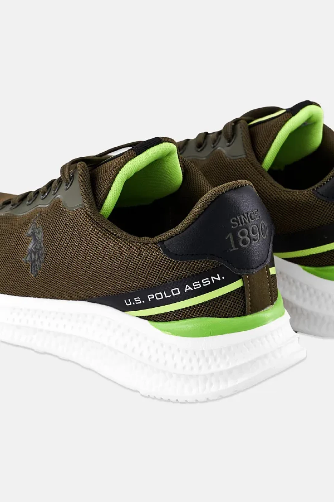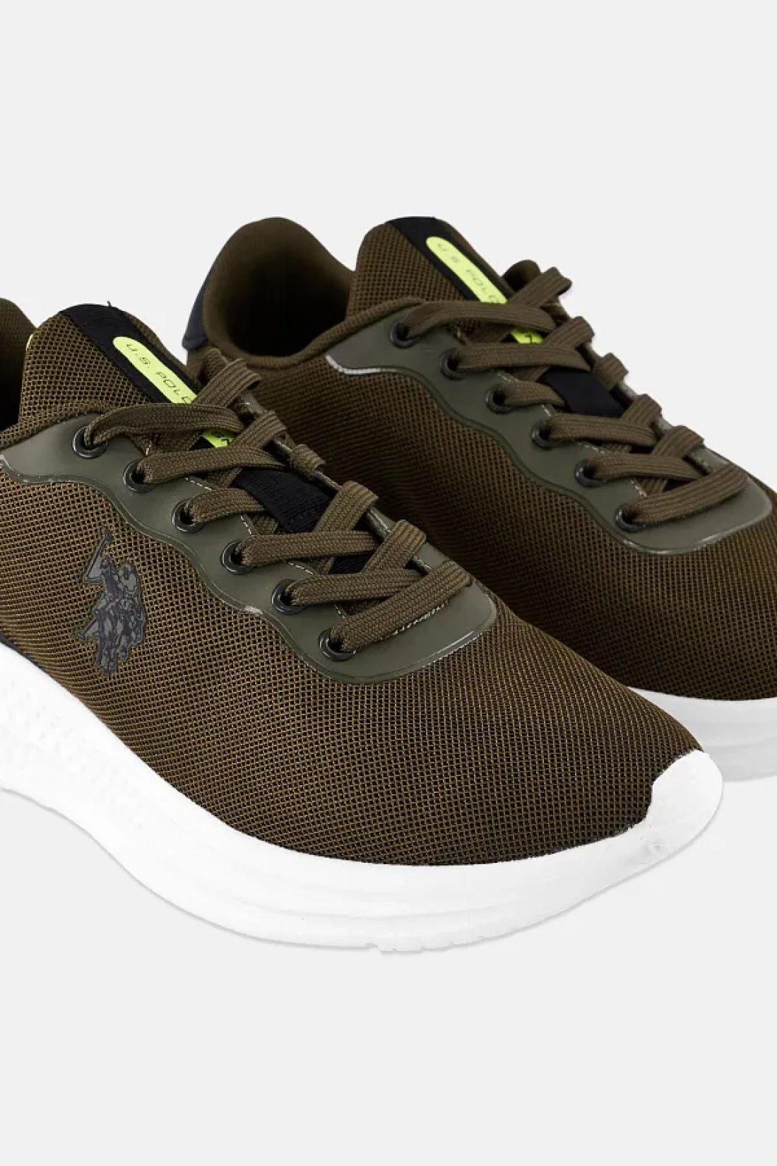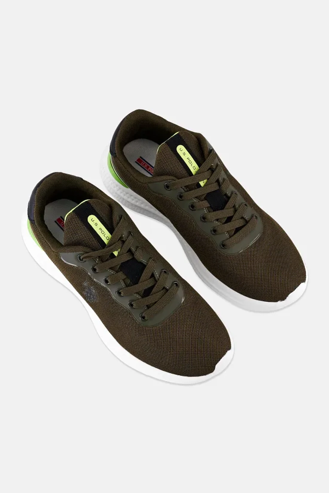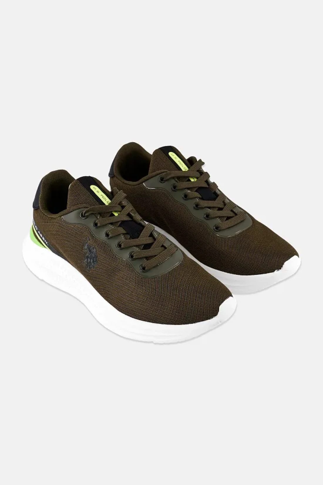 U.S. Polo Assn. حذاء كاجوال رجالي برباط وشعار العلامة التجارية، زيتوني