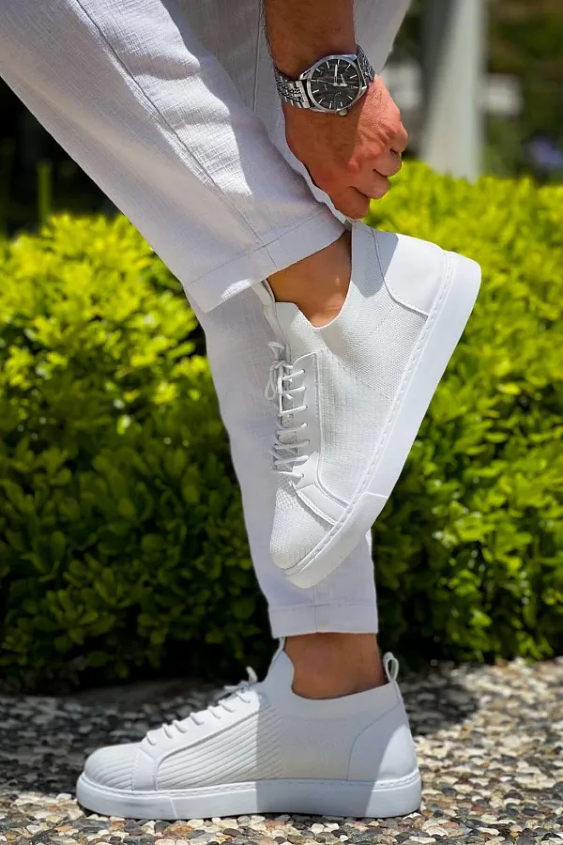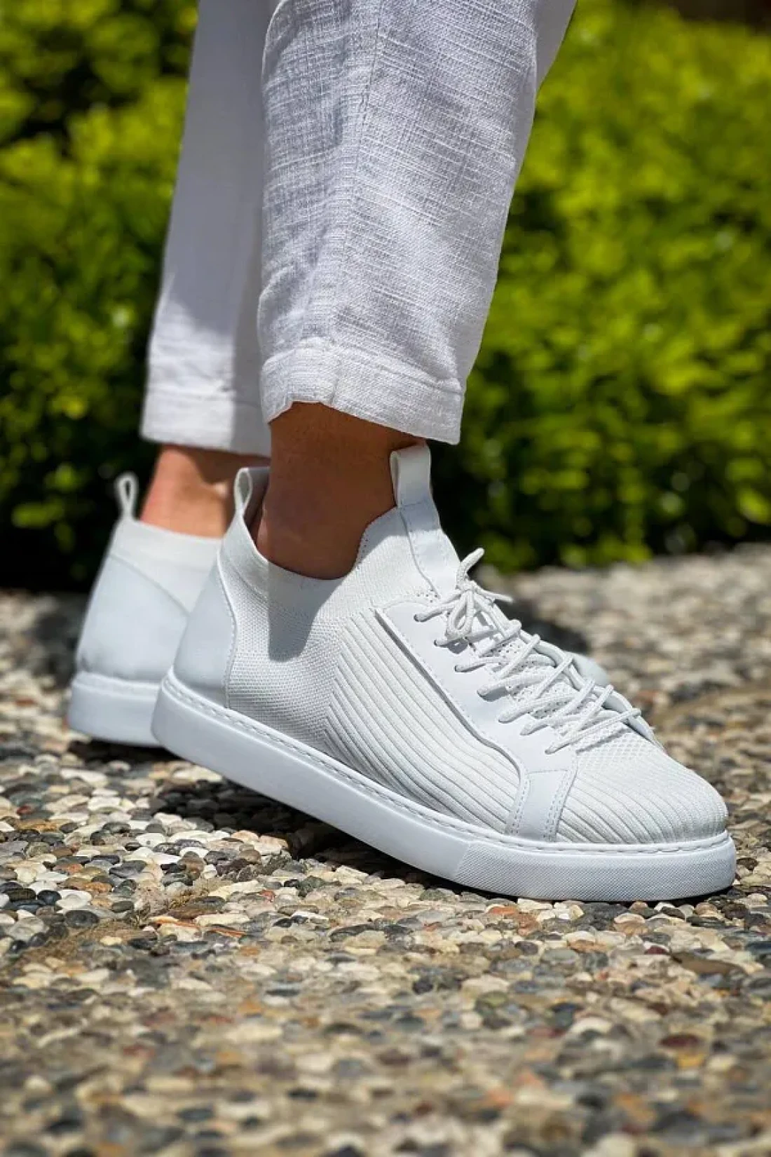 BESKAR KB 112 حذاء تريكو أبيض برباط كاجوال للرجال
