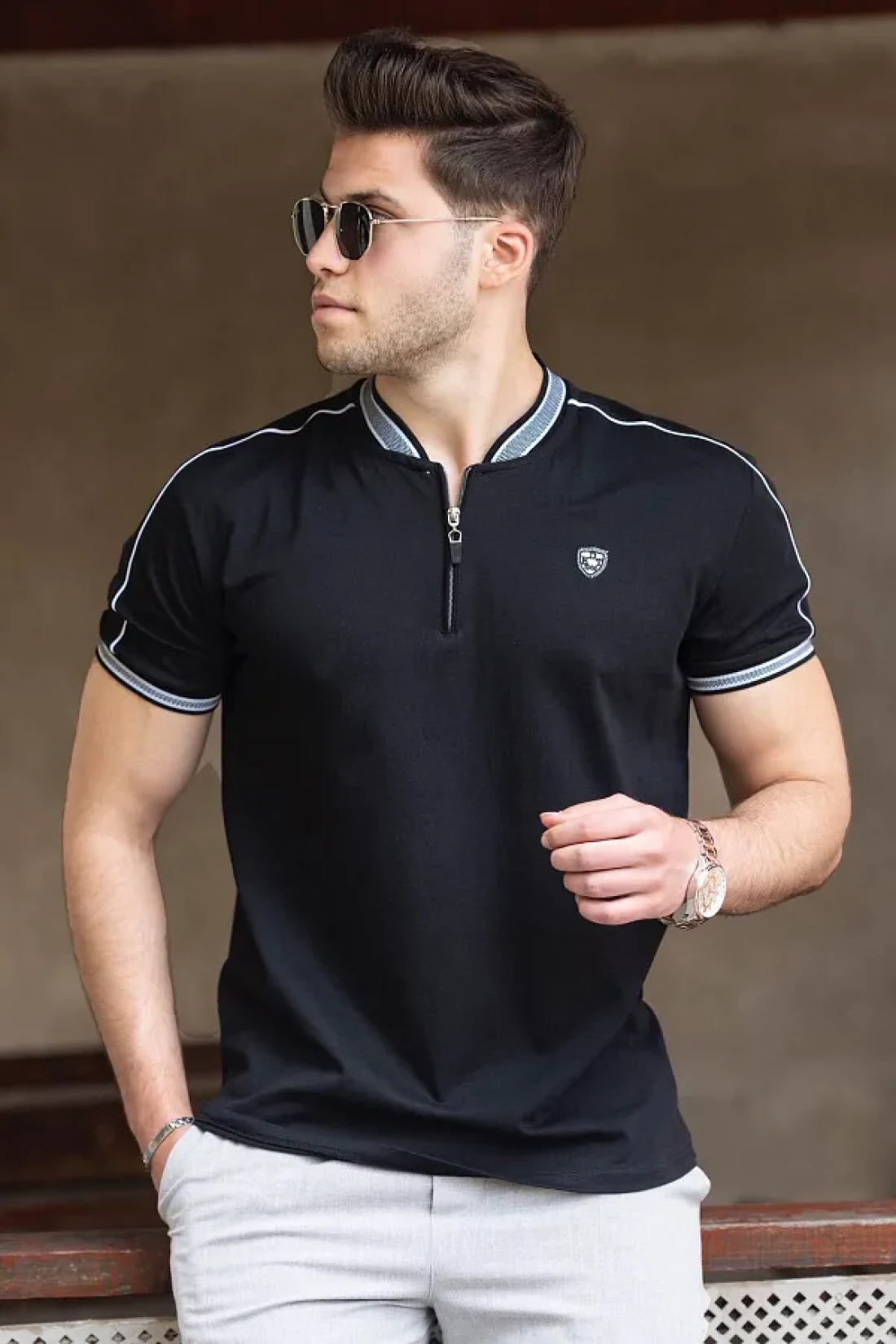 يعزز التصميم المفصل بالسحاب المظهر الجذاب للتي شيرت مع توفير إمكانية الاستخدام العملي.