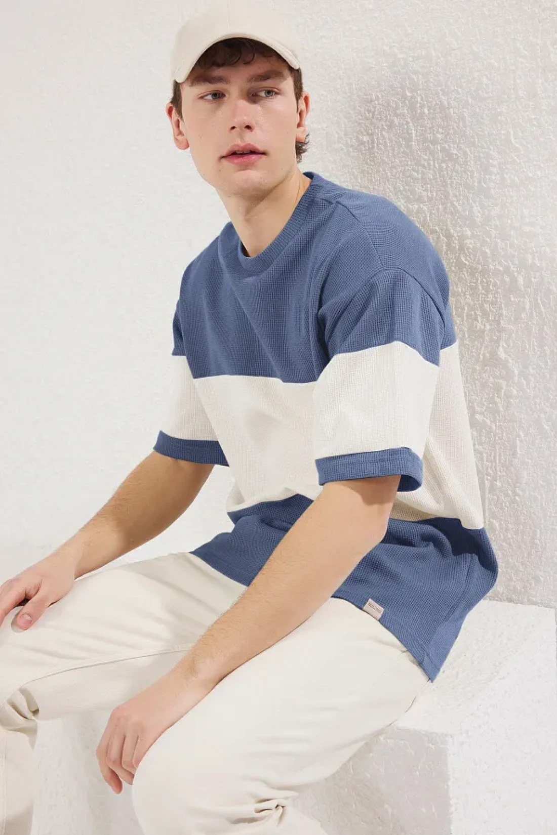 Collection تي شيرت Indigo مقاس كبير مع كتل ملونة Doe Kusma TMNSS25TS00065