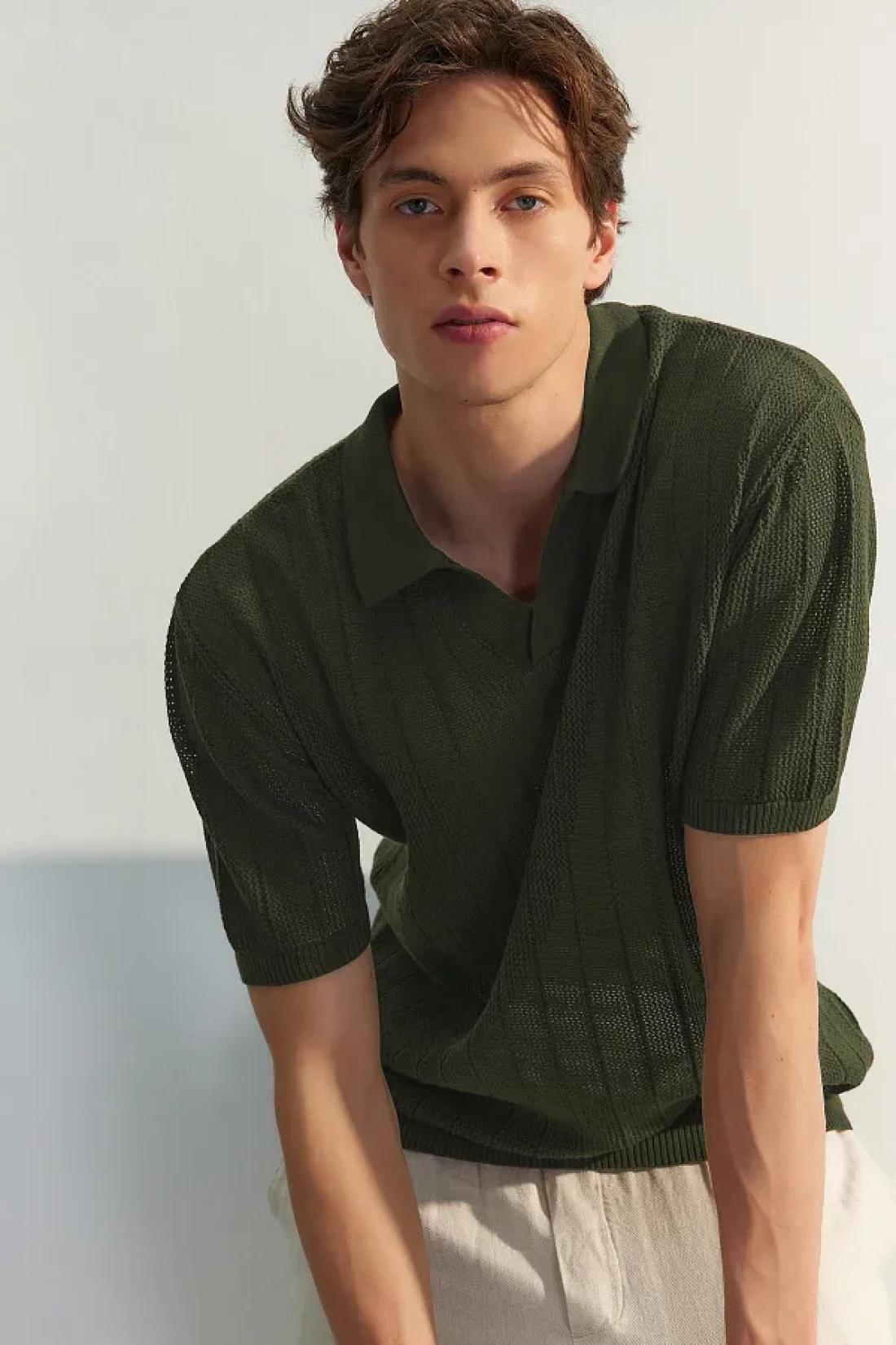 يوفر تصميمًا مريحًا وأنيقًا مثاليًا للاستخدام اليومي، تي شيرت محبوك برقبة بولو. قميص يوفر راحة ومتانة طويلة الأمد بفضل نسيجه المحبوك عالي الجودة مع هيكل الأكمام القياسي، فإنه يوفر حرية الحركة، بينما يعطي الشعور بالبرودة في الصيف بفضل خفة نوع النسيج الشبكي. بفضل قصته المستقيمة وملاءمته المريحة، فهو يتمتع ببنية تعانق خطوط الجسم ولكنها لا تضغط عليها. يتكيف مع أنواع الجسم المختلفة بطوله الطبيعي ويسمح باستخدام مريح. مكون المادة، الذي يتكون من خليط من 51% قطن و 49% أكريليك، يوفر التهوية والنعومة. يوفر البرودة والراحة في الصيف بطول الأكمام القصير مما يسمح لك بالتحرك بحرية في أنشطتك اليومية؛ مع نمط حياكة دانتيل، يعطي مظهرًا حديثًا وديناميكيًا، مع تفصيل ياقة البولو يضيف لمسة حديثة إلى الأسلوب الكلاسيكي. مع العناية وفقًا لتعليمات الغسيل، فإنه يحافظ على شكله لفترة طويلة، مثل اليوم الأول.
