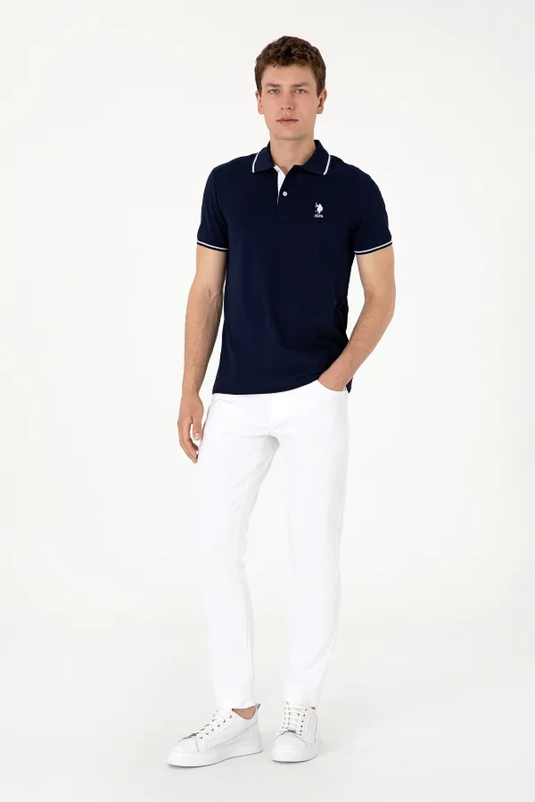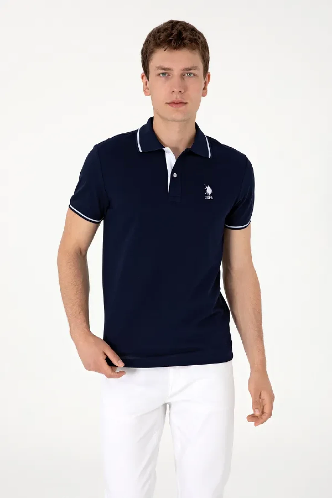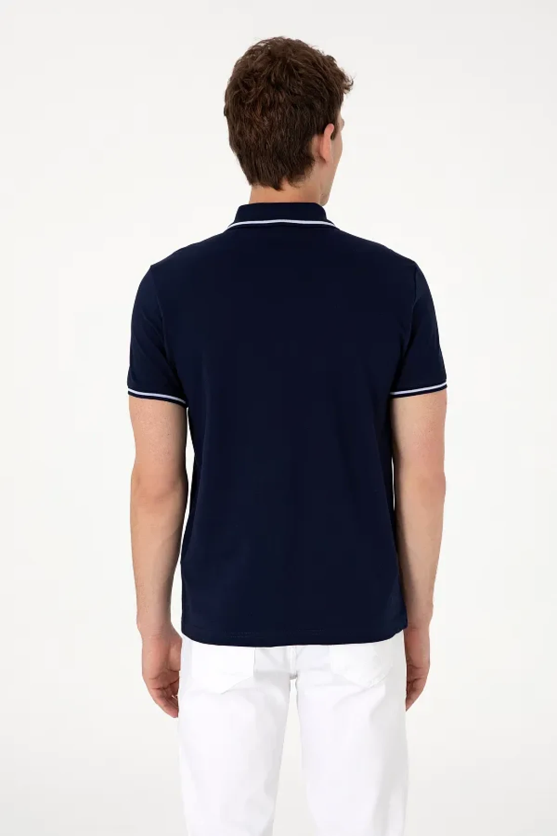 U.S. Polo Assn. تي شيرت رجالي بقصة ضيقة وياقة بولو باللون الأزرق الداكن 50305980-vr033