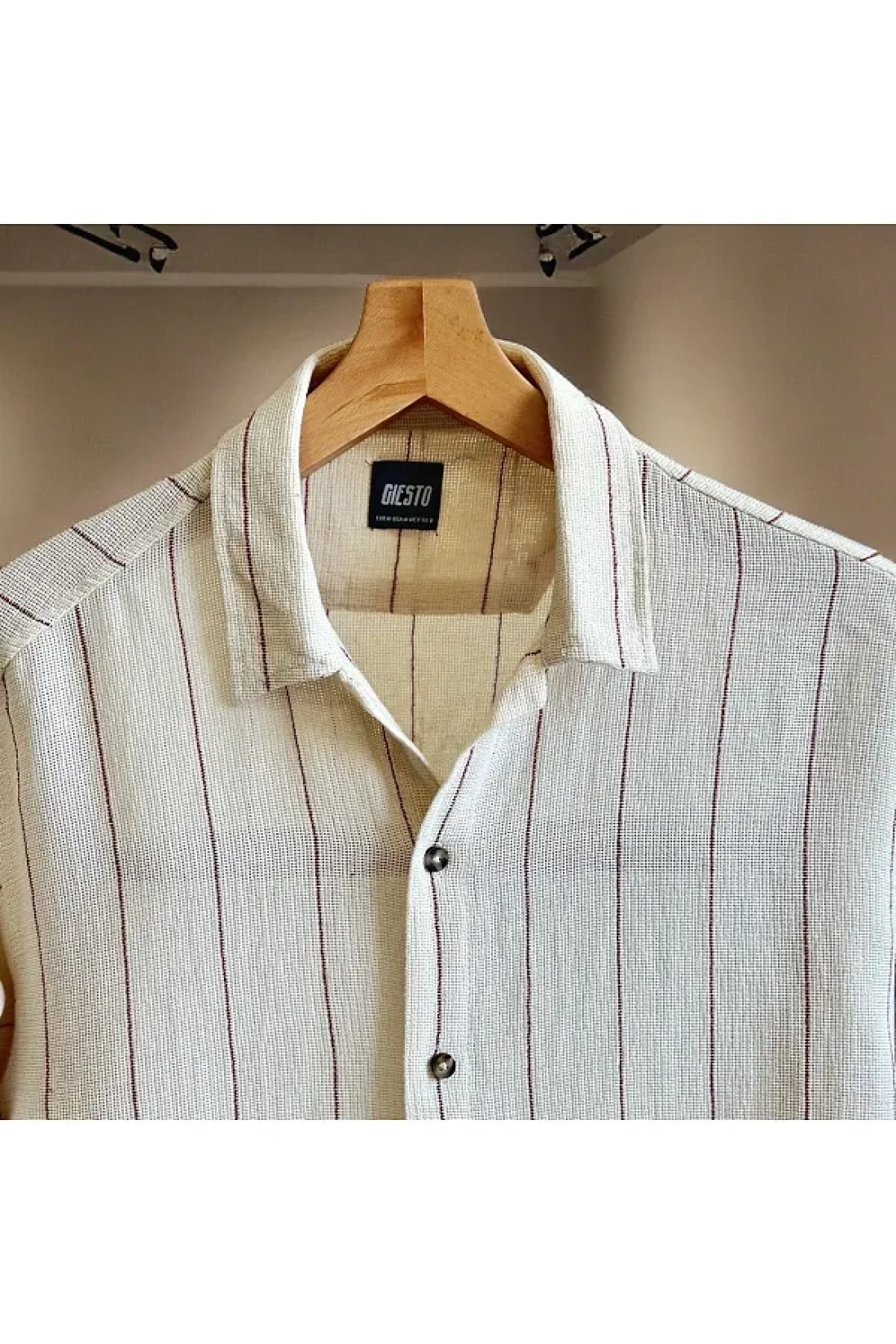 Hazhers قميص كتان كبير الحجم للرجال - كريمي، كم طويل، طوق القميص