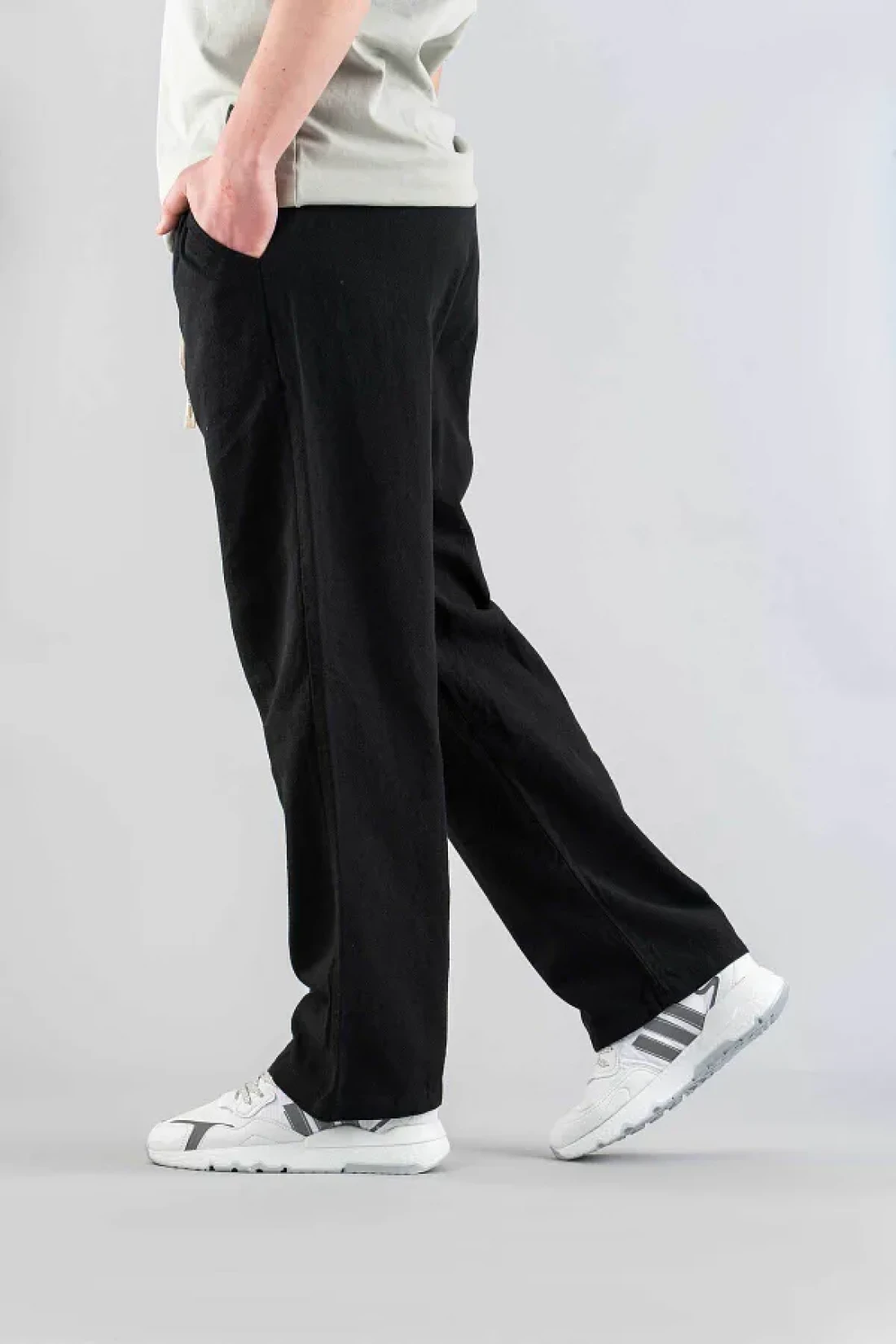 بنطال فضفاض مثالي للارتداء اليومي بفضل تصميمه المريح والساق الواسعة. يوفر المرونة والراحة بفضل نسيجه المختلط بنسبة 90% قطن و10% ليكرا. - بفضل نمطه البسيط وتصميمه البسيط، يسهل تنسيقه مع أي ملابس علوية. يوفر استخدامًا عمليًا بفضل هيكله المكون من 5 جيوب. - يمنحها نوع النسيج المخلوط من الكتان مظهرًا أنيقًا مع زيادة المتانة. - تفاصيل الحزام تبرز منطقة الخصر، مما يخلق صورة ظلية عصرية.