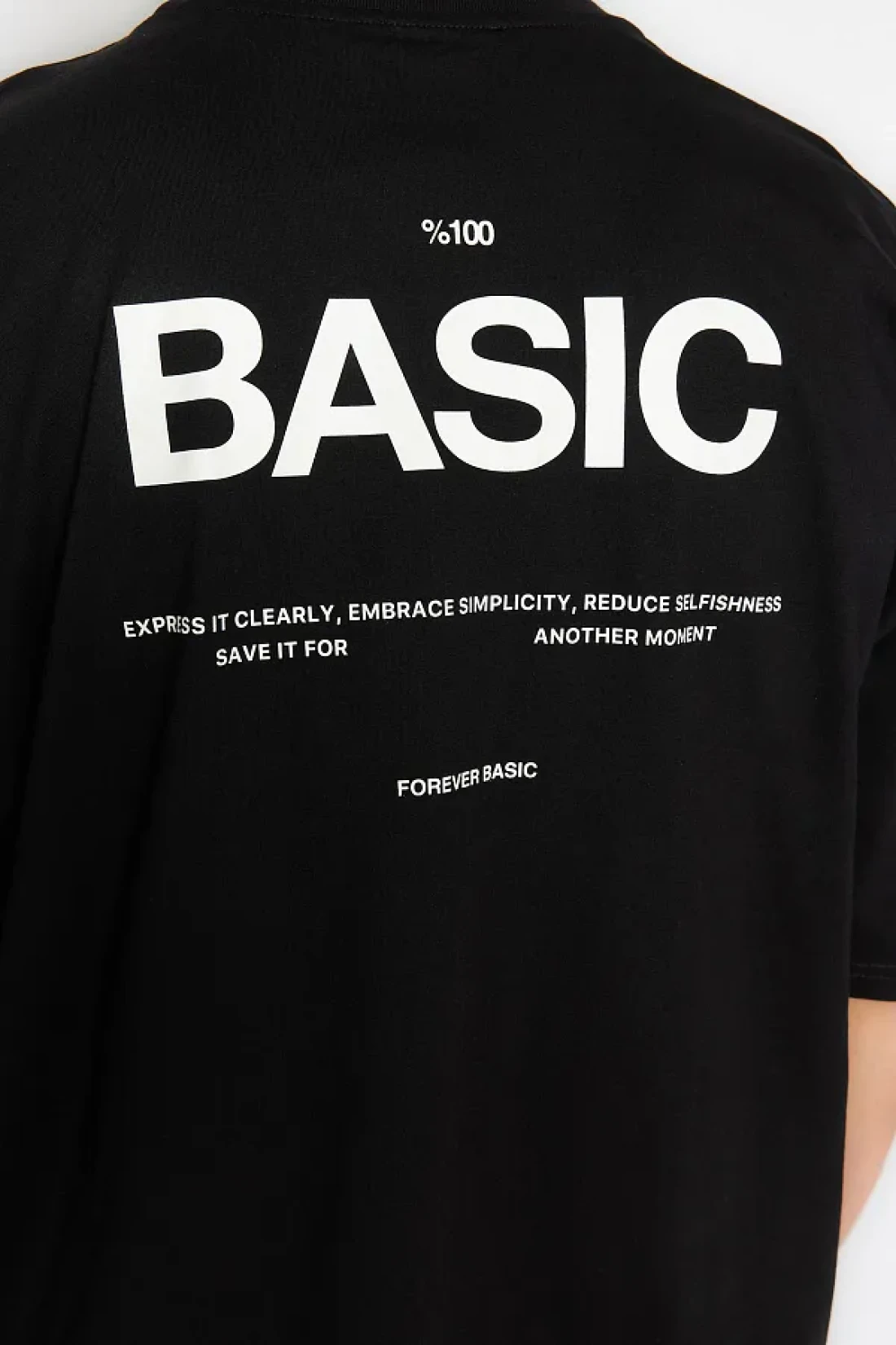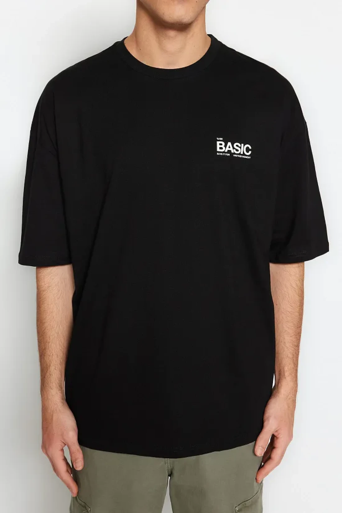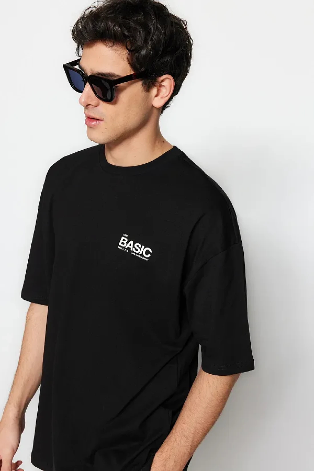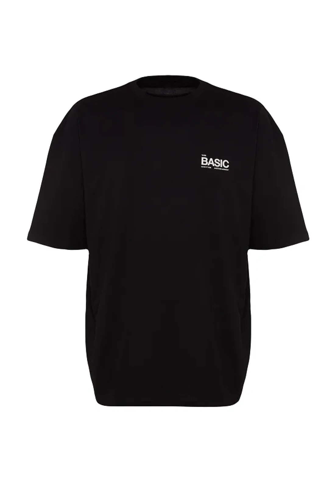 Collection تي شيرت قطني أسود كبير الحجم مطبوع عليه نص - TMNSS23TS00263