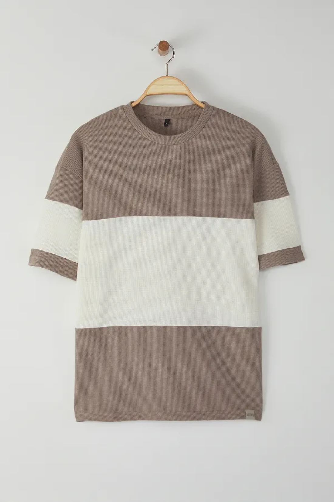 Collection تي شيرت حجري كبير الحجم مصنوع من القطن بنسبة 100% ومزخرف بألوان متعددة