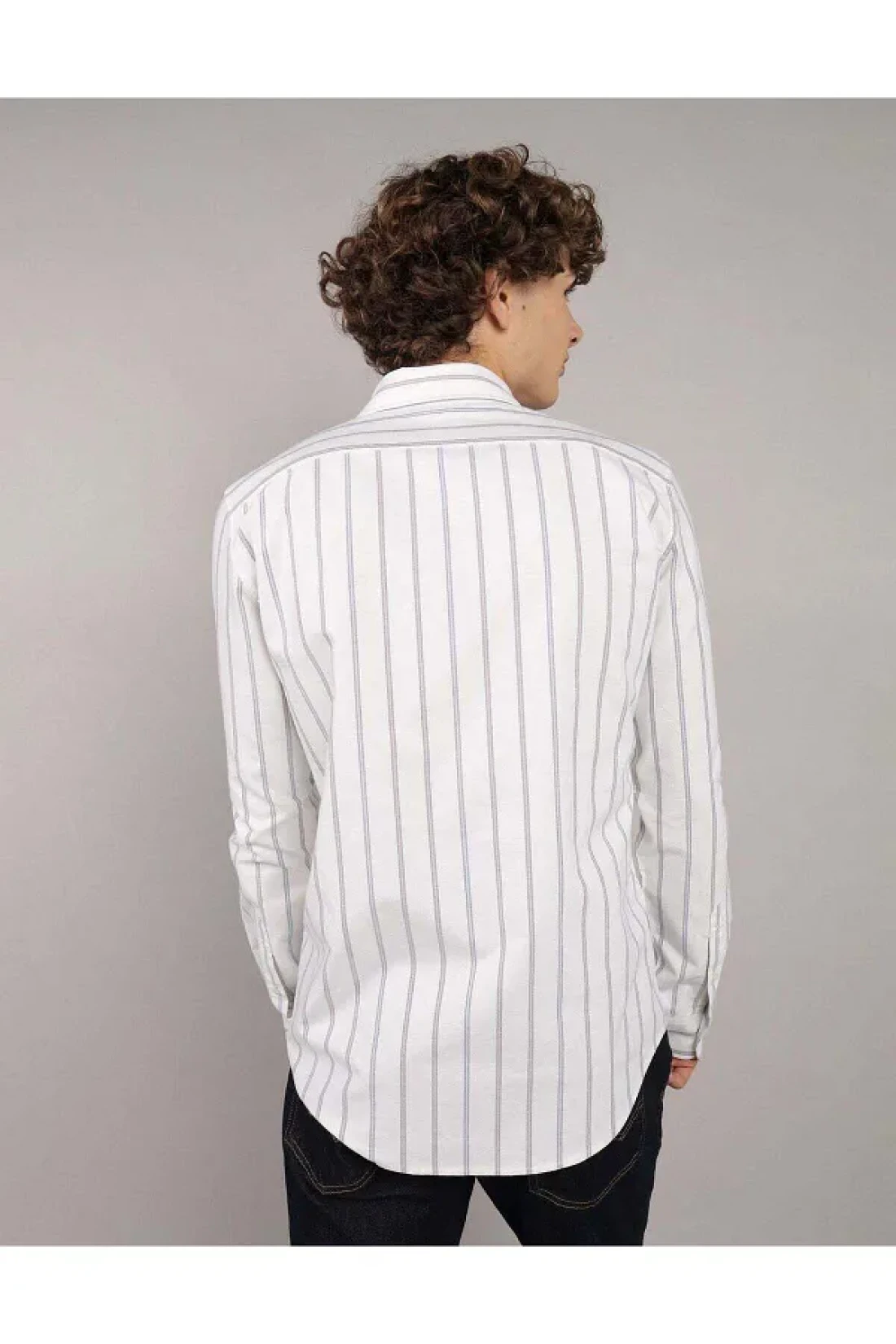 American Eagle قميص أكسفورد مخطط بأزرار للاستخدام اليومي من Ae