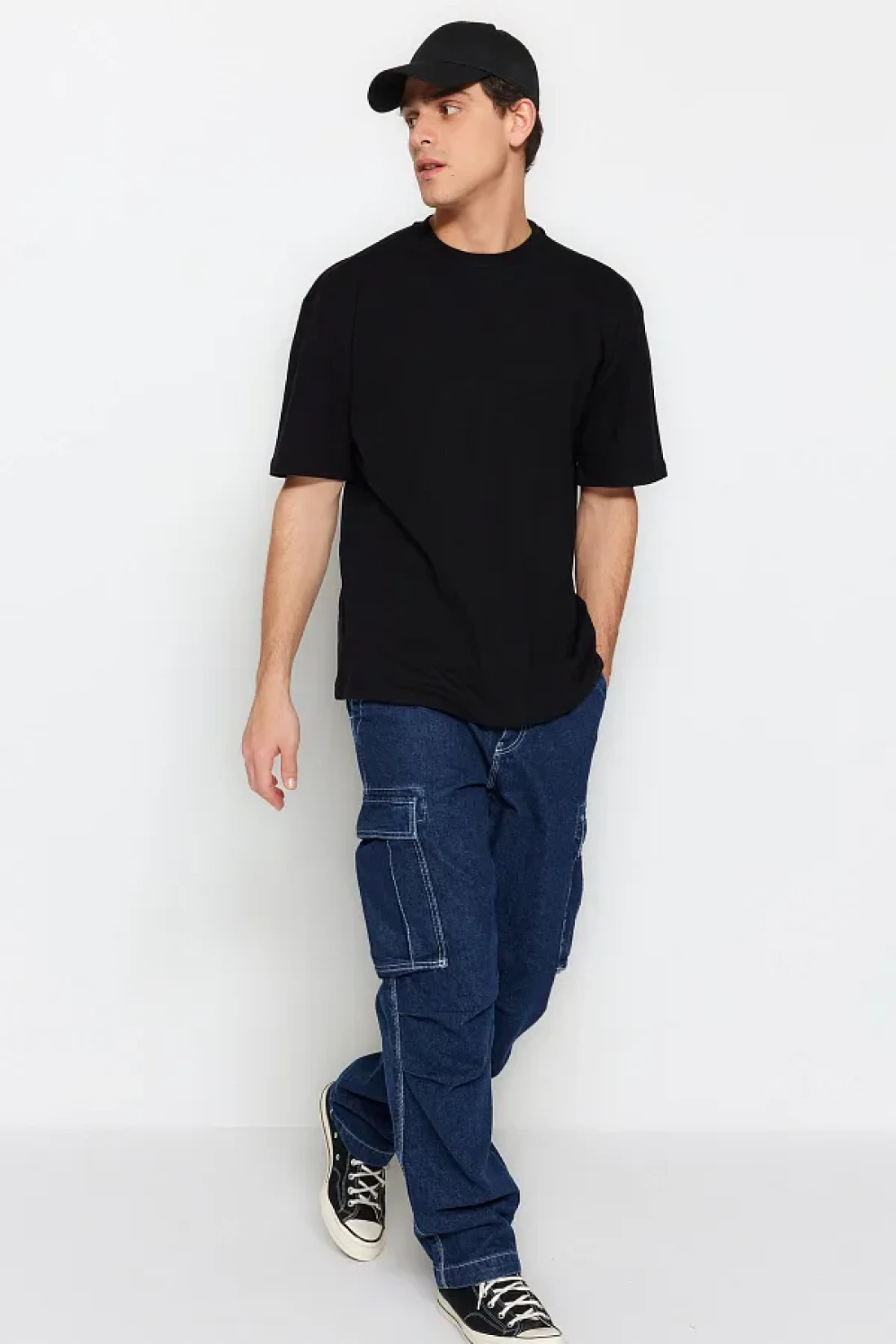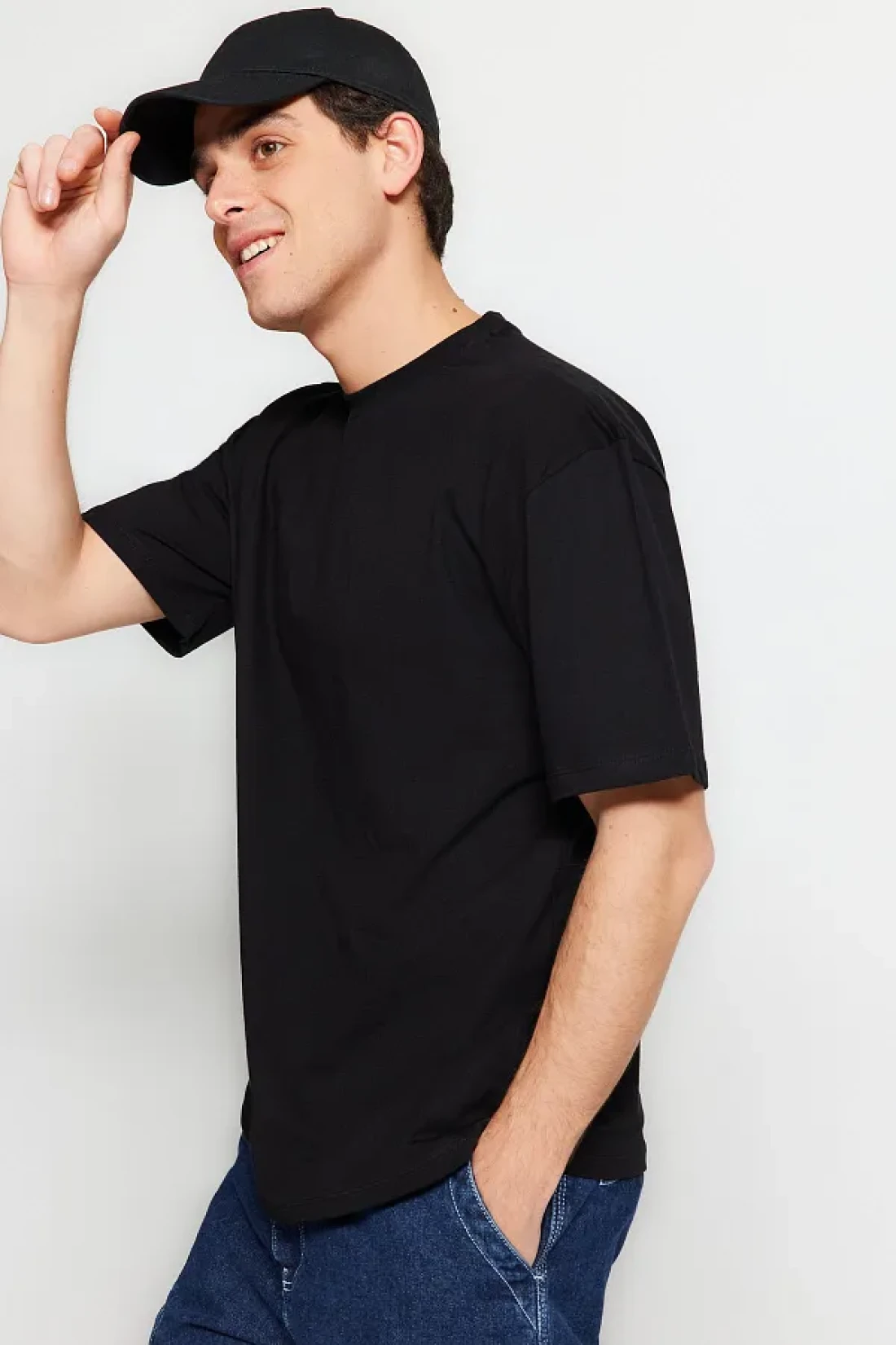 Collection تي شيرت أسود مريح 100% قطن - TMNSS22TS0274