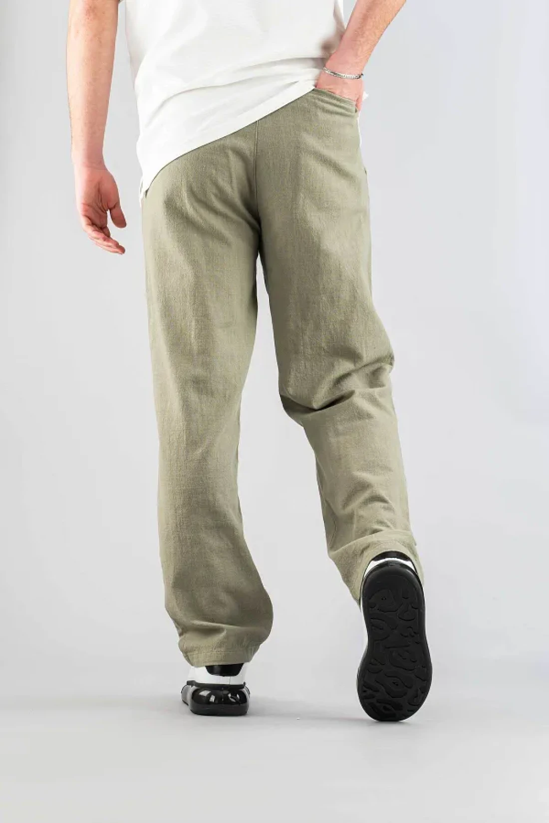 بنطال فضفاض مثالي للارتداء اليومي بفضل تصميمه المريح والساق الواسعة. يوفر المرونة والراحة بفضل نسيجه المختلط بنسبة 90% قطن و10% ليكرا. - بفضل نمطه البسيط وتصميمه البسيط، يسهل تنسيقه مع أي ملابس علوية. يوفر استخدامًا عمليًا بفضل هيكله المكون من 5 جيوب. - يمنحها نوع النسيج المخلوط من الكتان مظهرًا أنيقًا مع زيادة المتانة. - تفاصيل الحزام تبرز منطقة الخصر، مما يخلق صورة ظلية عصرية.