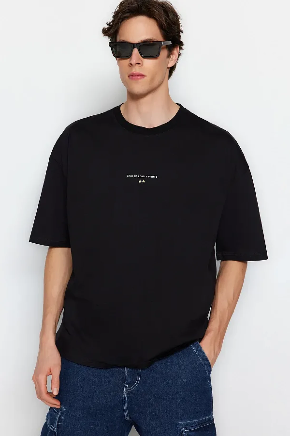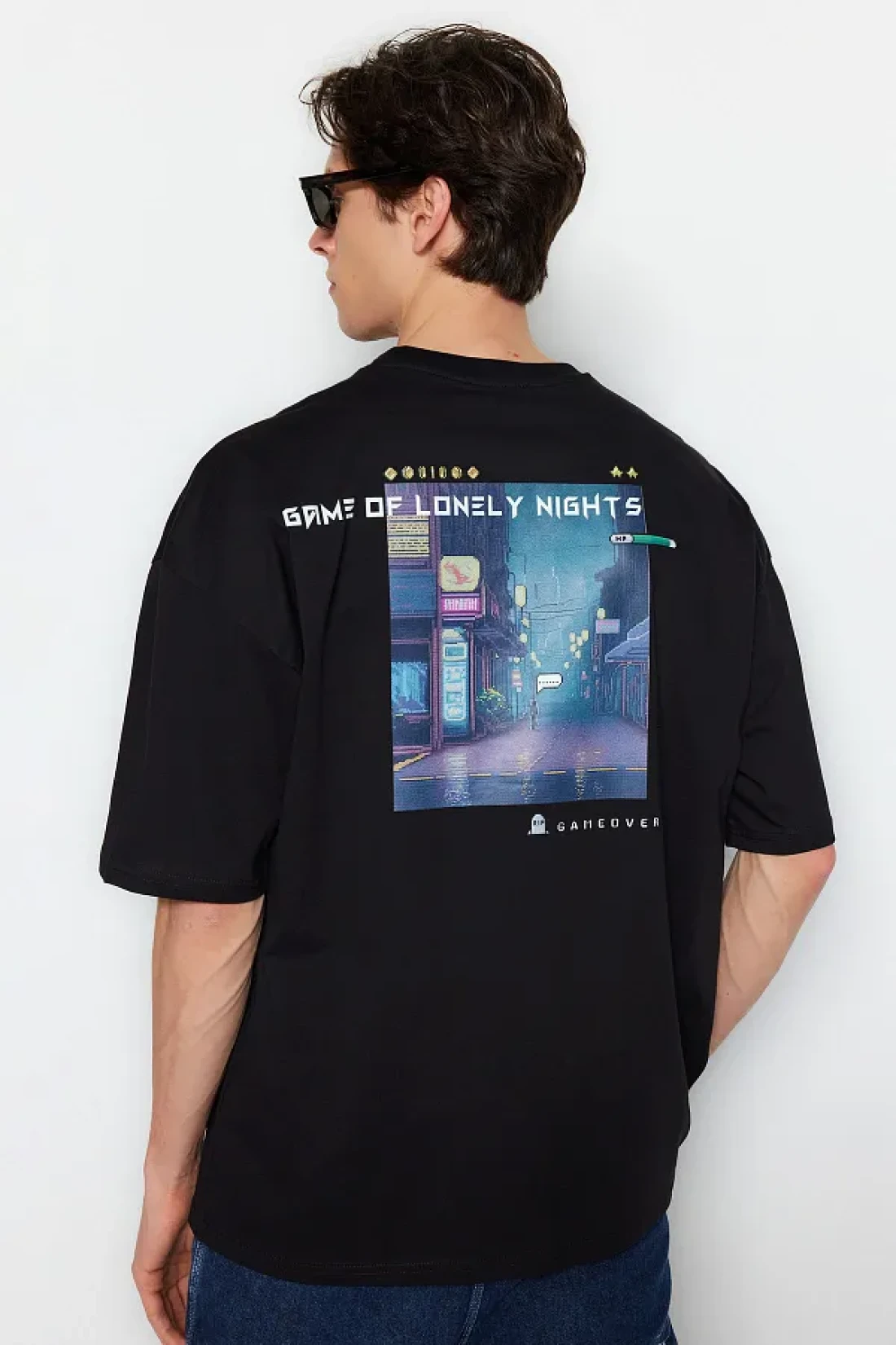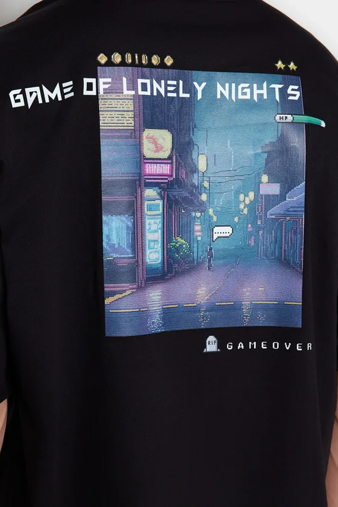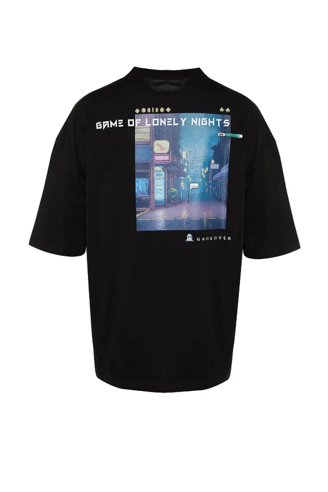Collection تي شيرت أسود كبير الحجم مصنوع من القطن بنسبة 100% مطبوع عليه لعبة Game Over Back