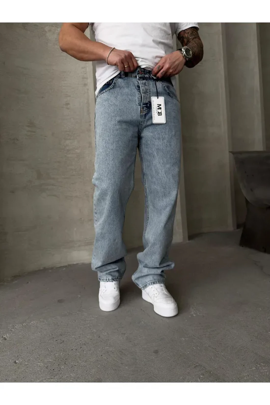 Mob بنطال جينز أزرق فضفاض للرجال مغسول بالثلج
