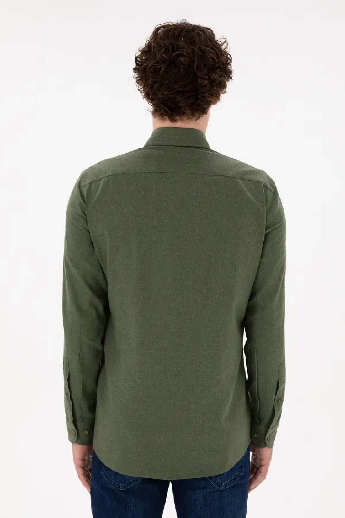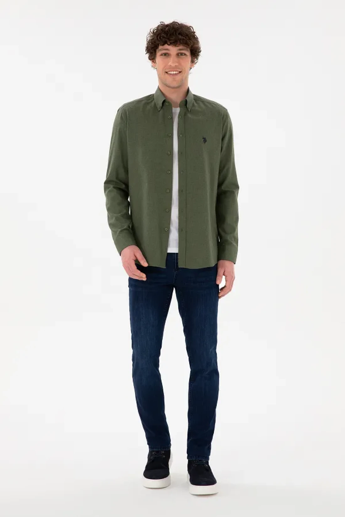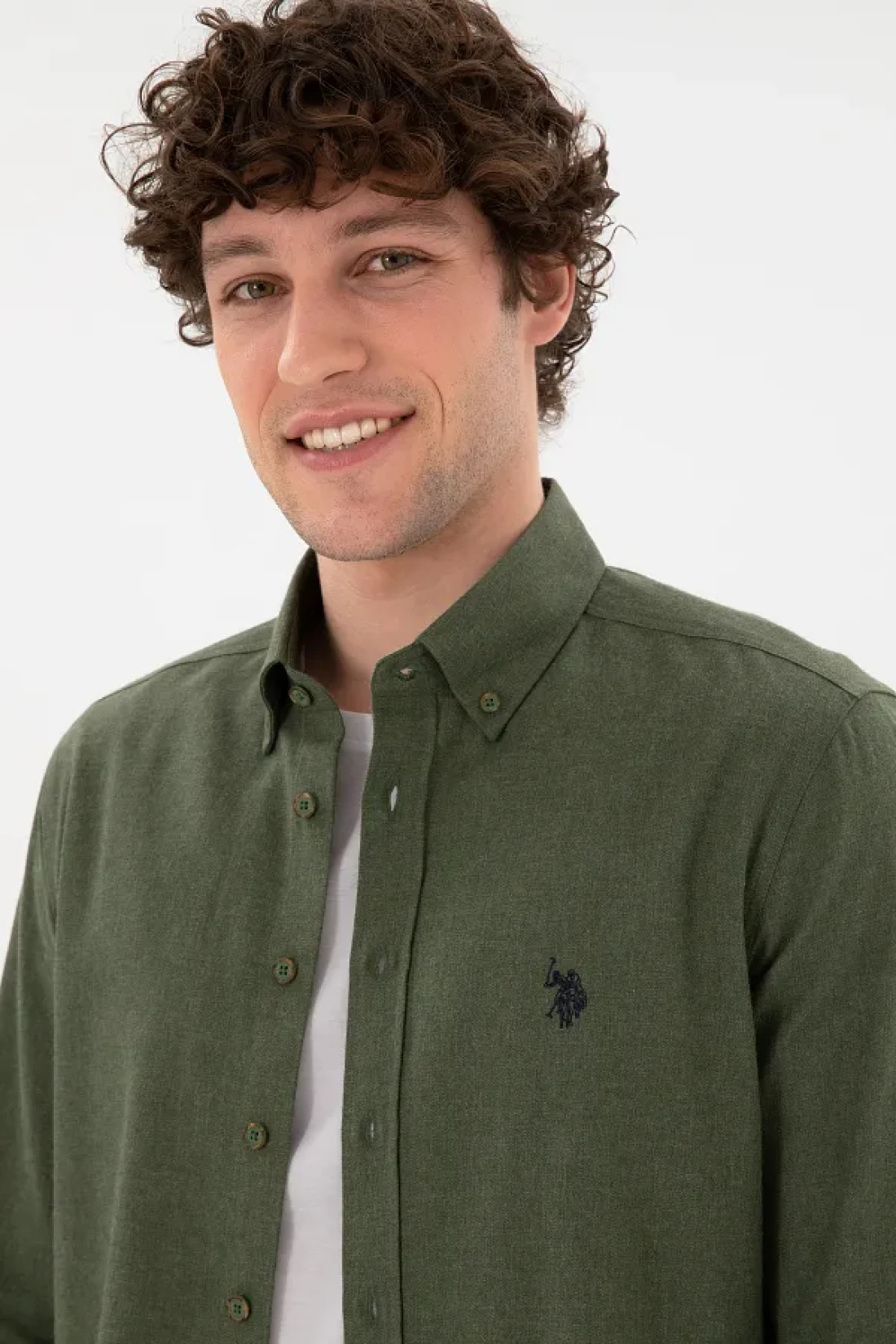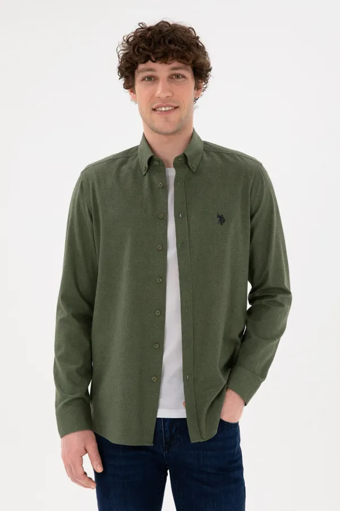 U.S. Polo Assn. قميص رجالي أساسي كاكي بأكمام طويلة 50296757 -VR027