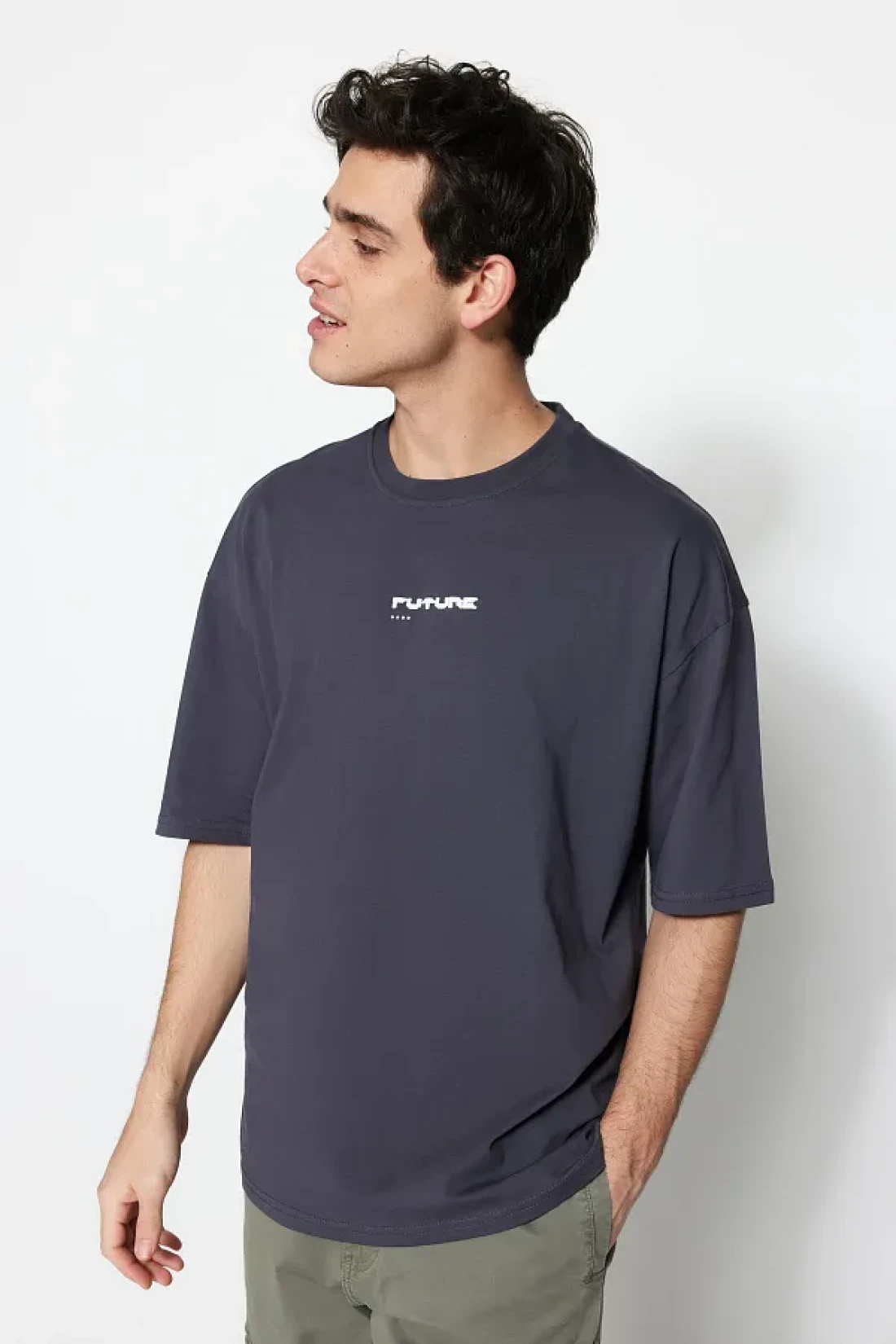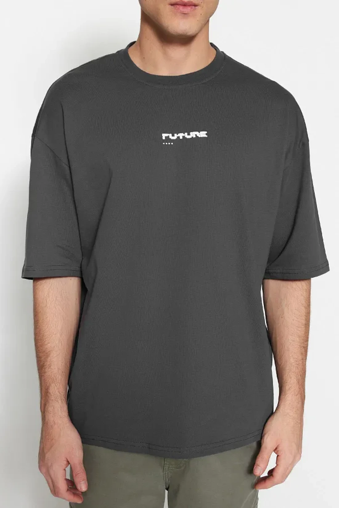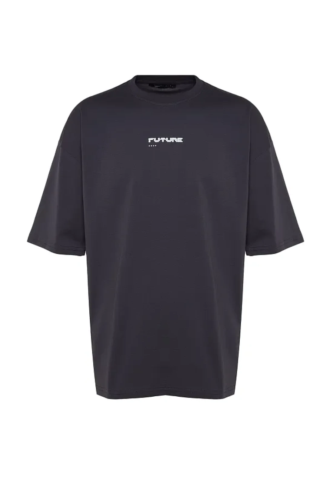 Collection تي شيرت أنثراسايت رقيق مطبوع كبير الحجم - 100% Tinne TMNSS23TS00171