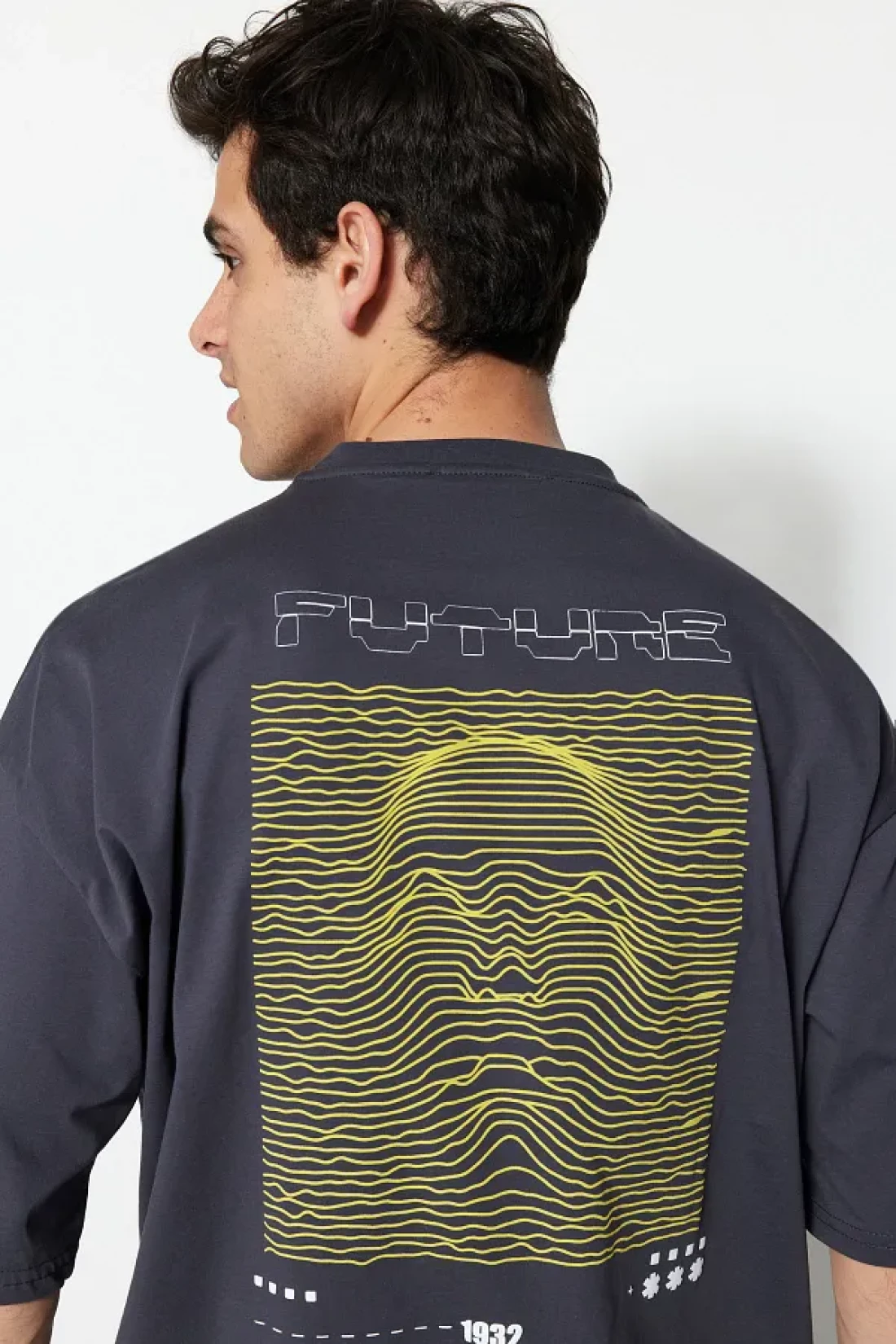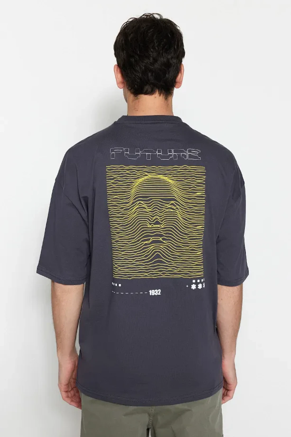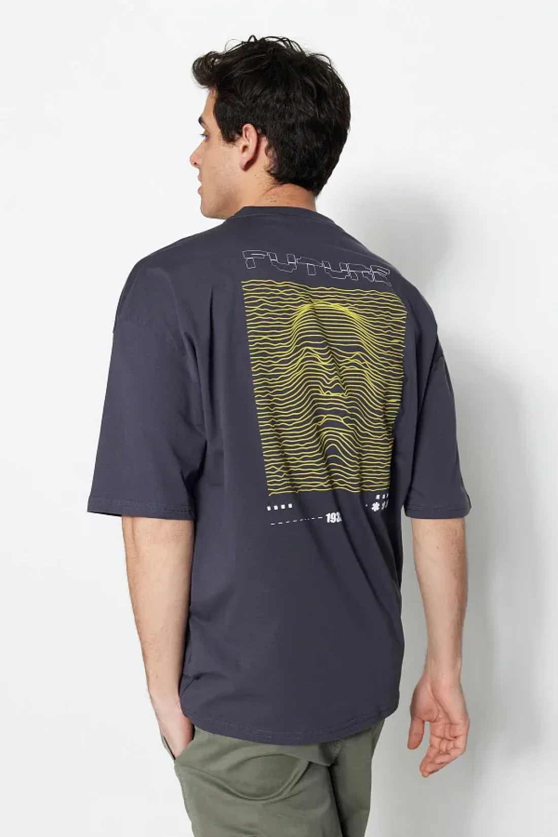 Collection تي شيرت أنثراسايت رقيق مطبوع كبير الحجم - 100% Tinne TMNSS23TS00171