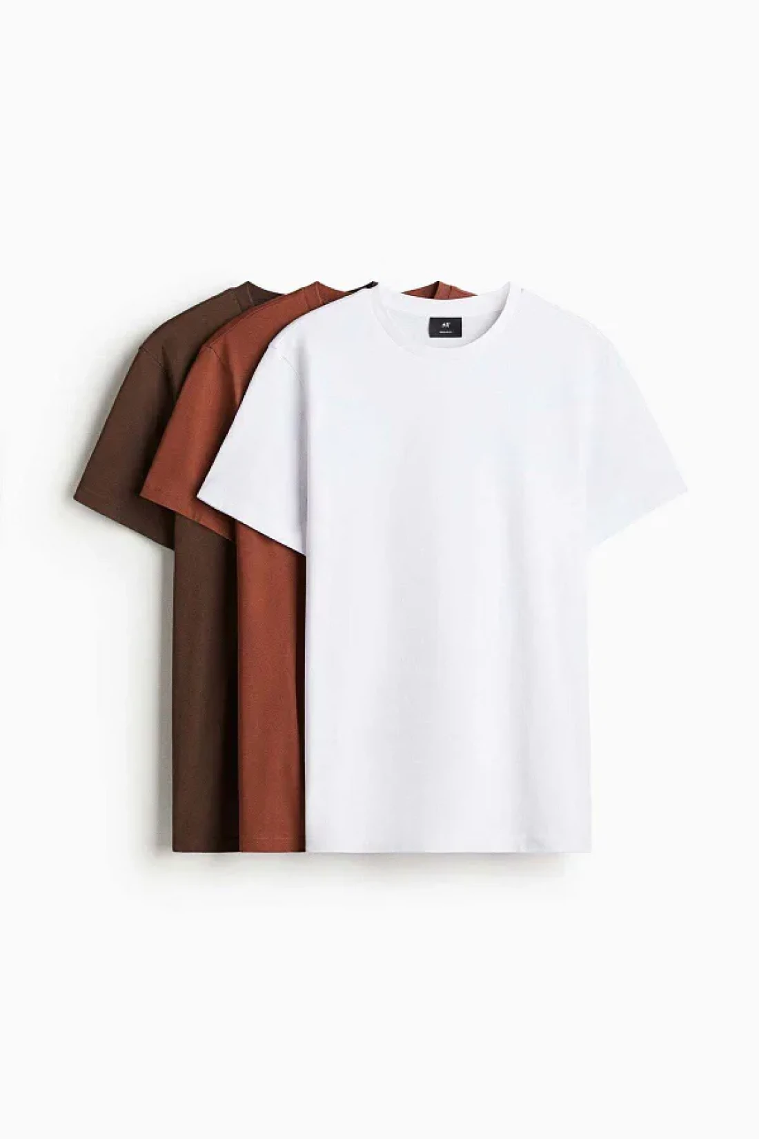 H&M مجموعة من 3 قمصان بمقاس عادي